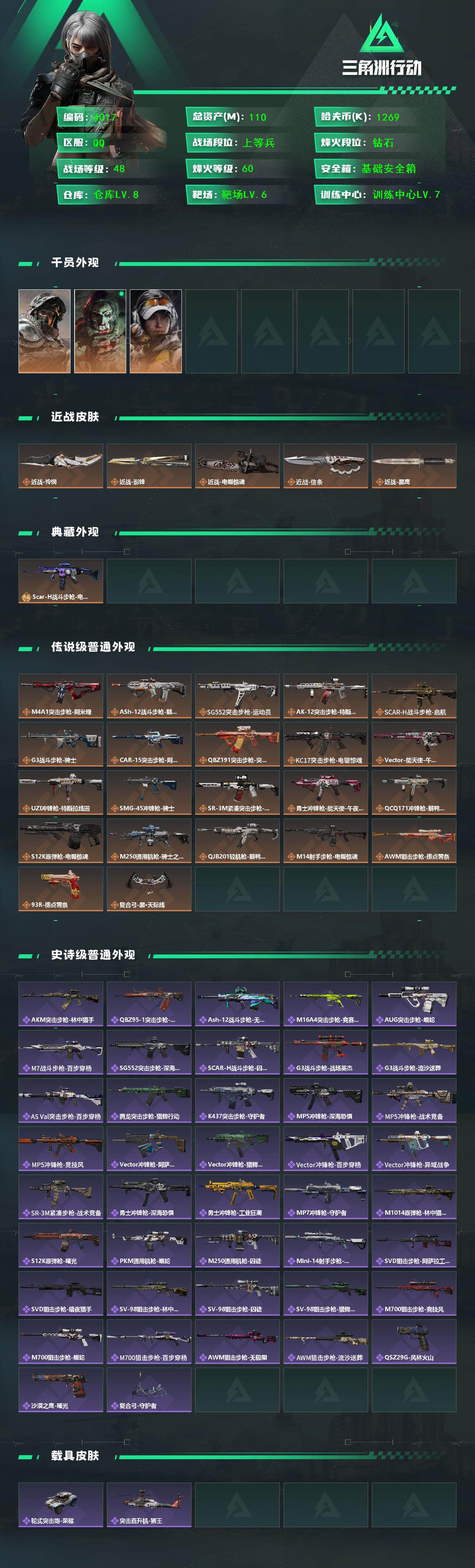 110m总资产-1269k哈伏币-60烽火等级-钻石-48战场等级-上等兵【