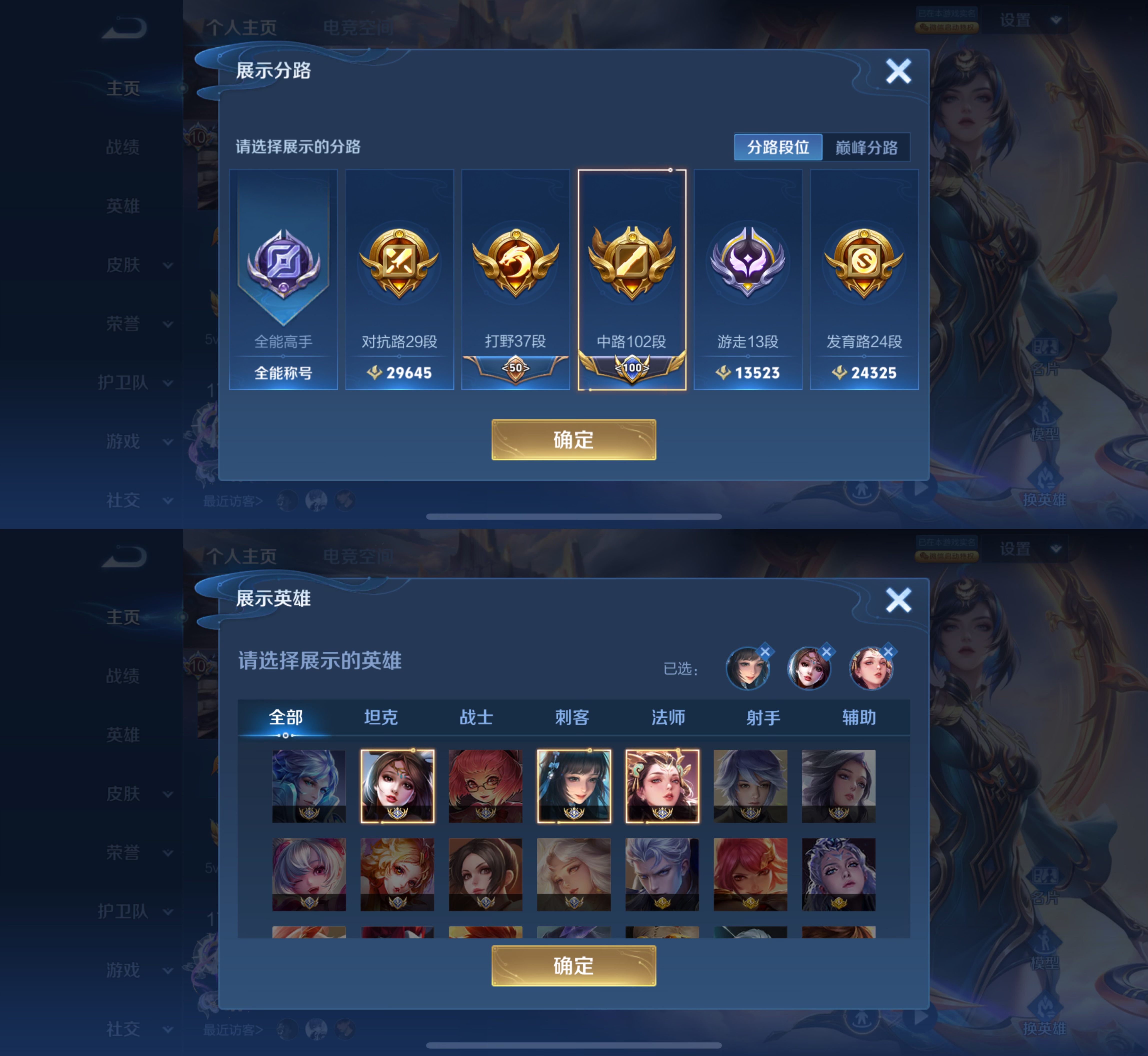 满皮102段国服中路女号,12个国服,漂亮女标多,星传说差1个伽罗的别的都有,5款小兵,其余看图