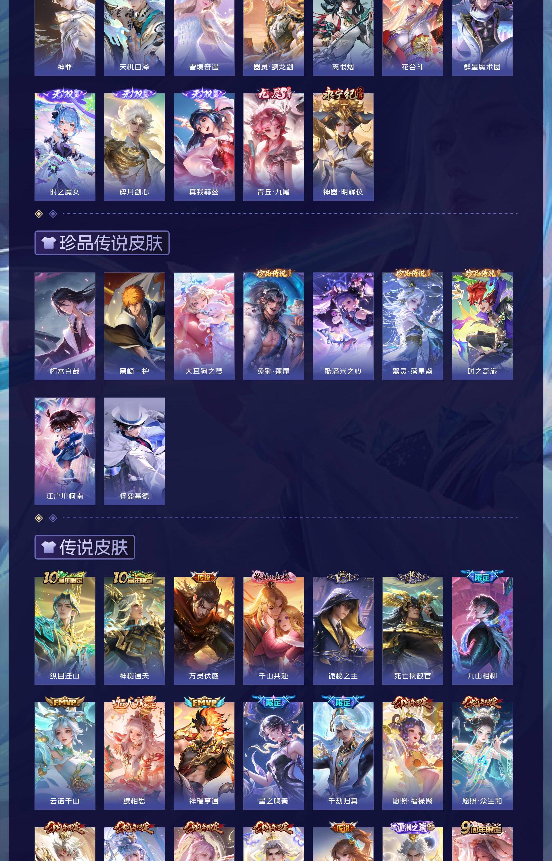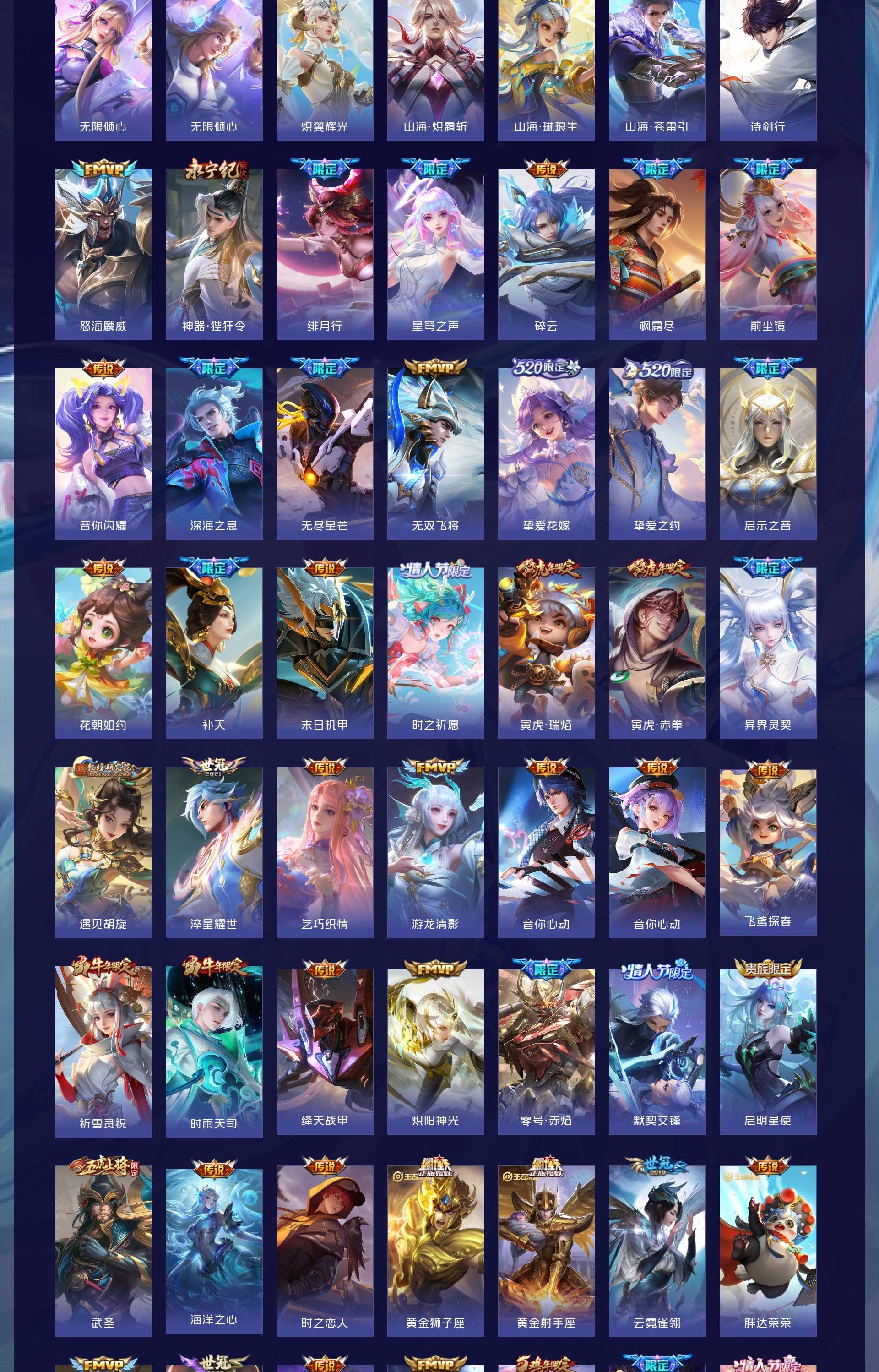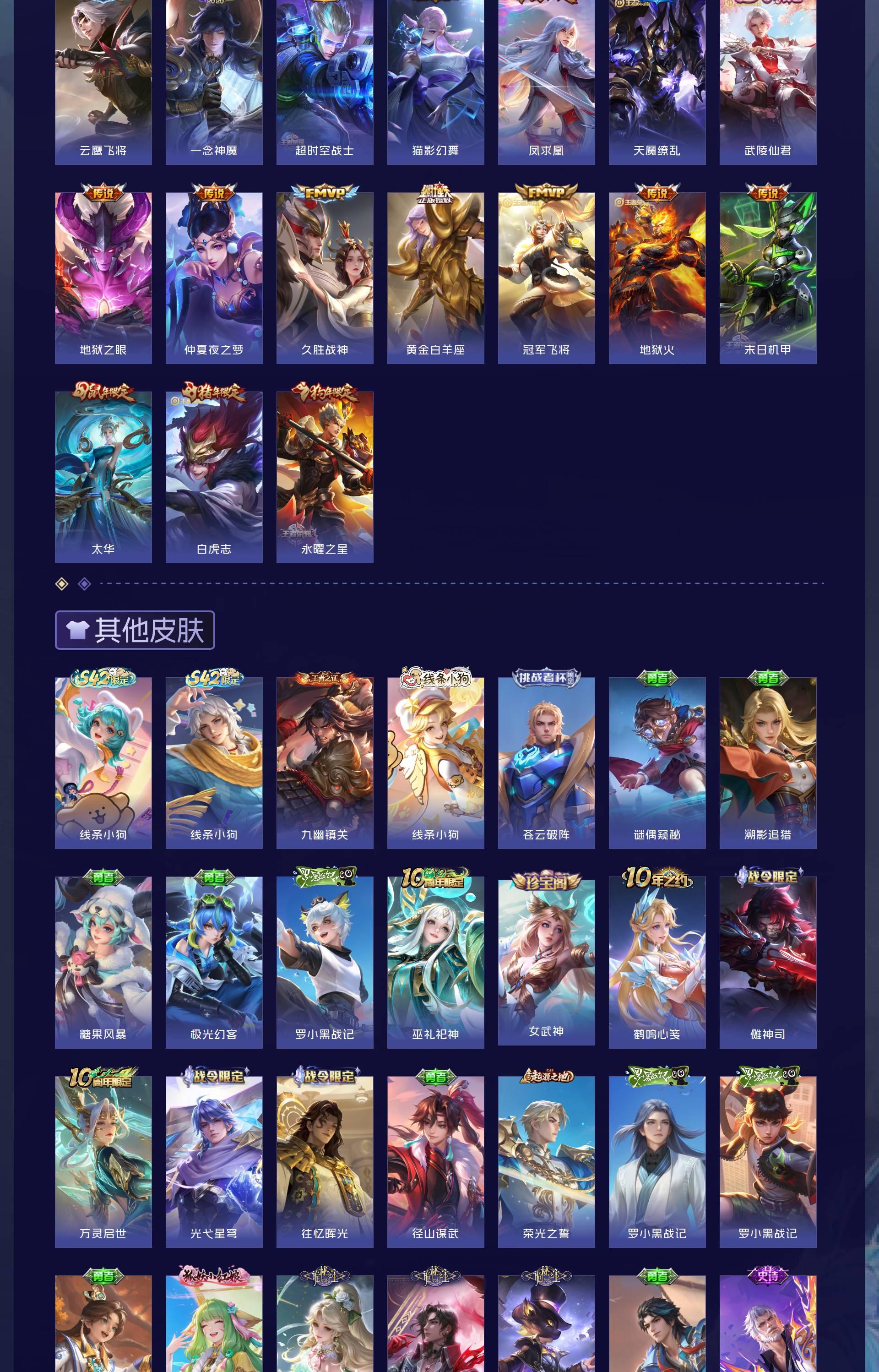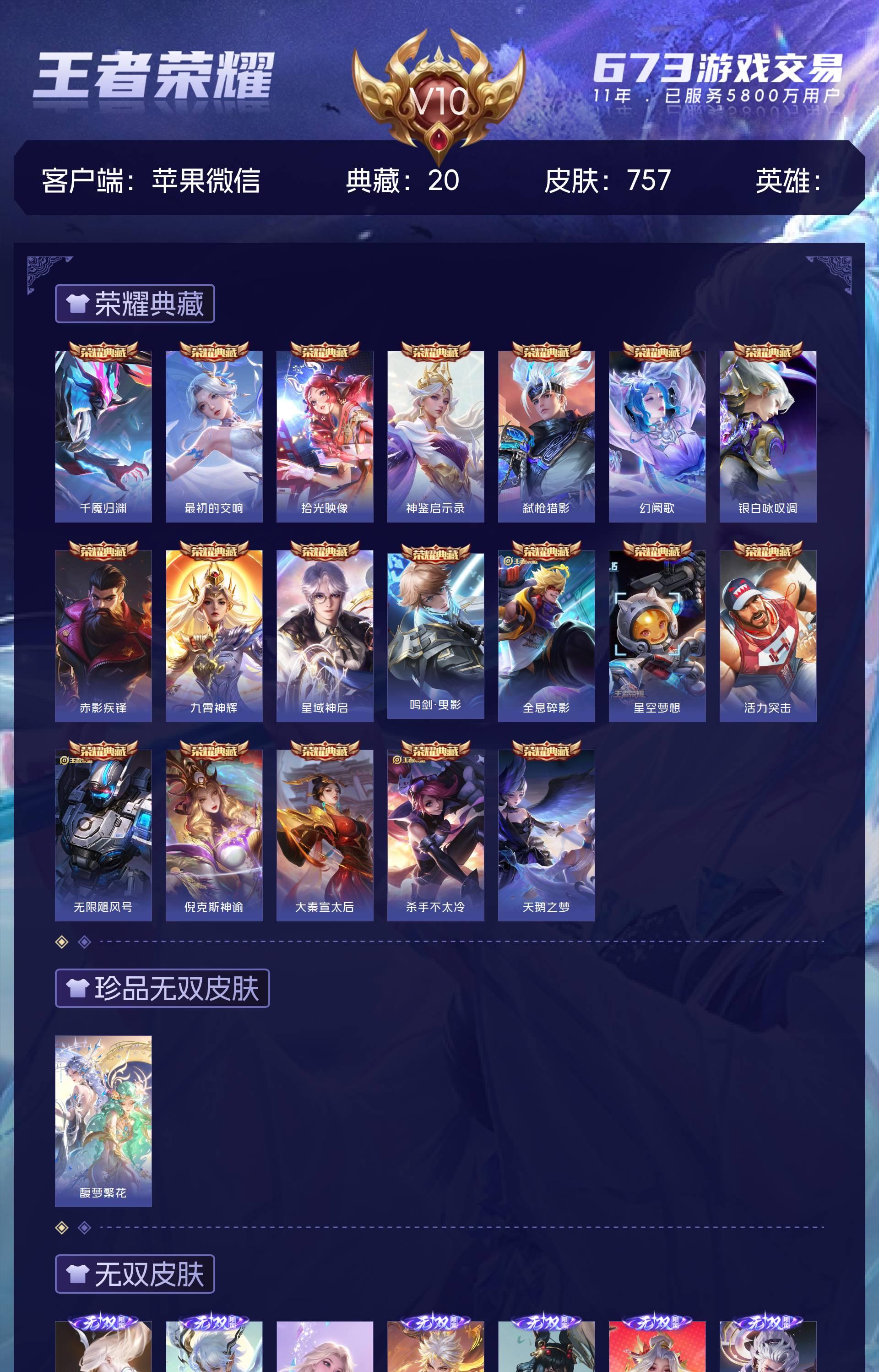 V10 皮肤757 至尊星耀 荣耀典藏20 珍品无双1 无双皮肤12 珍品传说9 星传说21 传说130 其他皮肤590