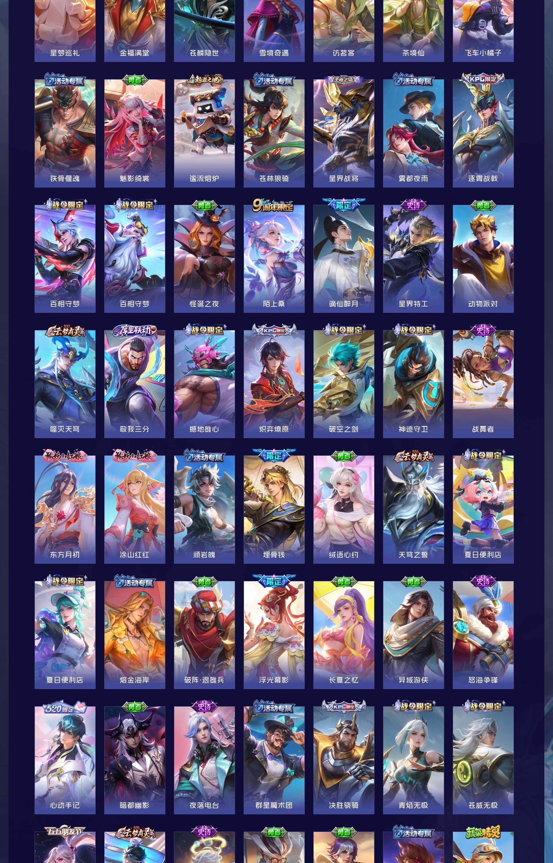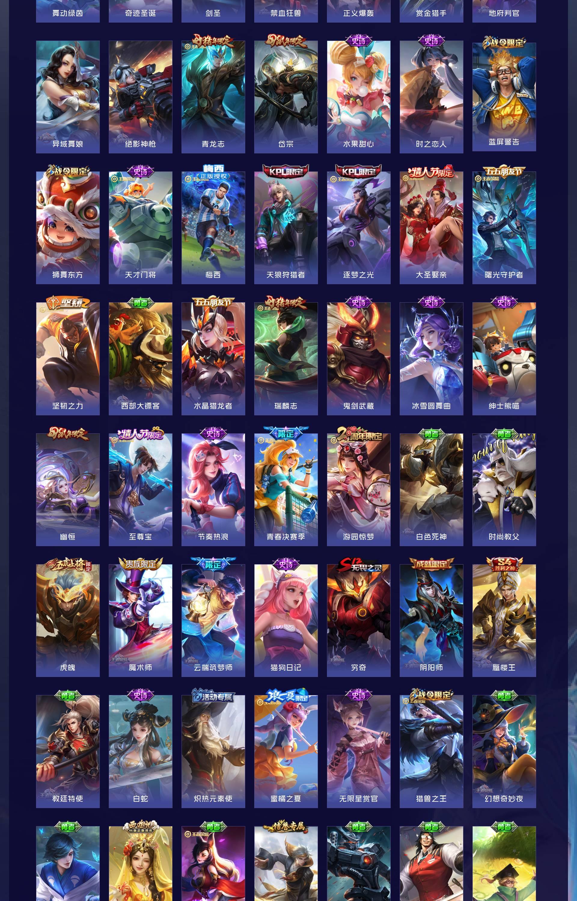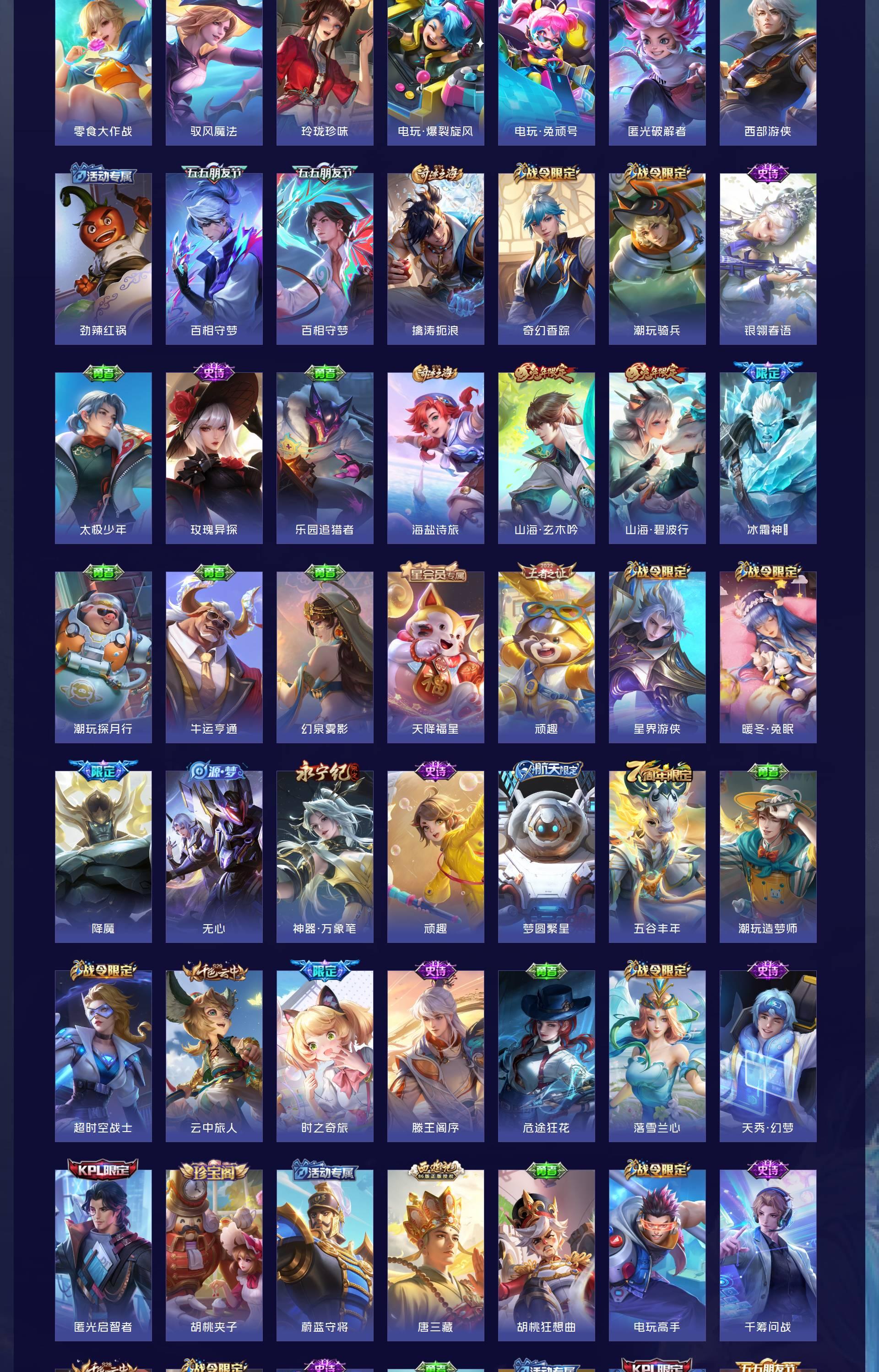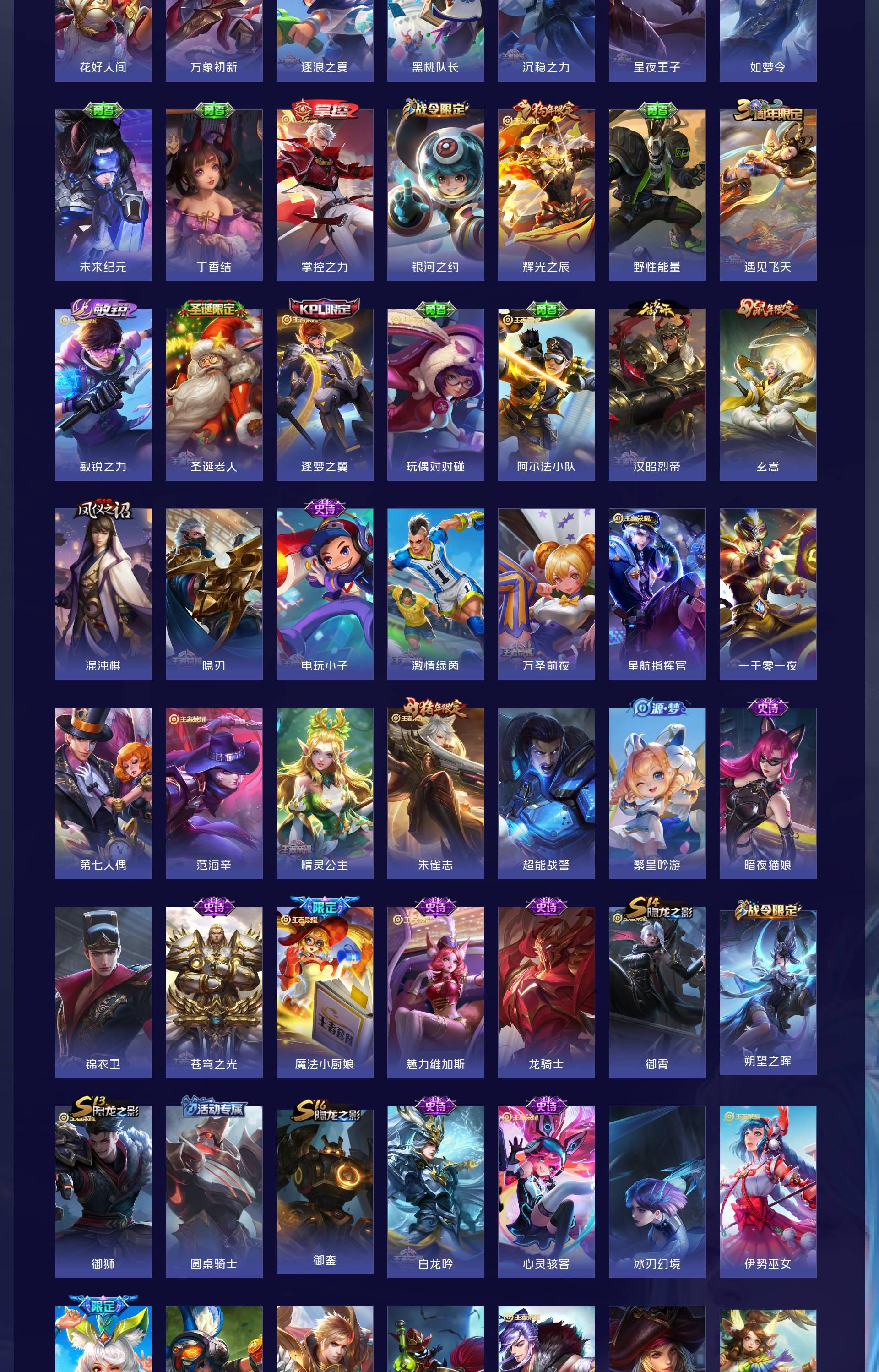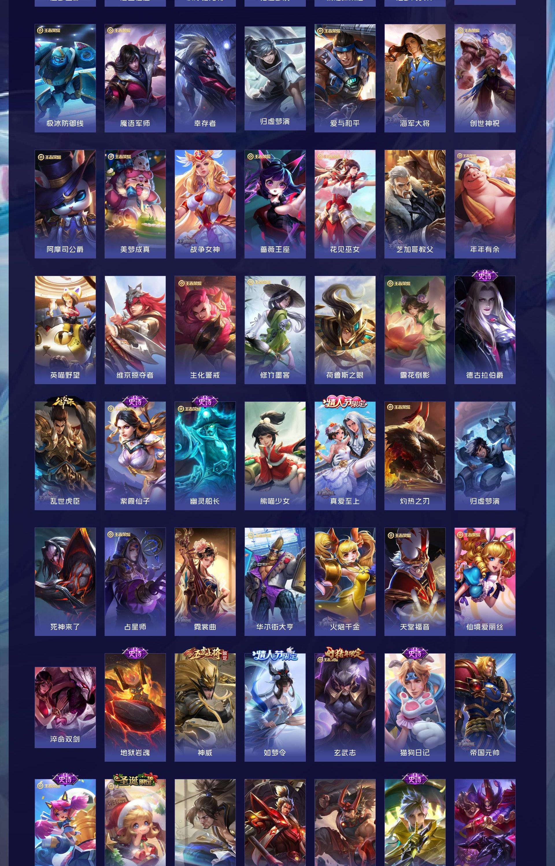 V10 皮肤757 至尊星耀 荣耀典藏20 珍品无双1 无双皮肤12 珍品传说9 星传说21 传说130 其他皮肤590