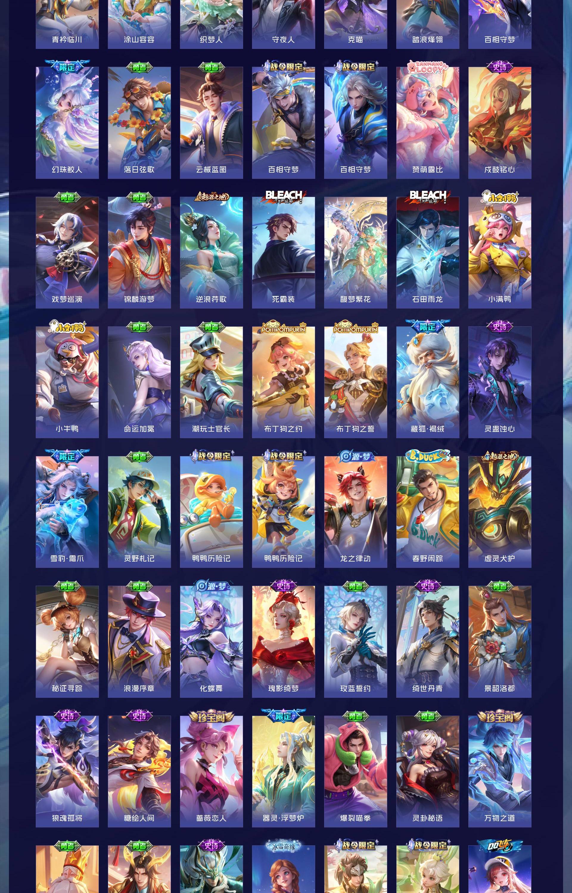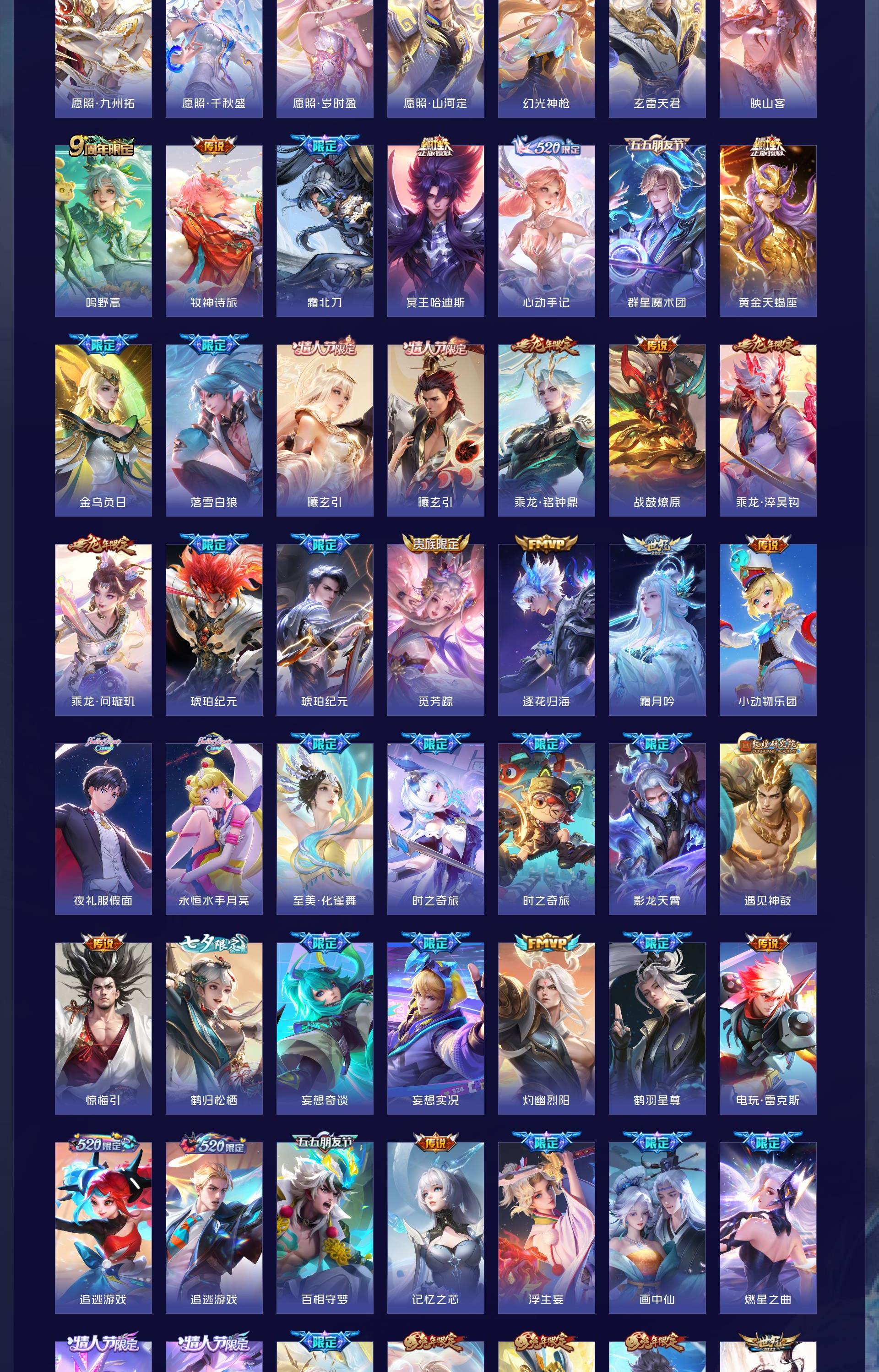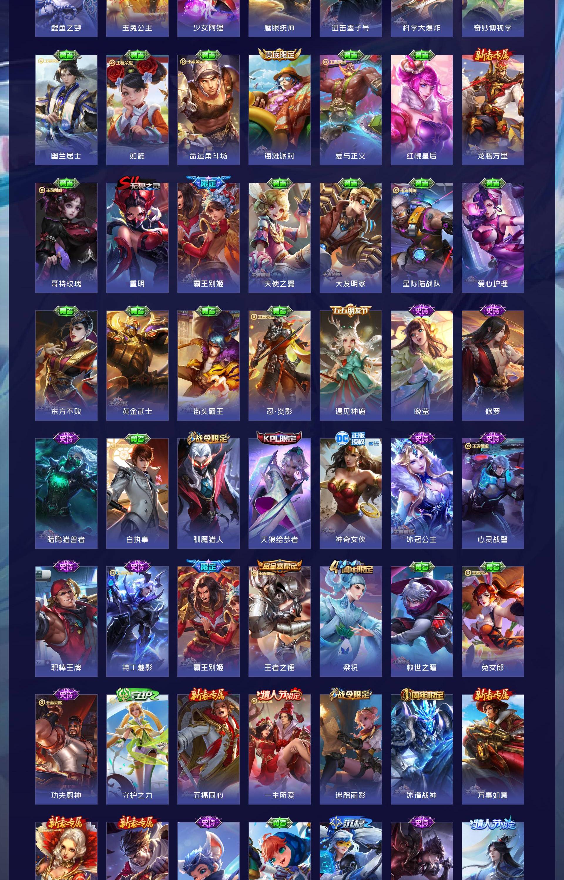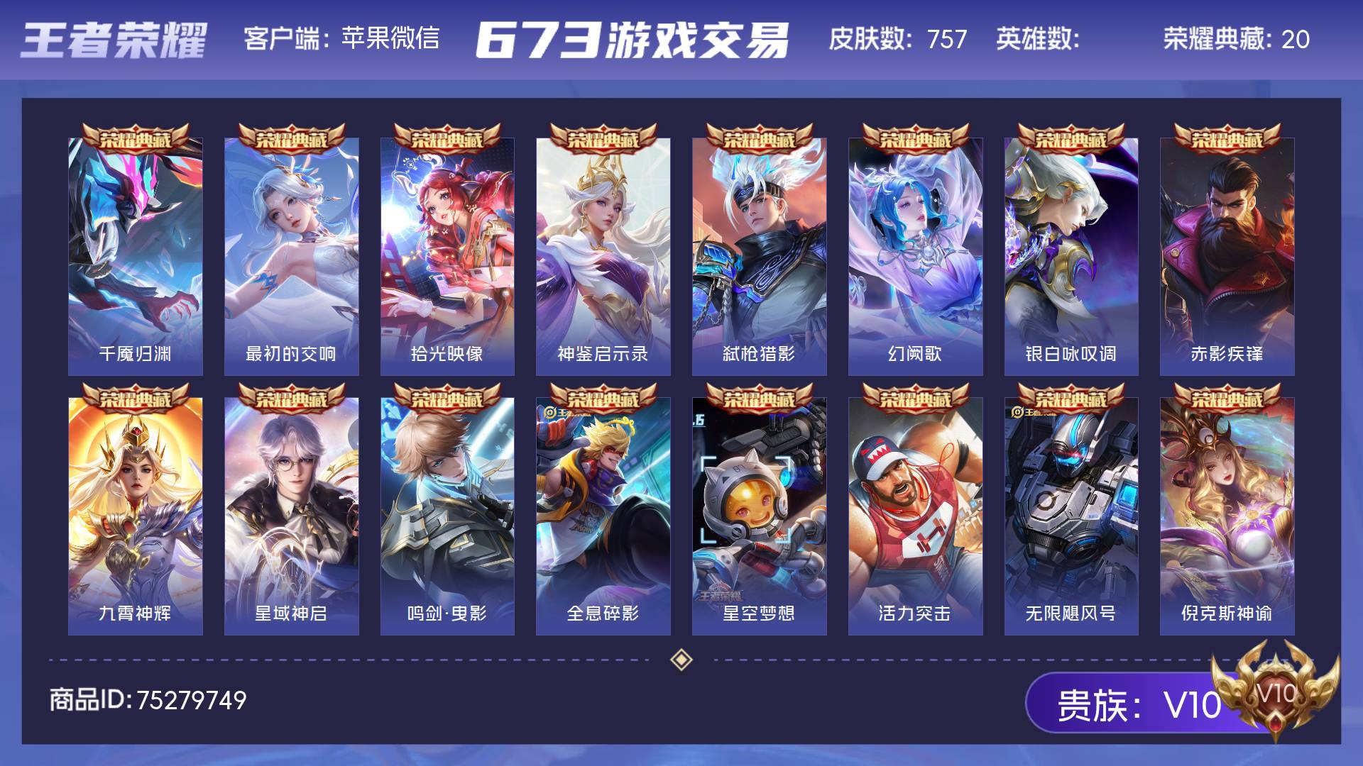 V10 皮肤757 至尊星耀 荣耀典藏20 珍品无双1 无双皮肤12 珍品传说9 星传说21 传说130 其他皮肤590
