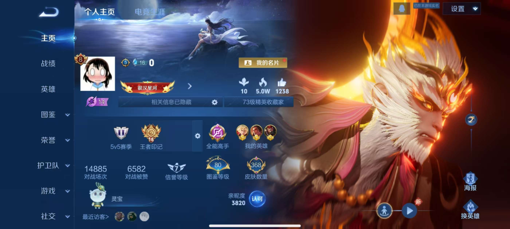 安卓QQ/永恒钻石/368皮肤/127英雄/1典藏/0珍品无双/1无双/0珍品传说/19传说/99史诗/8稀有英雄