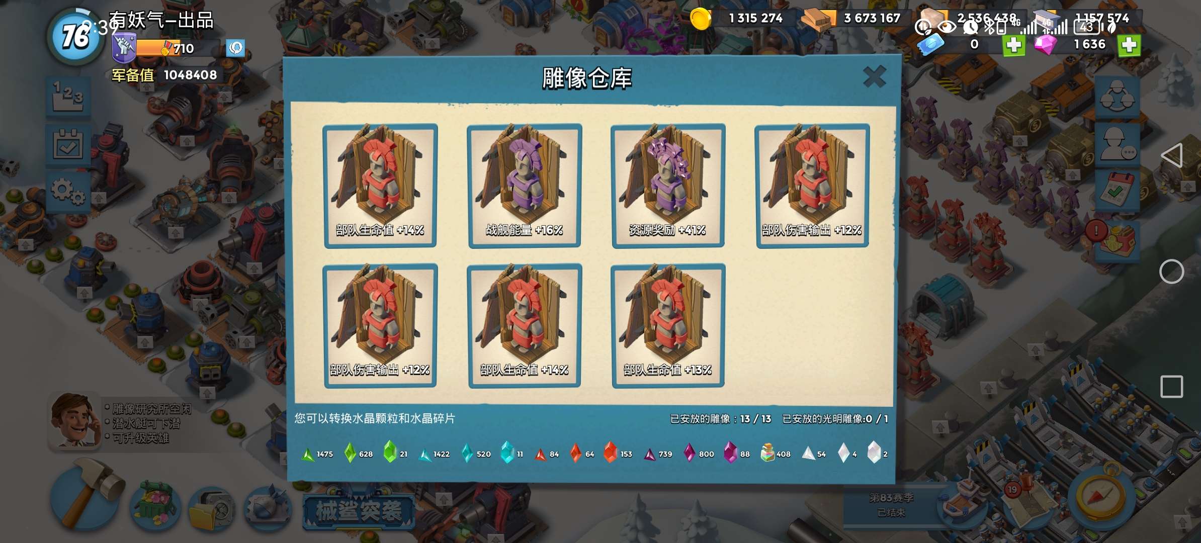 76级,31攻,40能,33血,40奖励,其余满。
