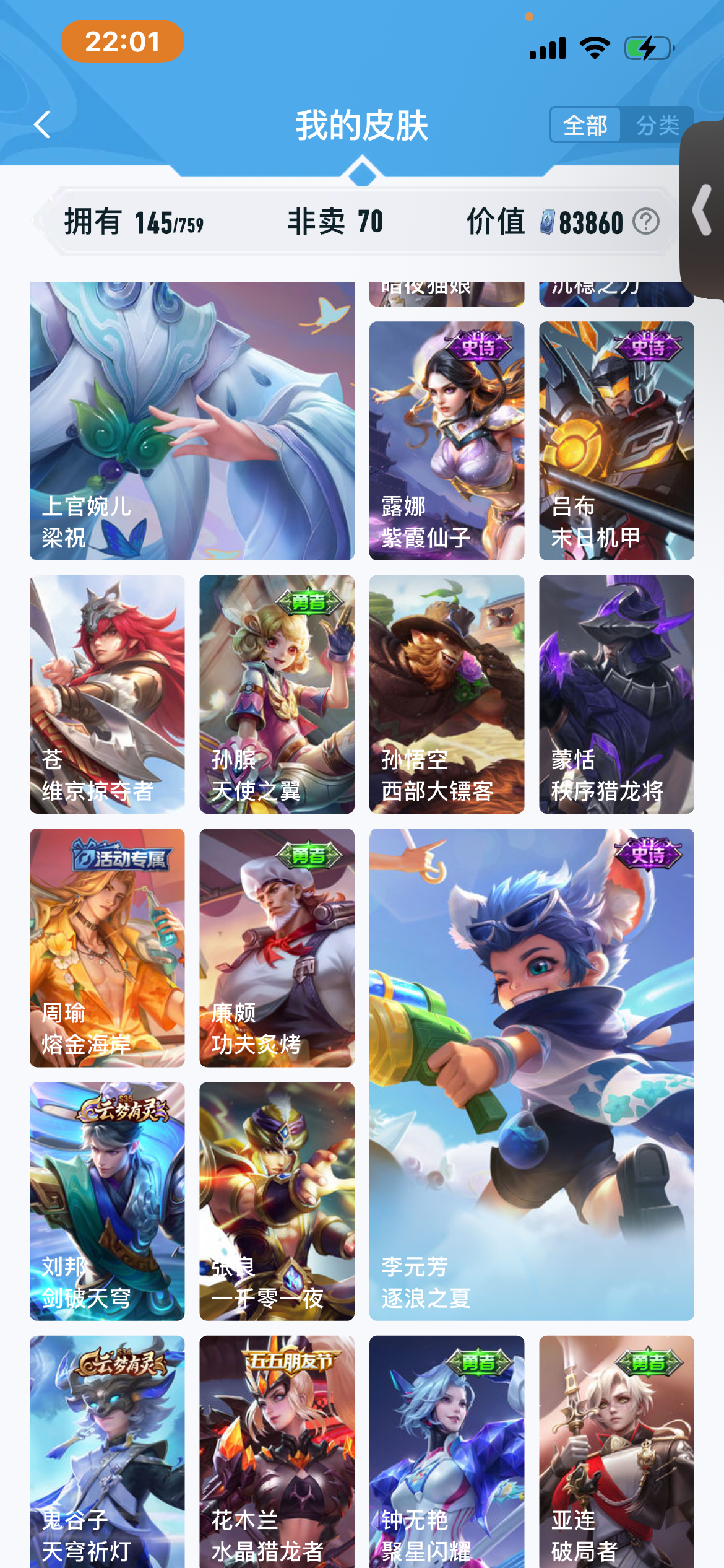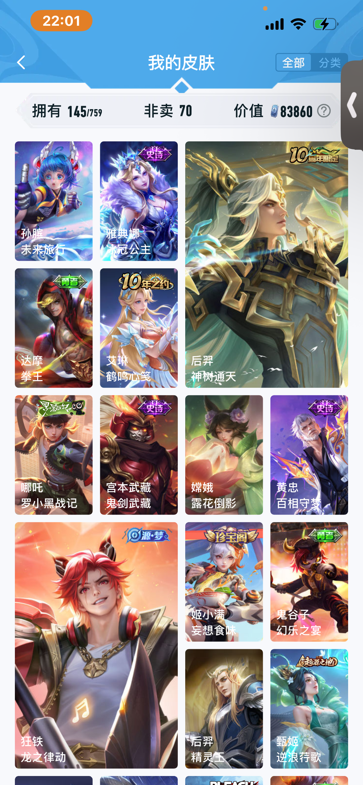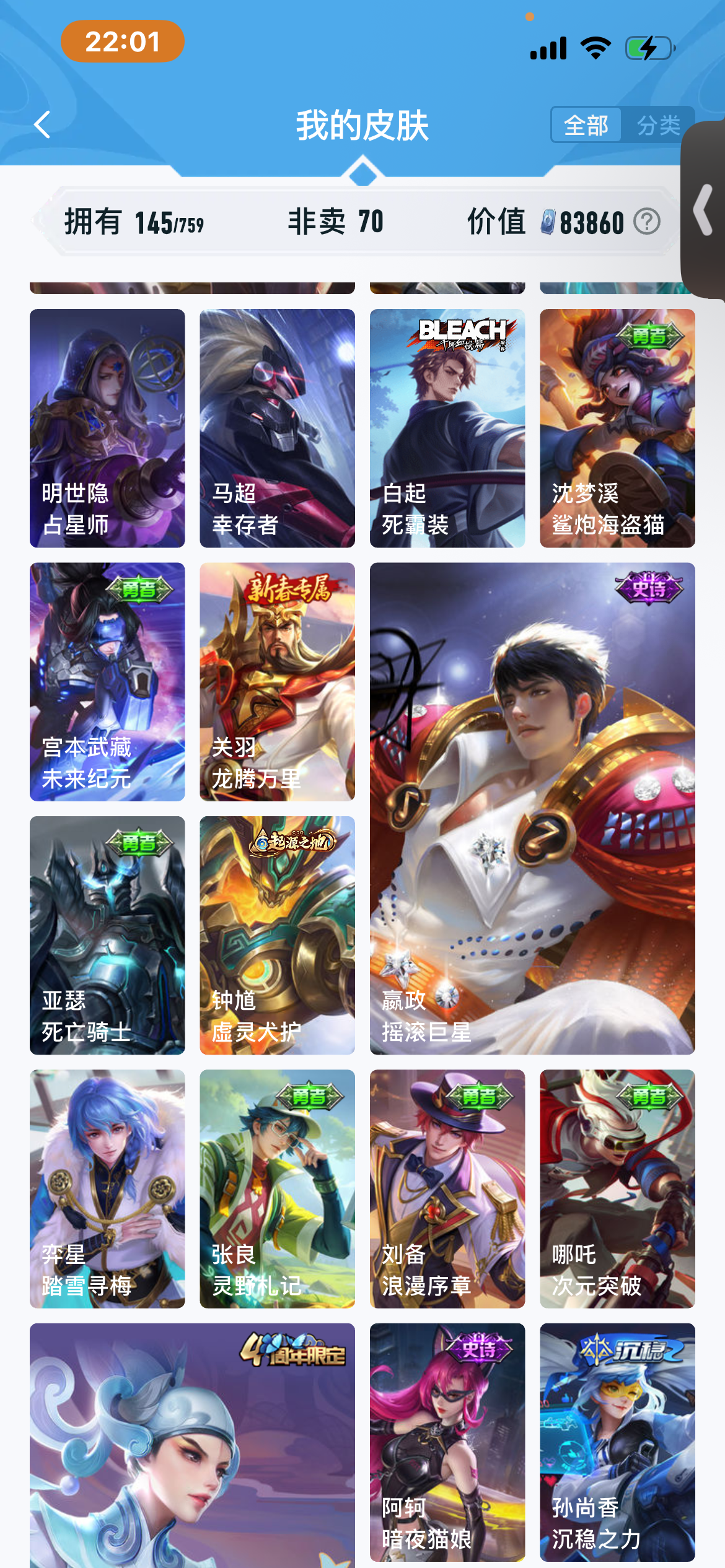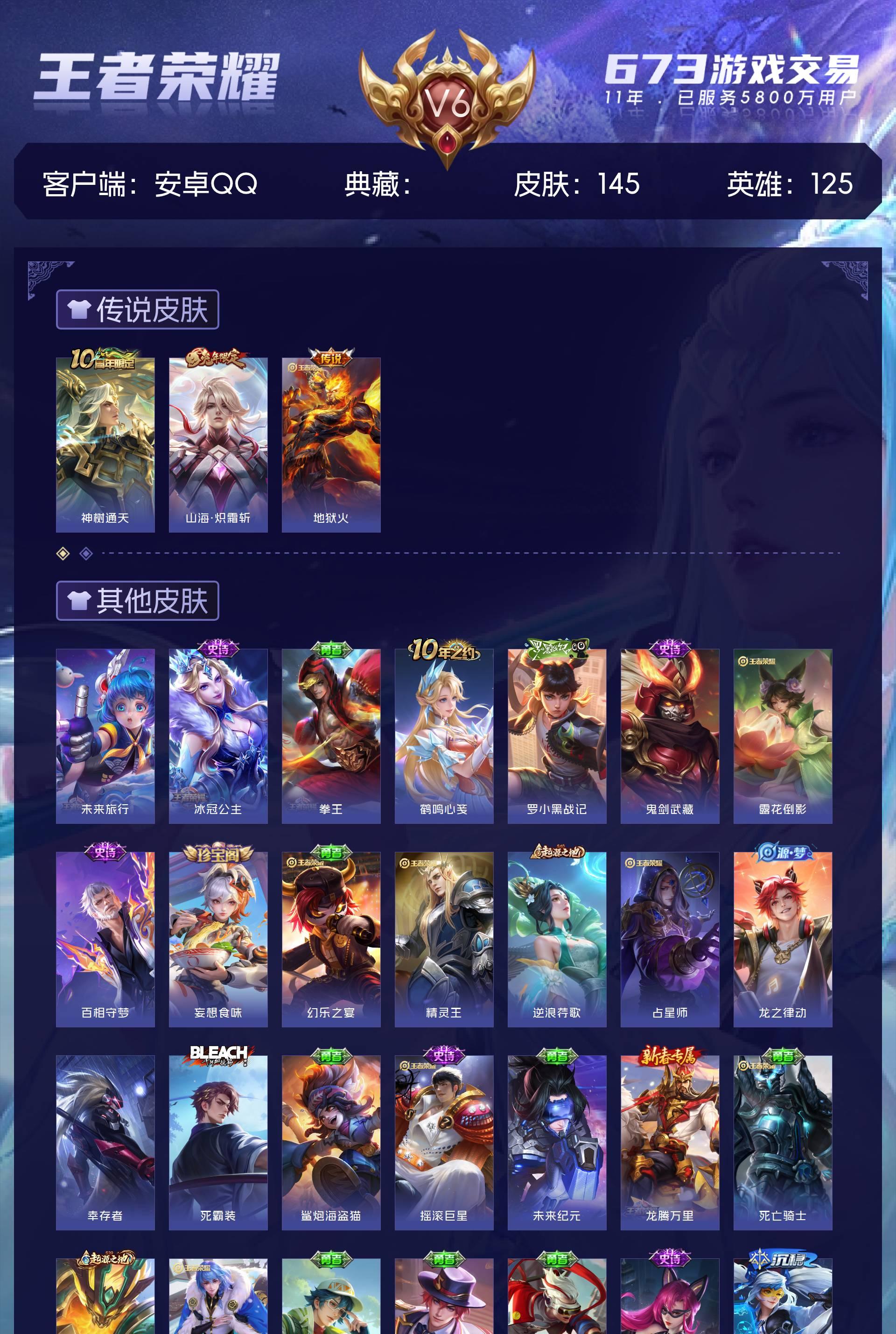 V6 皮肤145 英雄125 永恒钻石 星传说1 传说3 其他皮肤148