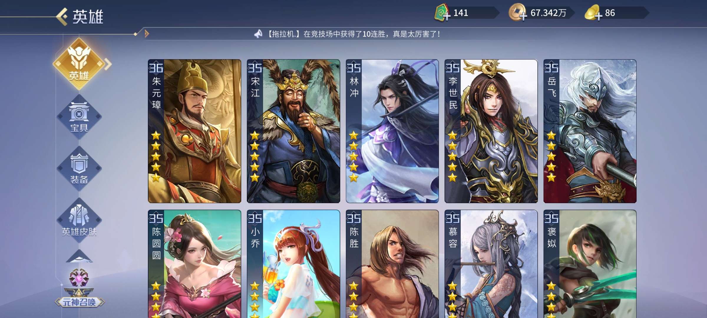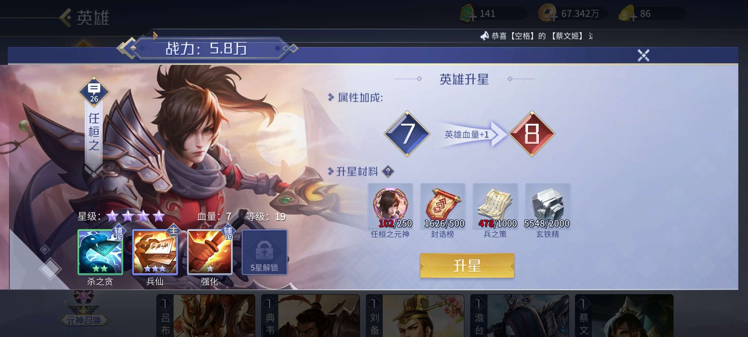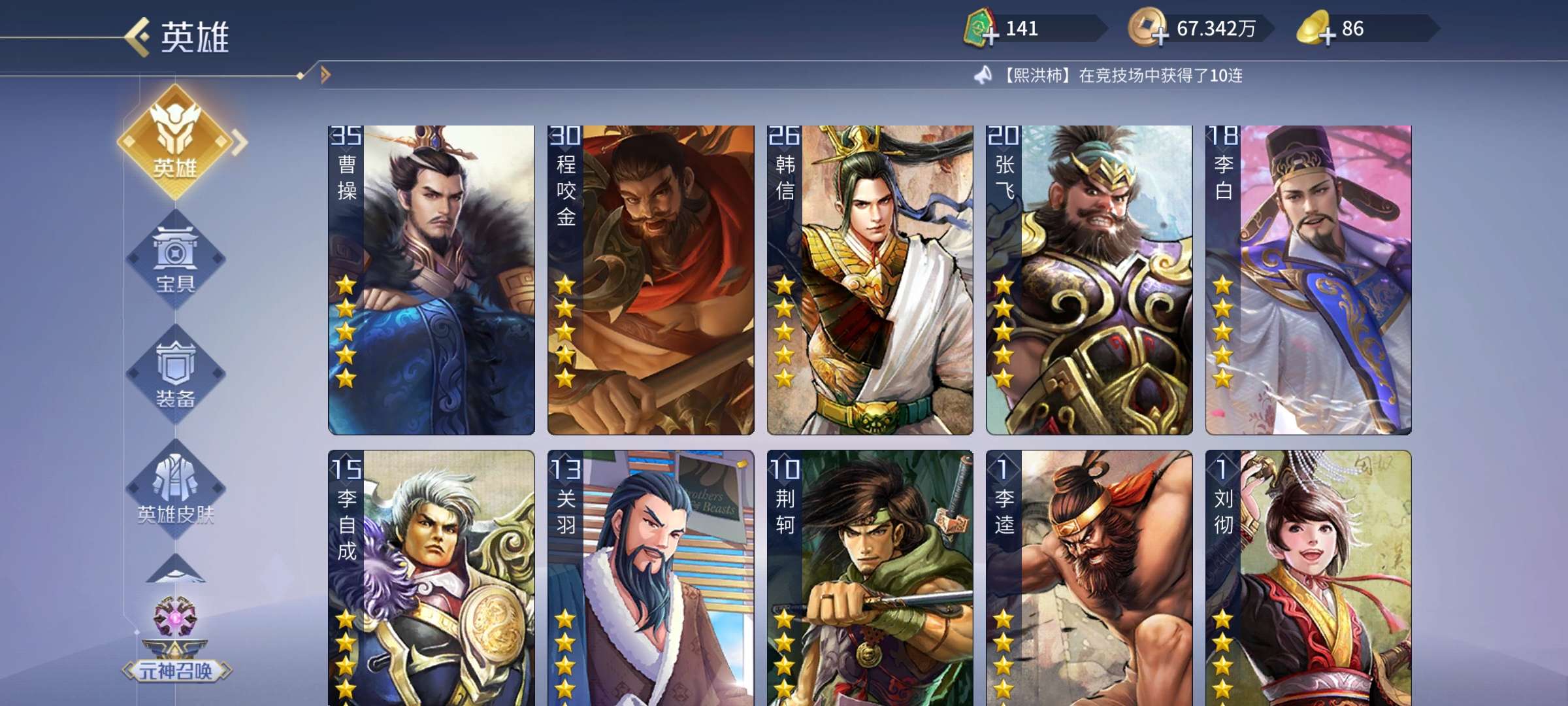 五星武将数量: