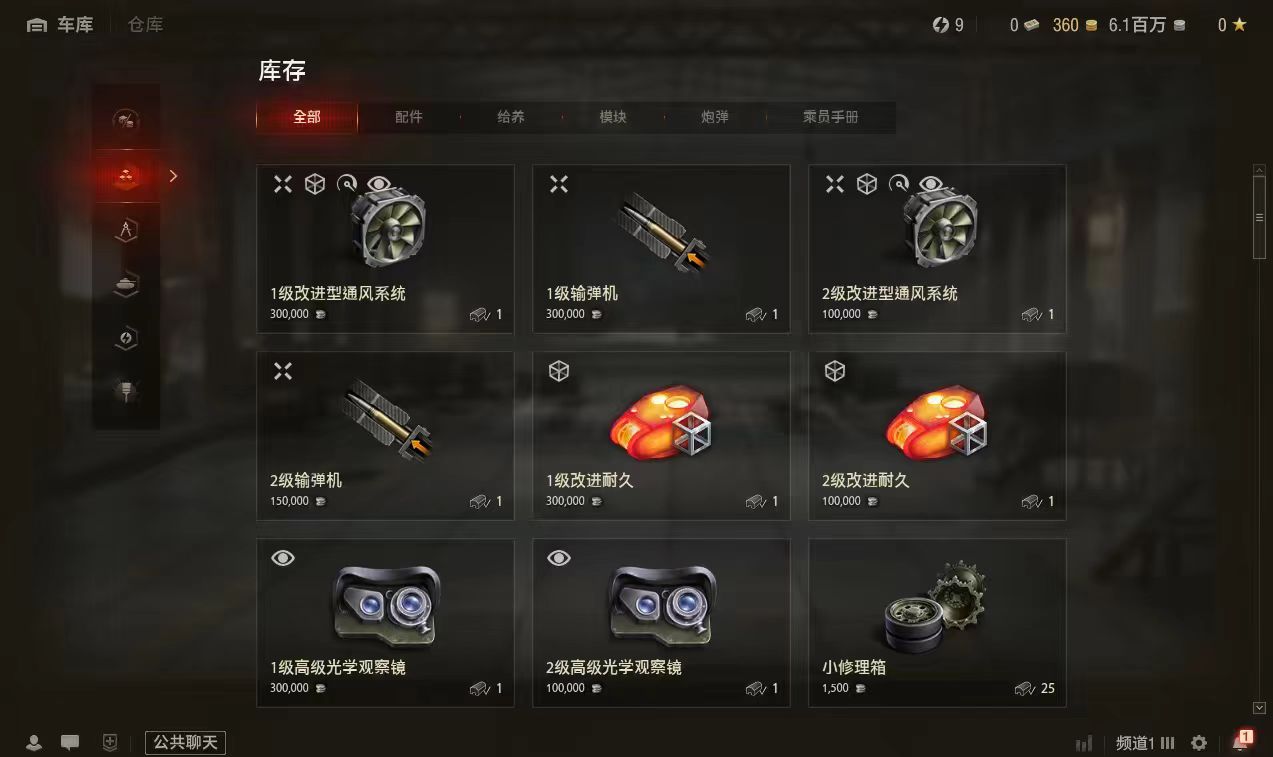 3辆10级银币车:爆裂者、鼠式、试验型重战车6-9级银币车:12辆 银币600万