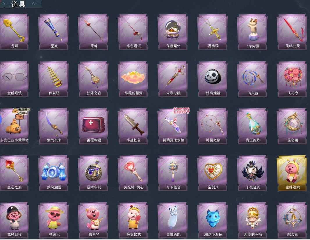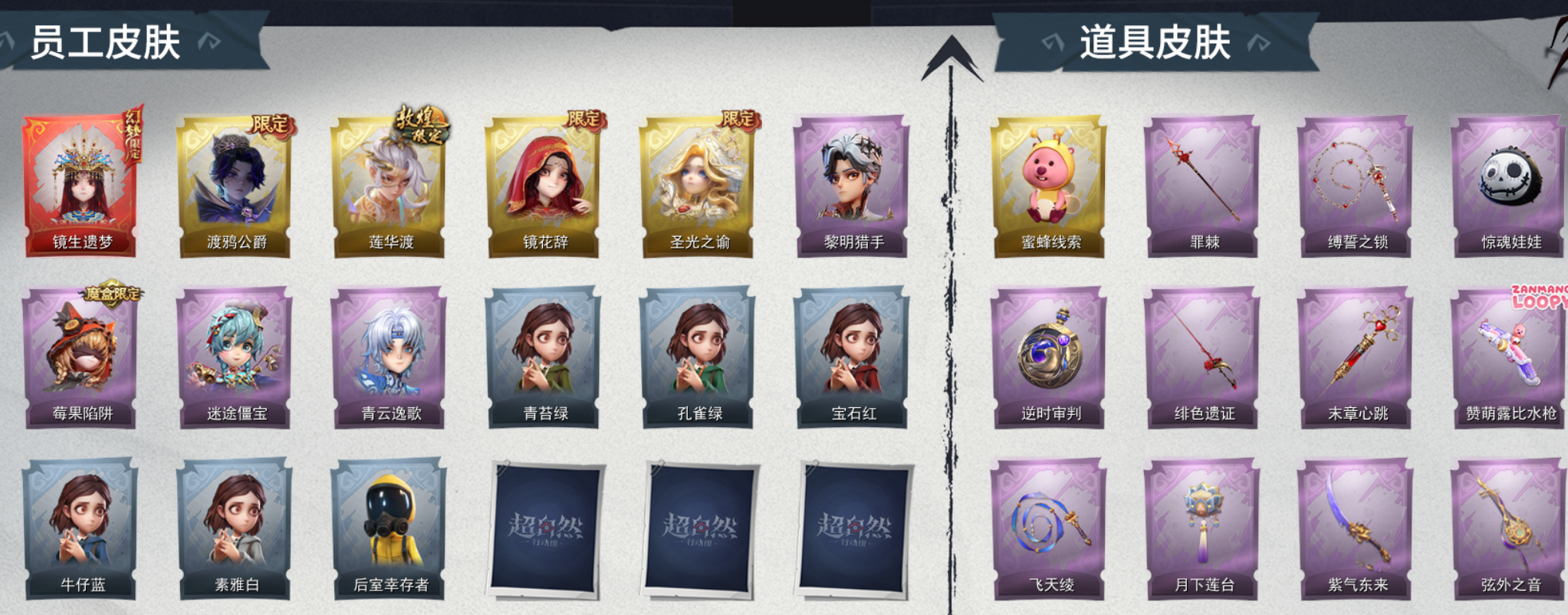 ZR209,红皮:1,金皮:4,紫皮:4,道具皮:40,铲铲币:3629w,累充:35760金砖,幻梦皮肤:巫铃儿-镜生遗梦,金色皮肤:零-渡鸦公爵、逍遥-莲华渡、薇薇安-圣光之谕、巫铃儿-镜花辞,紫色皮肤:艾伦-黎明猎手、莉莉-莓果陷阱、阿念-迷途僵宝、零-青云逸歌,员工:小黄、爱丽丝、零、阿念、逍遥、薇薇安、巫铃儿、莉莉、艾伦、爱德华、兰、小满,赛季魔盒:稀世豪华魔盒,道具皮肤:铲子-龙鳞、专