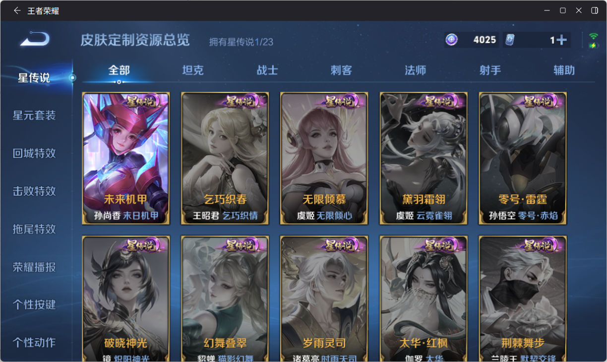 【精品号手慢无】典藏杀手不太冷幻阙歌 珍品传说怪盗基德 热门限定皮白虎志至尊宝神威 星传说未来机甲 100+玫瑰 4000+星币 性价比V8号