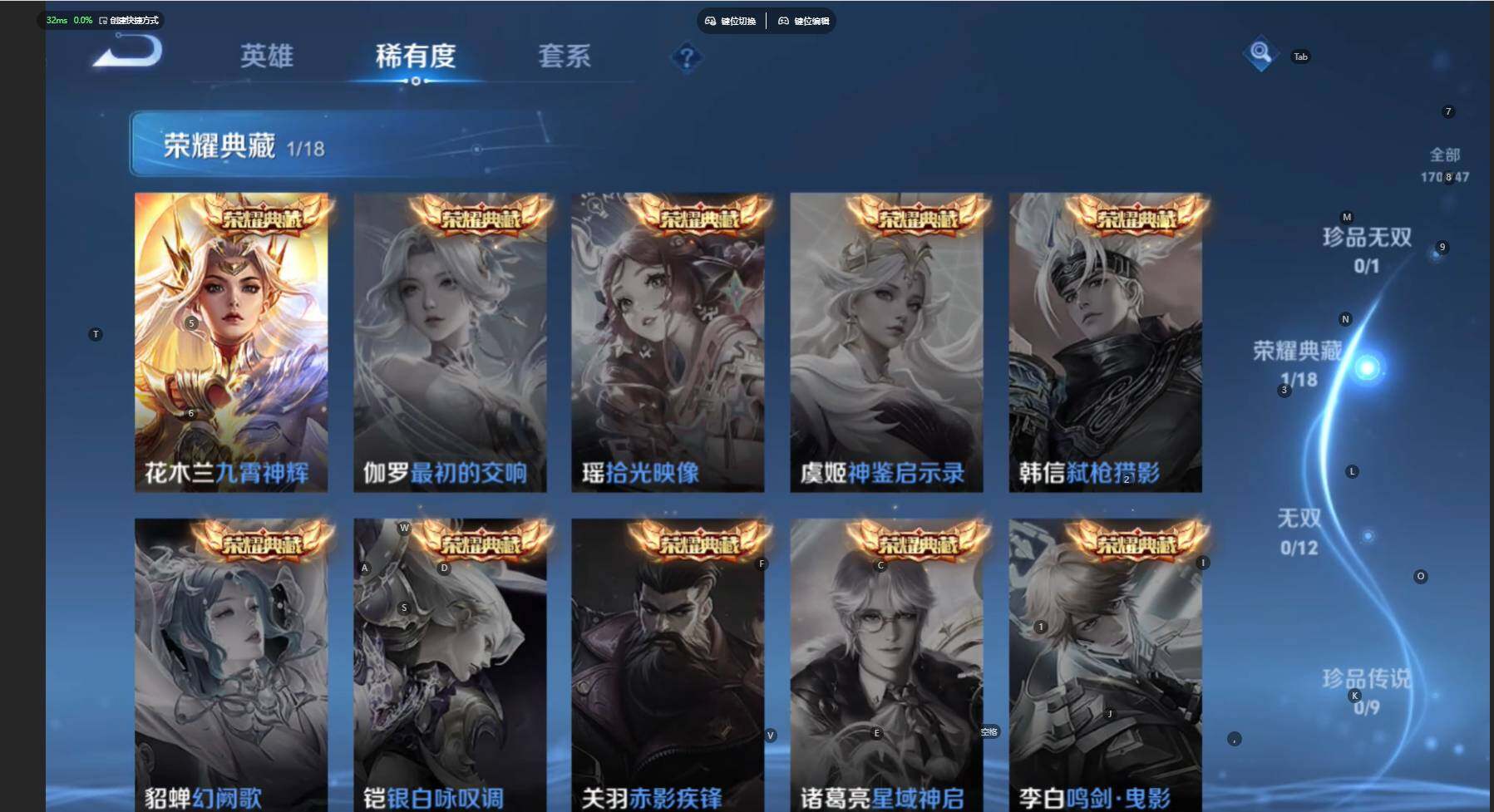 苹果Q 对抗路34段!三金标!万战马超!【金标万战花木兰,金标刘邦,金标老夫子】V6-170皮肤-1典藏皮肤-4传说-59史诗-61限定