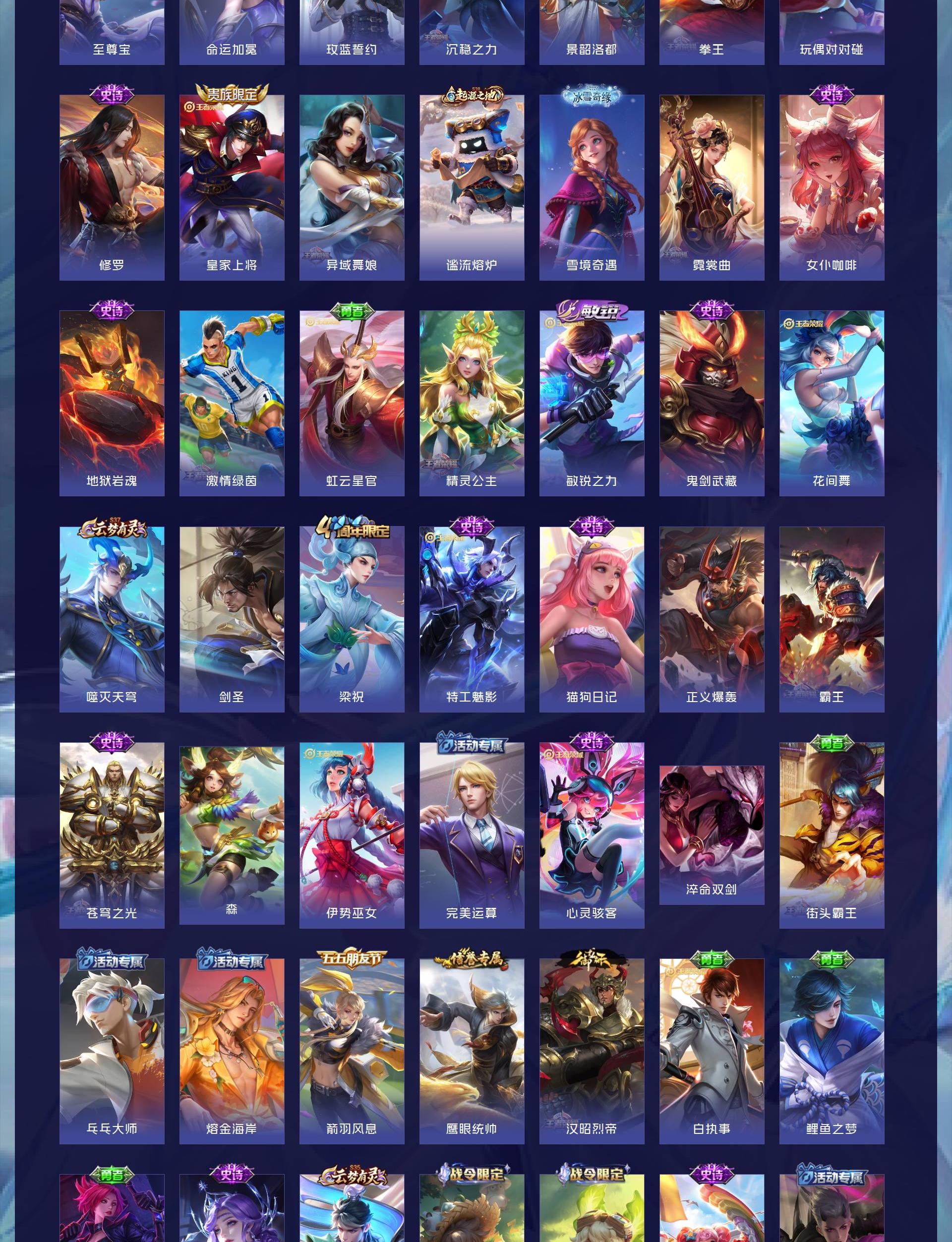 V5 皮肤89 英雄101 尊贵铂金 传说7 其他皮肤88