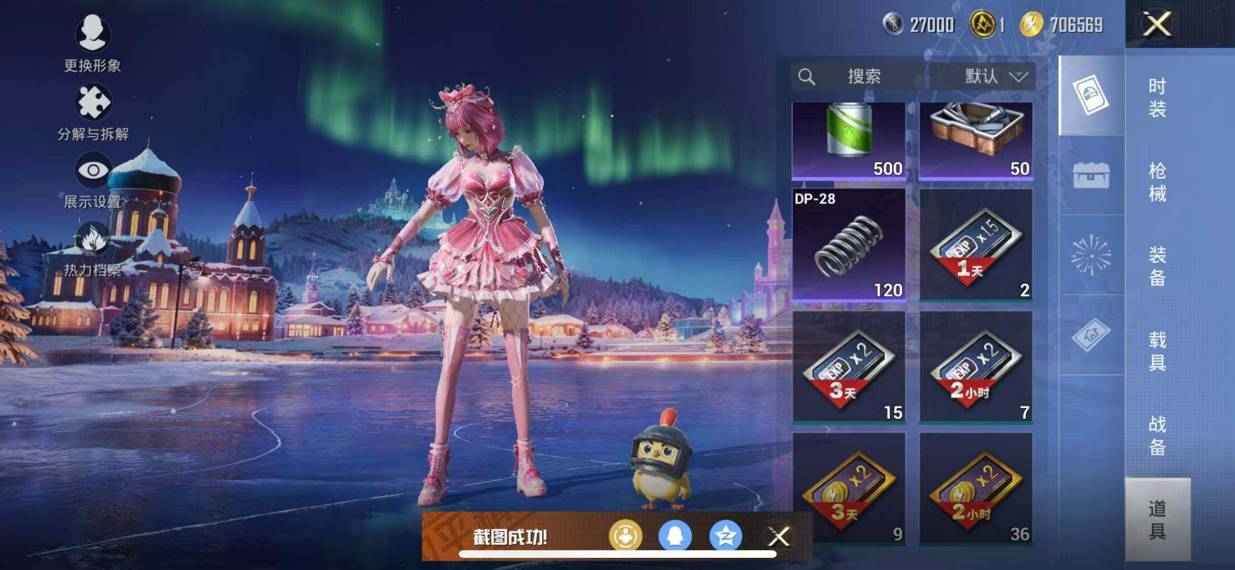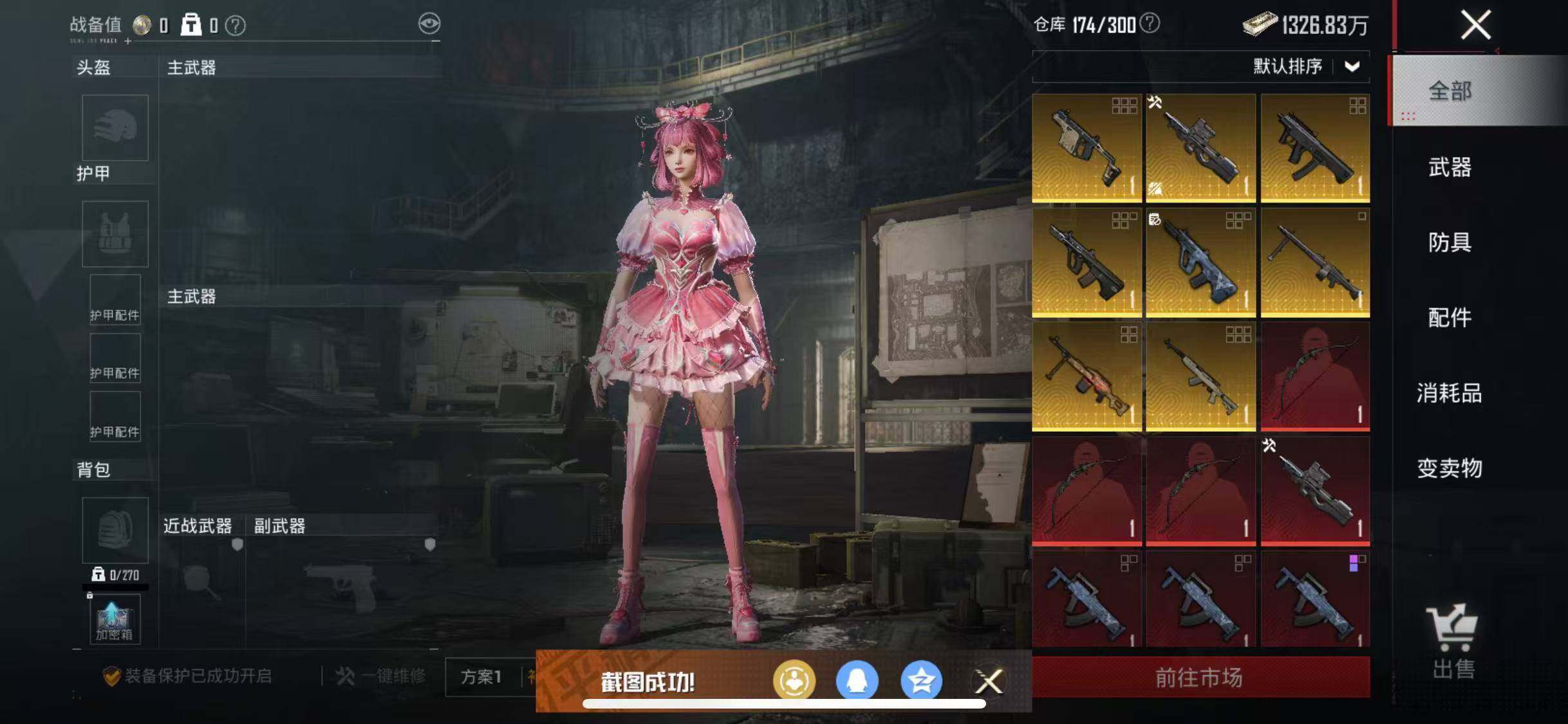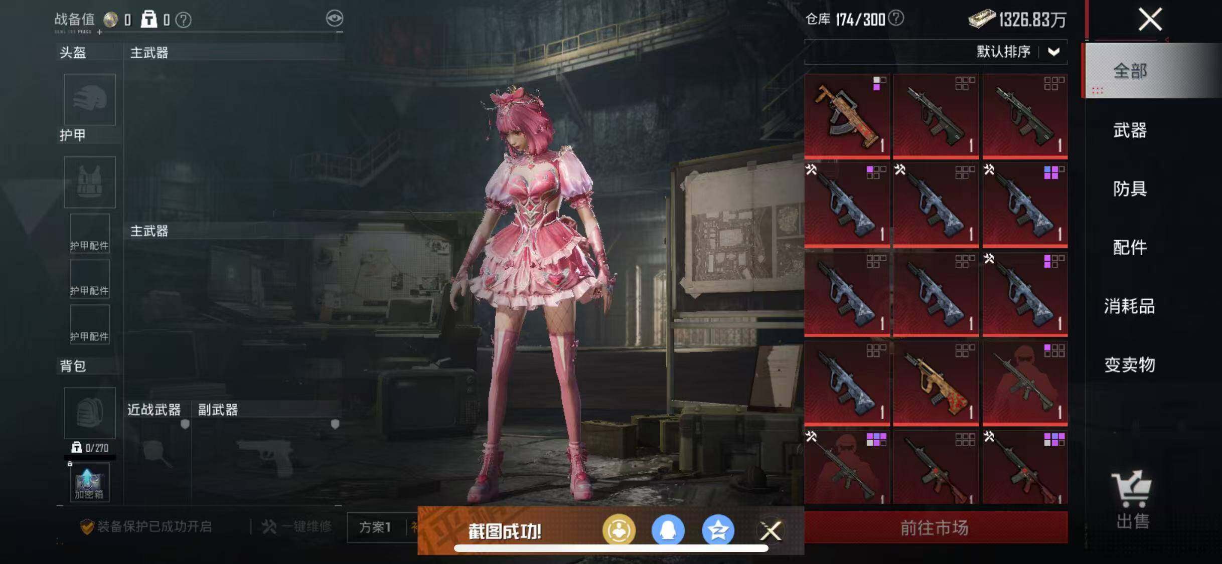 【粉色枪皮等级】:Kar98K-巳巳如意(五级),DP-28-圣堂之誓(七级),DP-28-豹影疾电(一级)