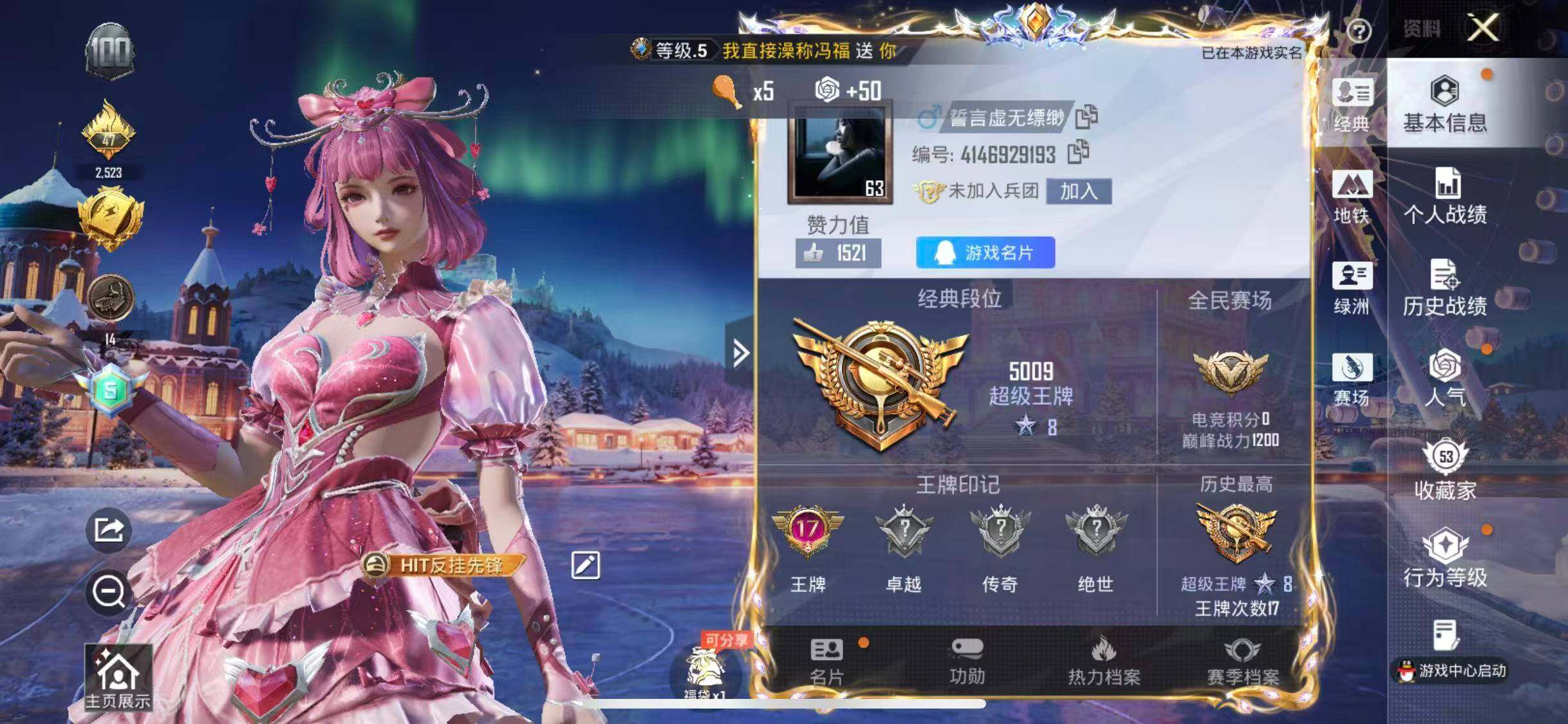 苹果,手Q-3粉装-3特效枪-0载具-1粉色飞行器-50658热力值-17王牌印记-129套装-177枪皮