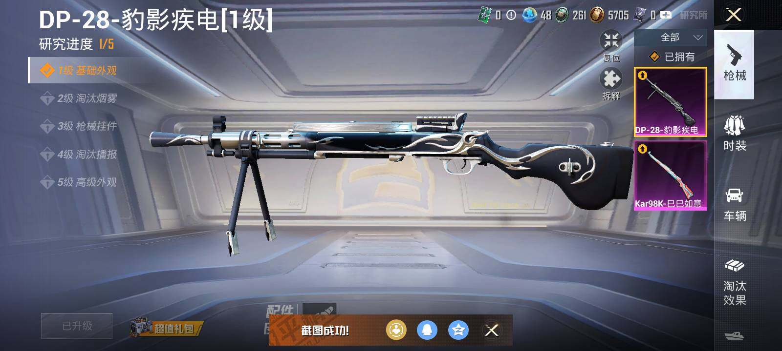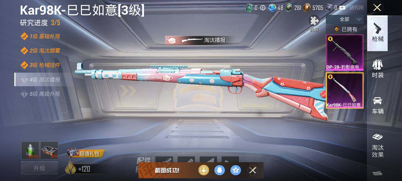 【粉色枪皮等级】:Kar98K-巳巳如意(三级),DP-28-豹影疾电(一级)