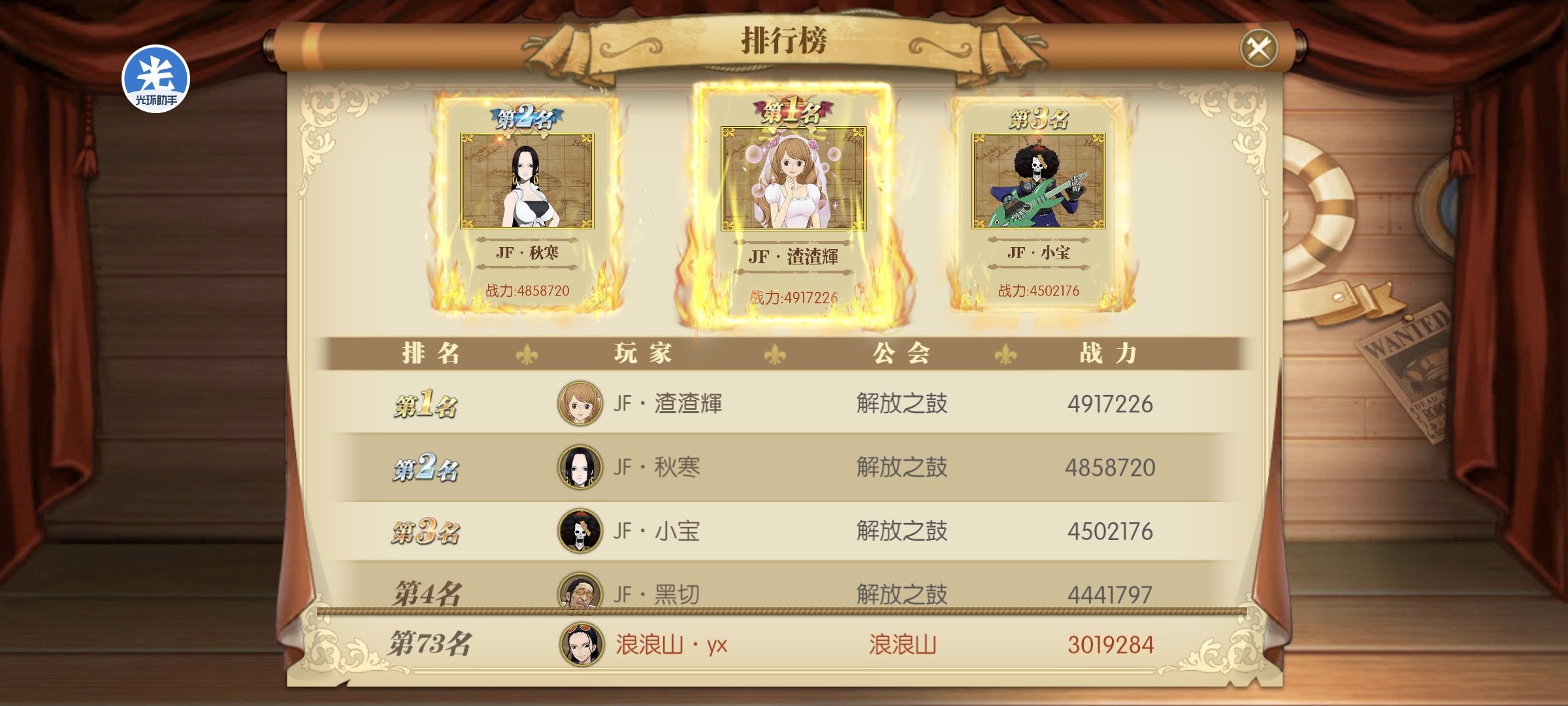 怀旧224服草帽团豹子在榜战力没时间玩了