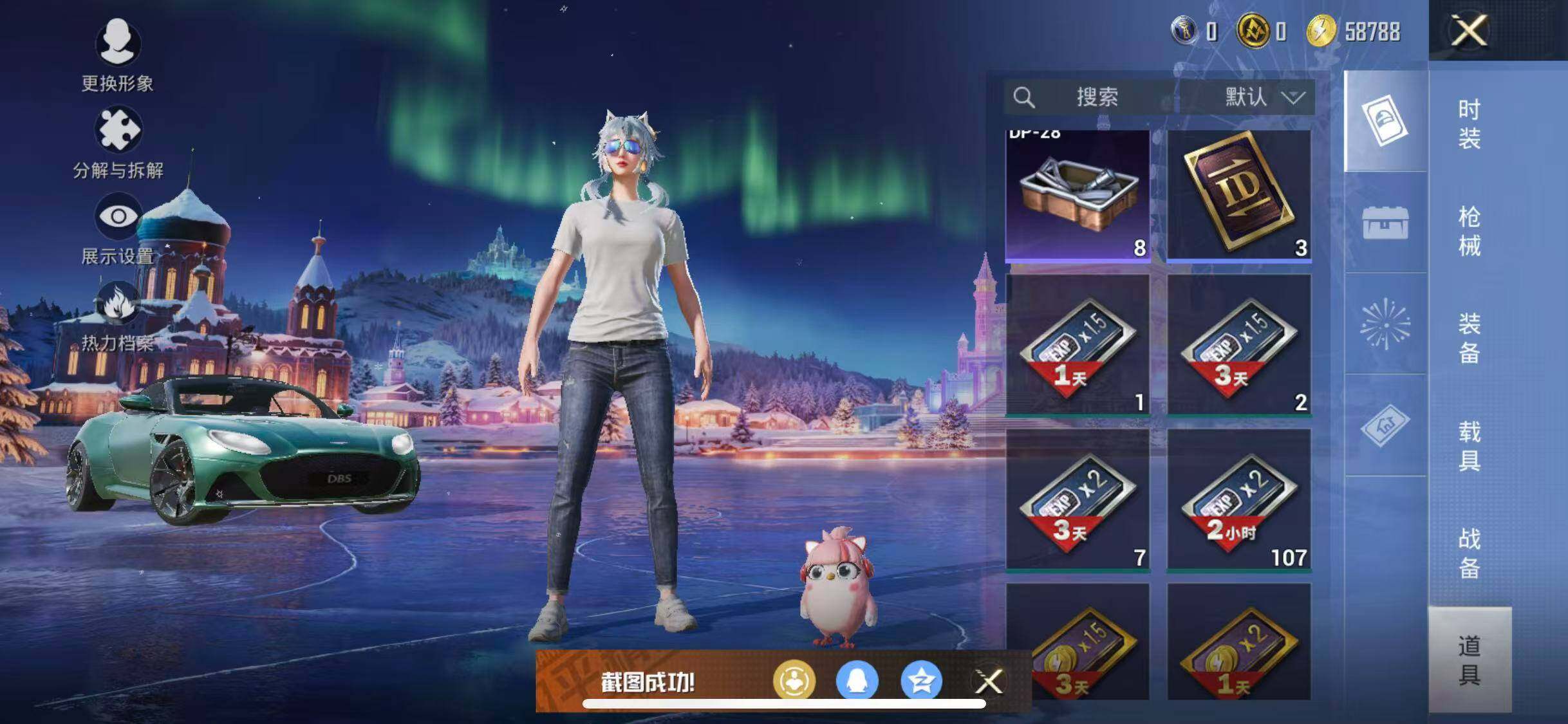 【粉色枪皮等级】:M416-心之恋语(七级),Kar98K-巳巳如意(五级),DP-28-豹