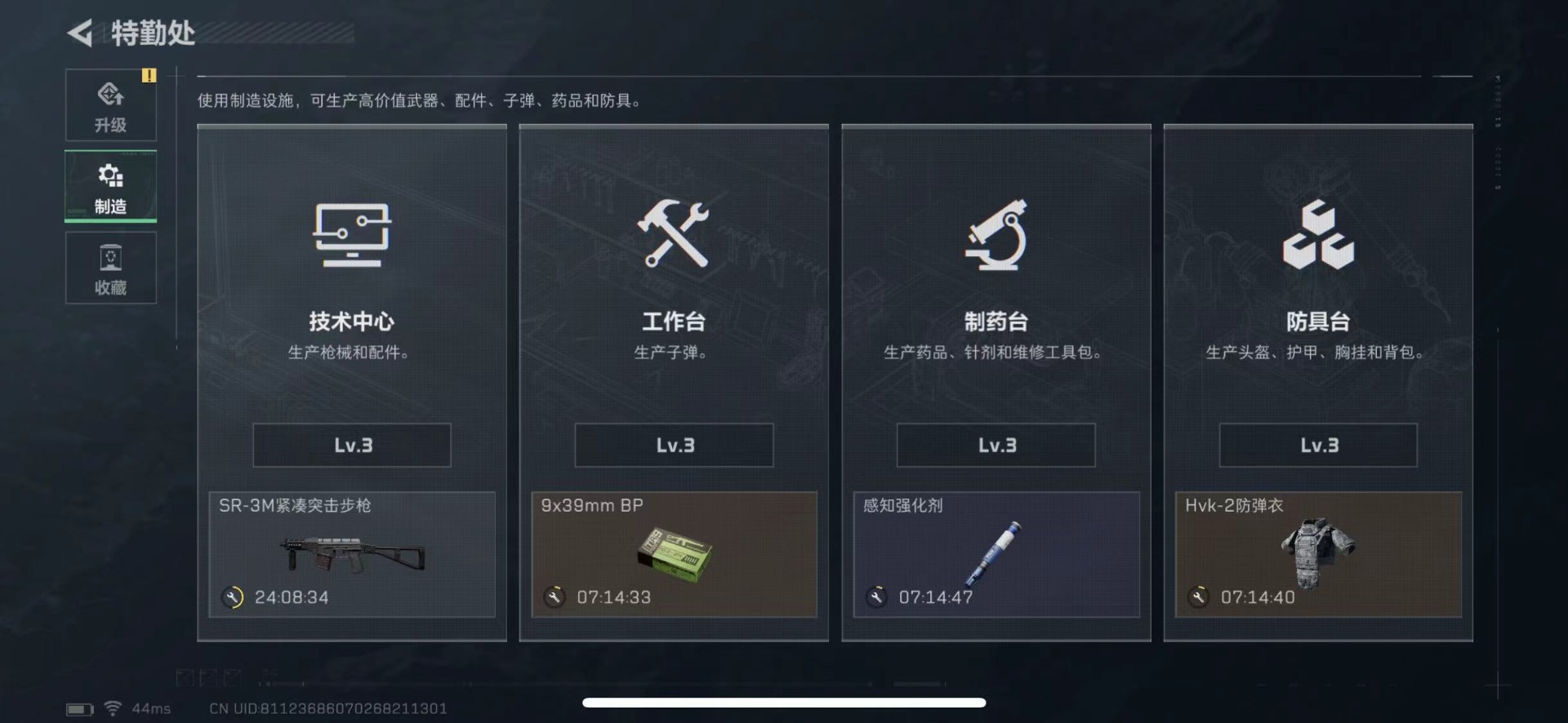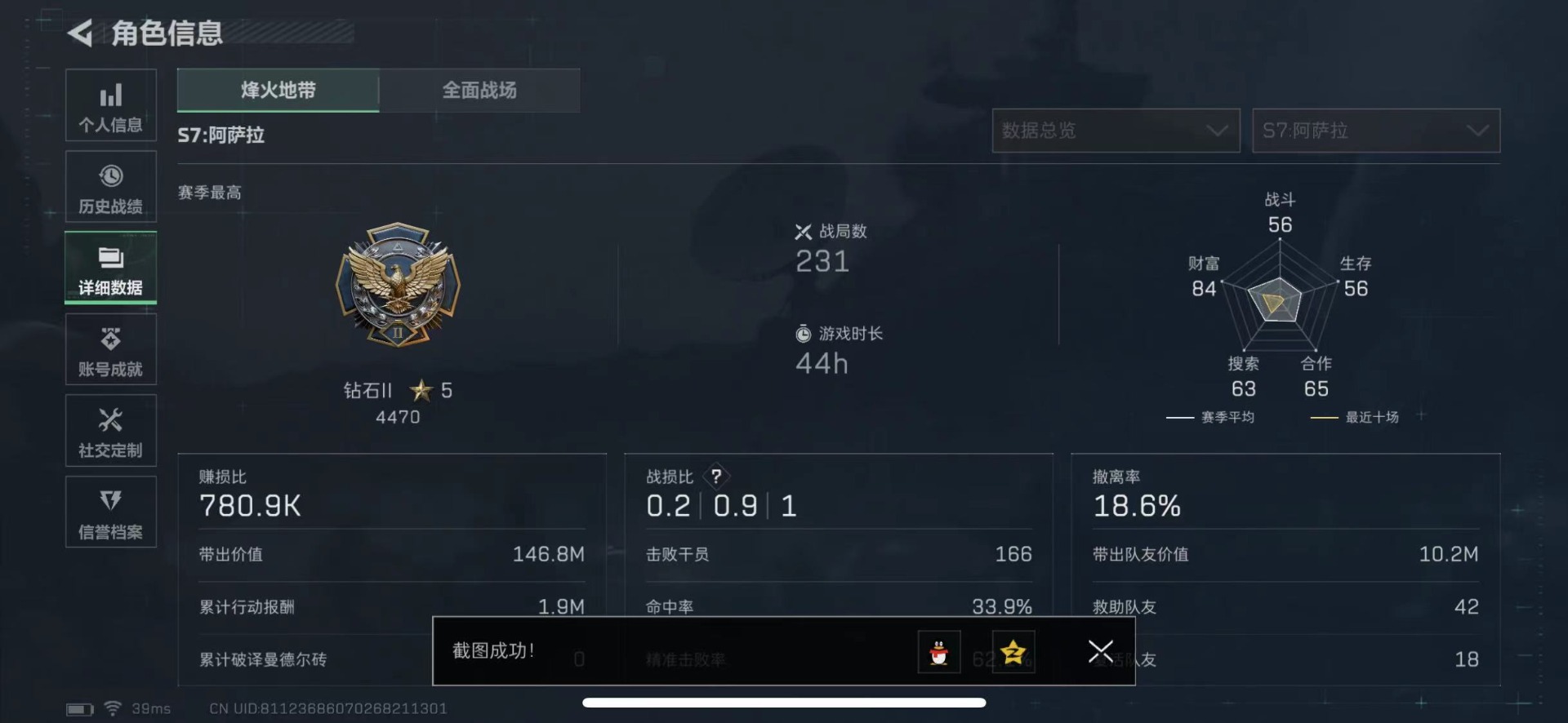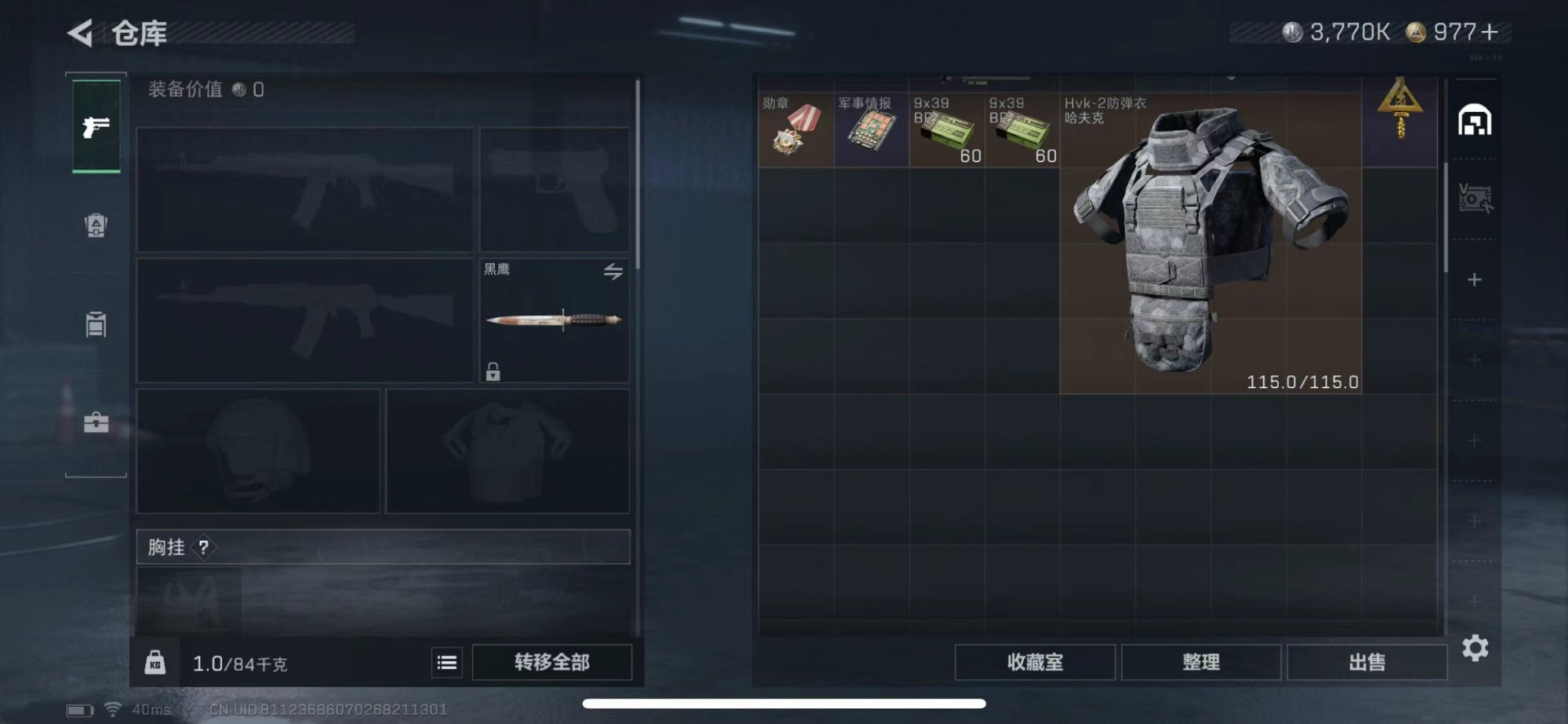 总资产:85.5M 1干员外观 16传说枪械 哈夫币:3.770K 可二次