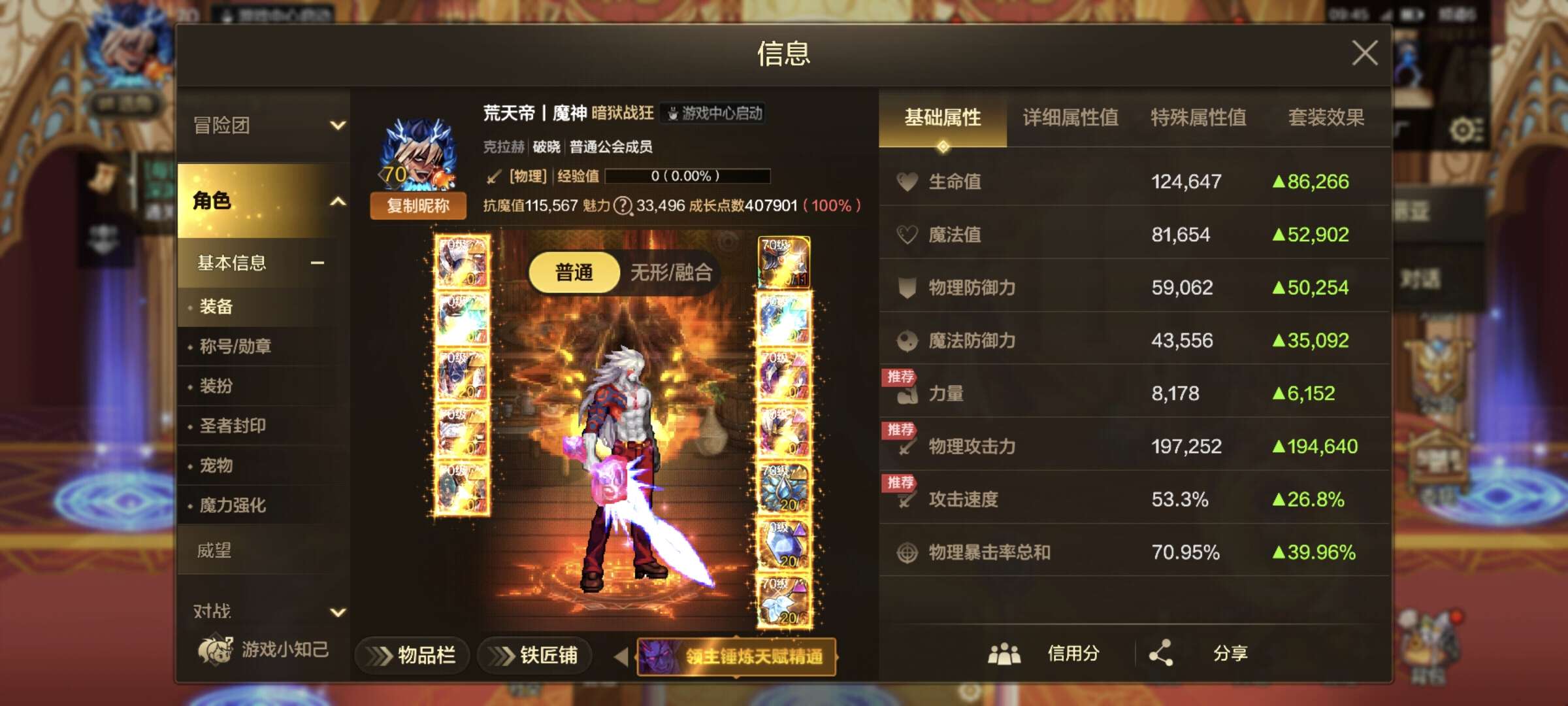 11.5万至尊万氪狂战,副c剑魂11.2万剑宗11万。其余10万+。天空套全身二十,细节拉满