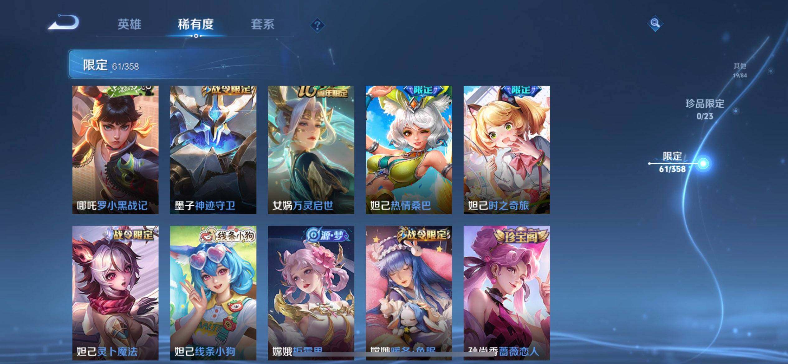 【限定皮肤】:狄仁杰阴阳师,赵云皇家上将,墨子神迹守卫,妲己热情桑巴,妲己时之奇旅,孙尚香蔷薇
