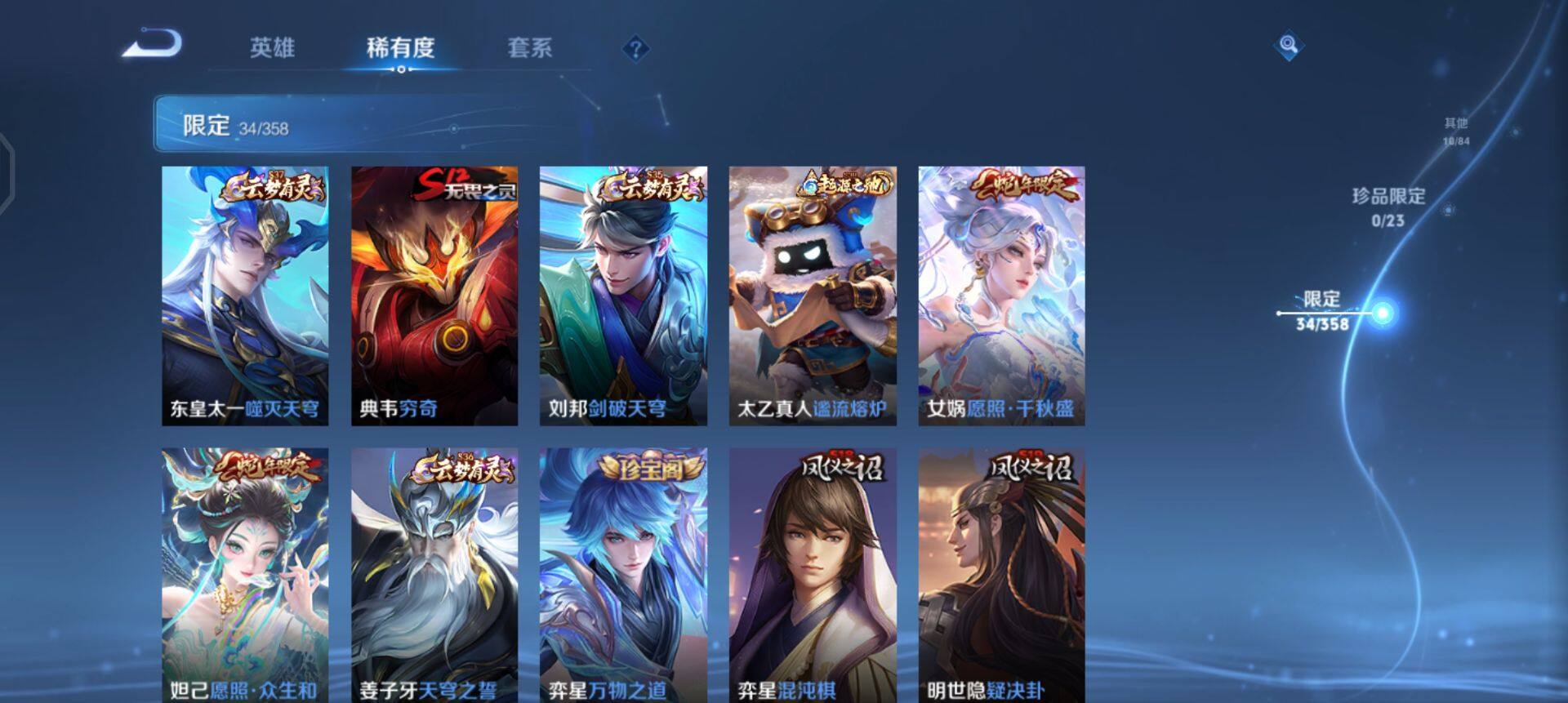 【限定皮肤】:蒙犽顽岩魄,蔡文姬夏日便利店,大乔绒语心约,虞姬夏日便利店,姜子牙天穹之誓,杨戬破阵退雄兵,狄仁杰阴阳师,赵云皇家上