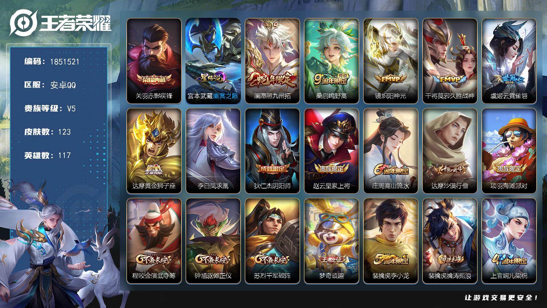 W13982,,可立即换绑无需挂单养号,,铭文满级,,典藏1,传说7,,星传说1,,按键2,,,夺宝227,,安卓Q-V5-永恒钻石IV段位-117英雄-123皮肤-1典藏皮肤-7传说-37史诗