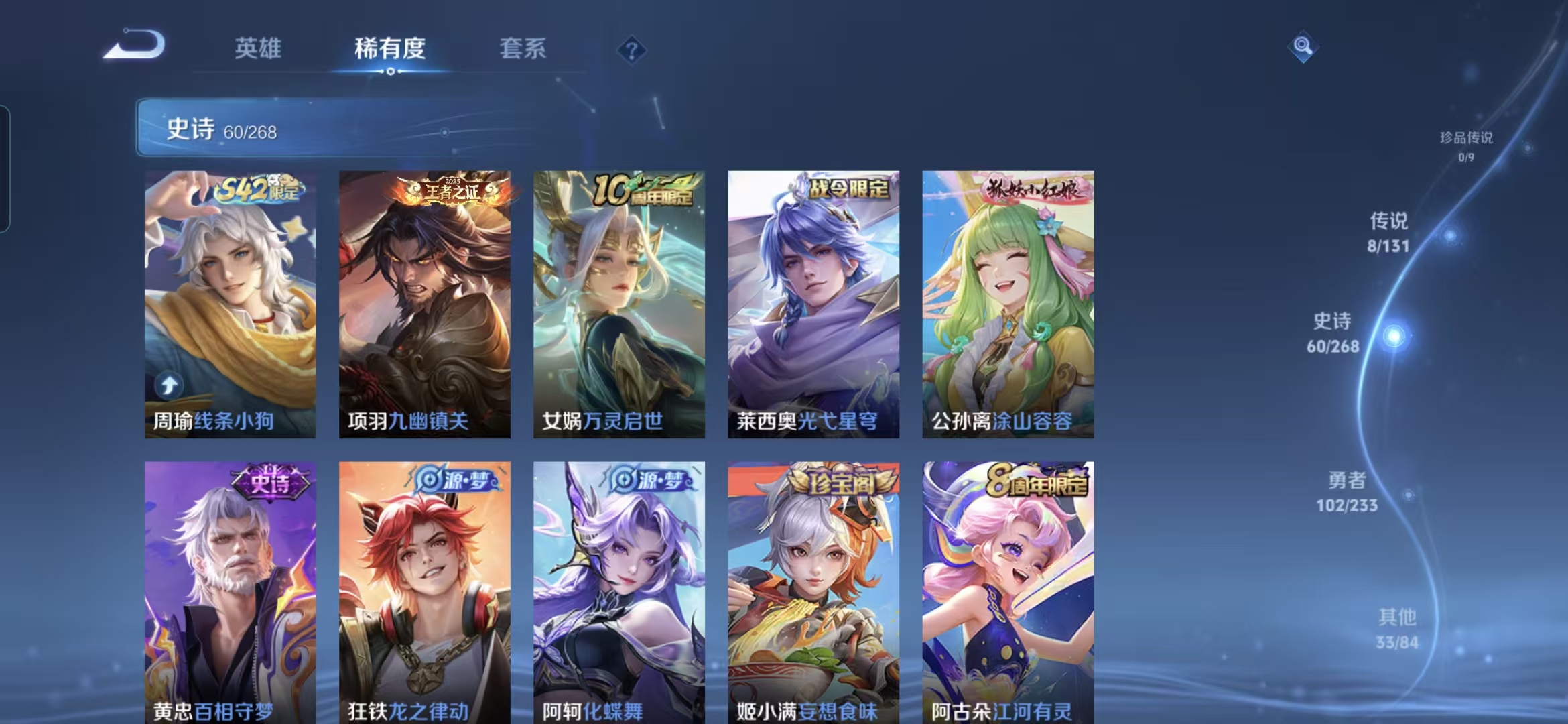 V7 1典藏 8传说 至尊宝 凤求凰 1星传说 -204皮肤-126英雄