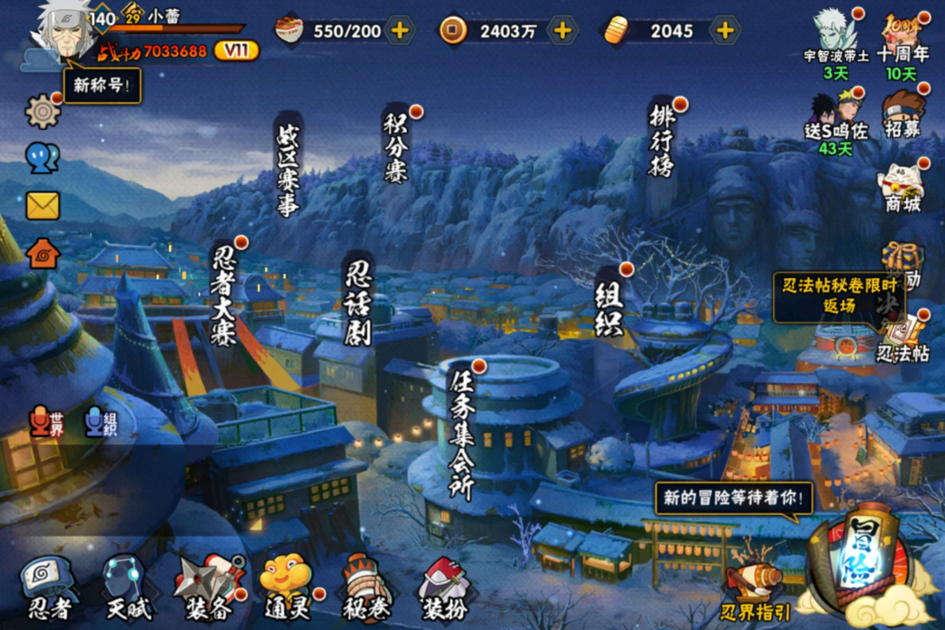 安卓QQ-v11-暗部-熊猫-宇智波斑「秽土转生」-长门「秽土转生」-波风水门「秽土转生」-艾「三代目雷影」-千手扉间「秽土转生」-宇智波带土「暴怒」-宇智波佐助「疾风传咒印」-佩恩·六道「漂泊浪客」-小南「夏日泳装」-桃地再不斩「漂泊武士」-小南「新春限定」-宇智波鼬「新春限定」-S忍者数:13- A忍者数:30