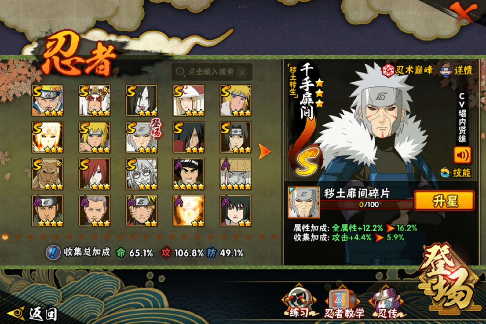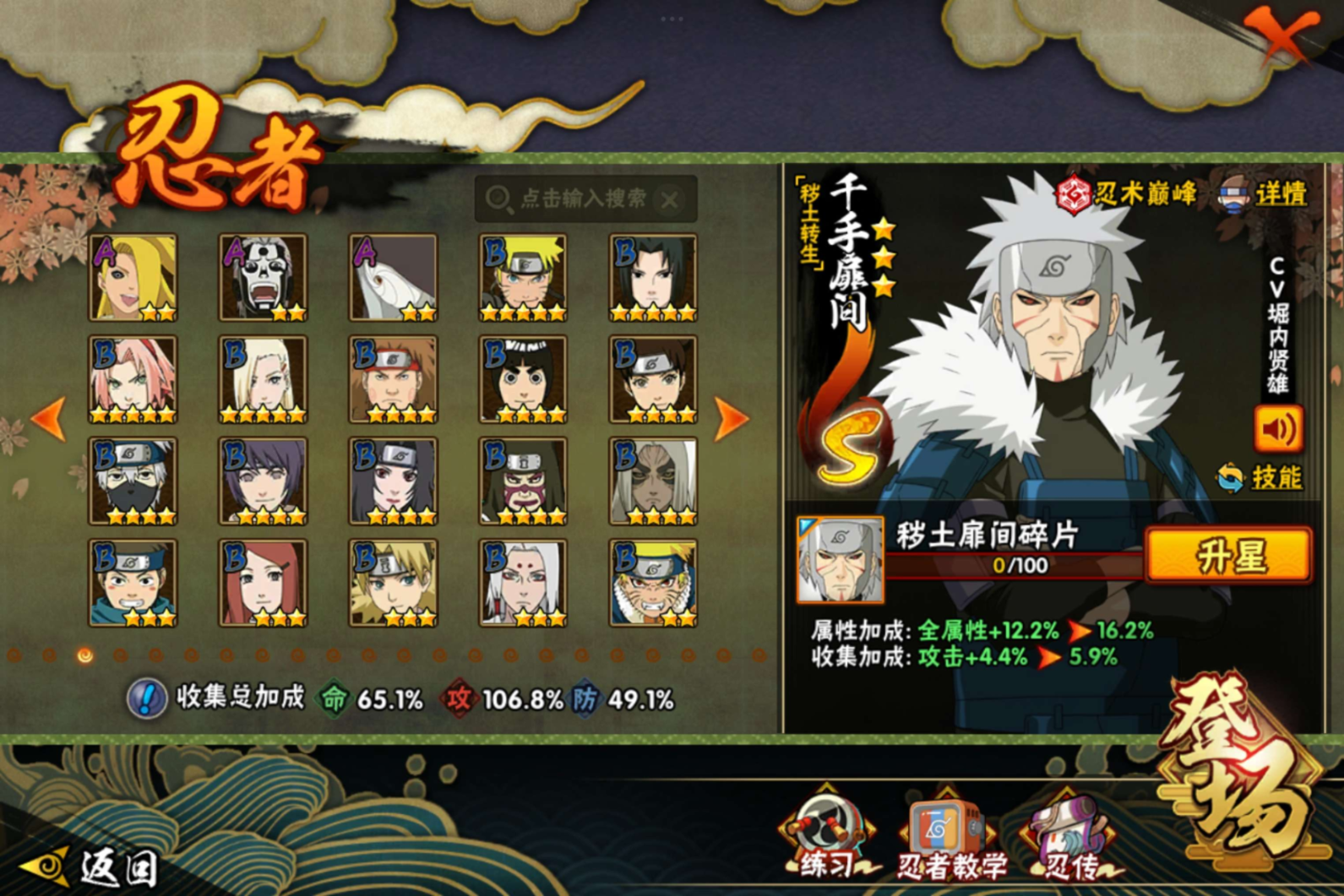 【S级忍者】长门「秽土转生」(3星),波风水门「九喇嘛连结」(3星),药师兜「