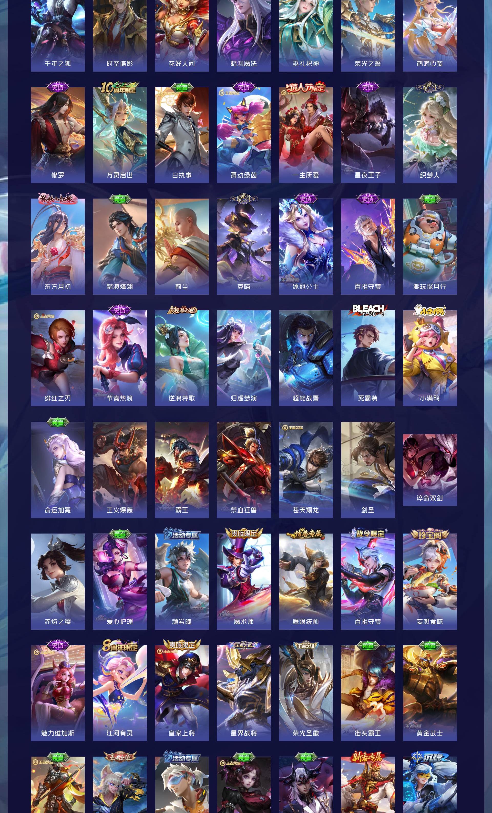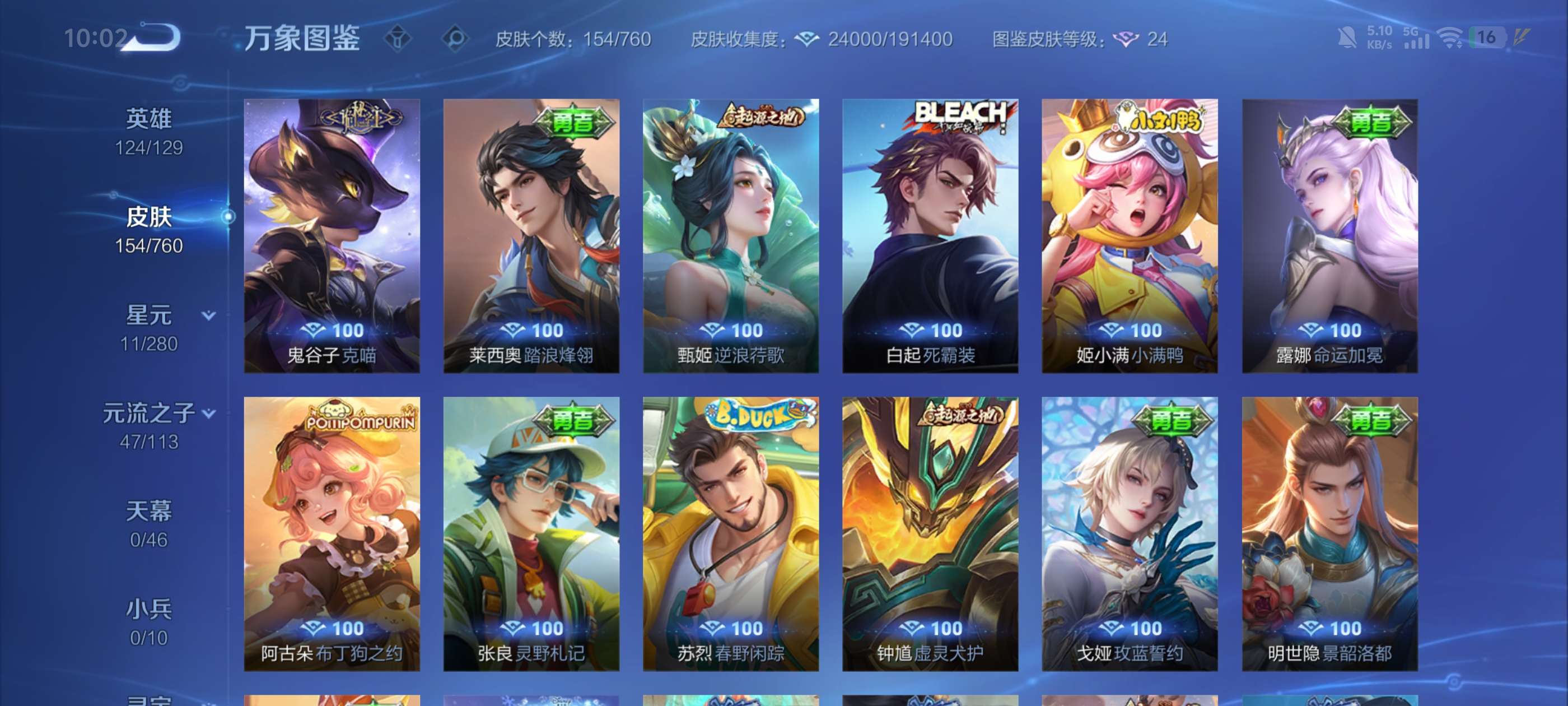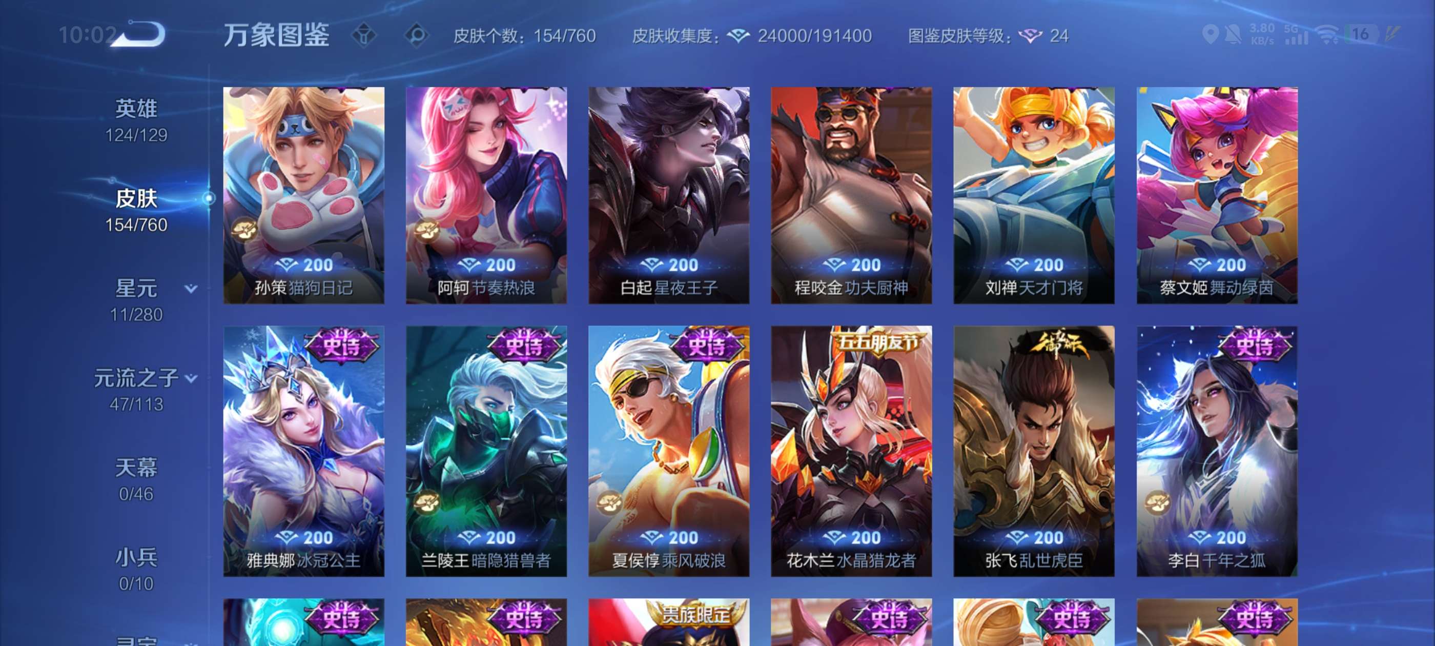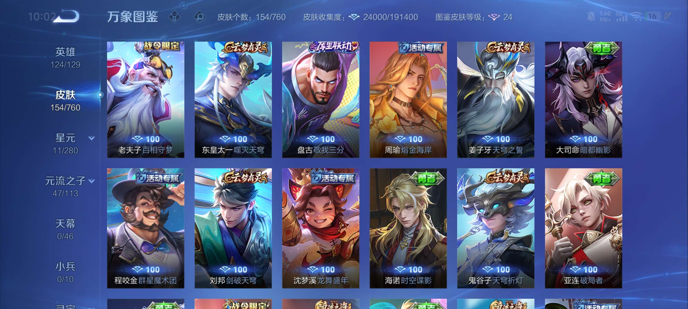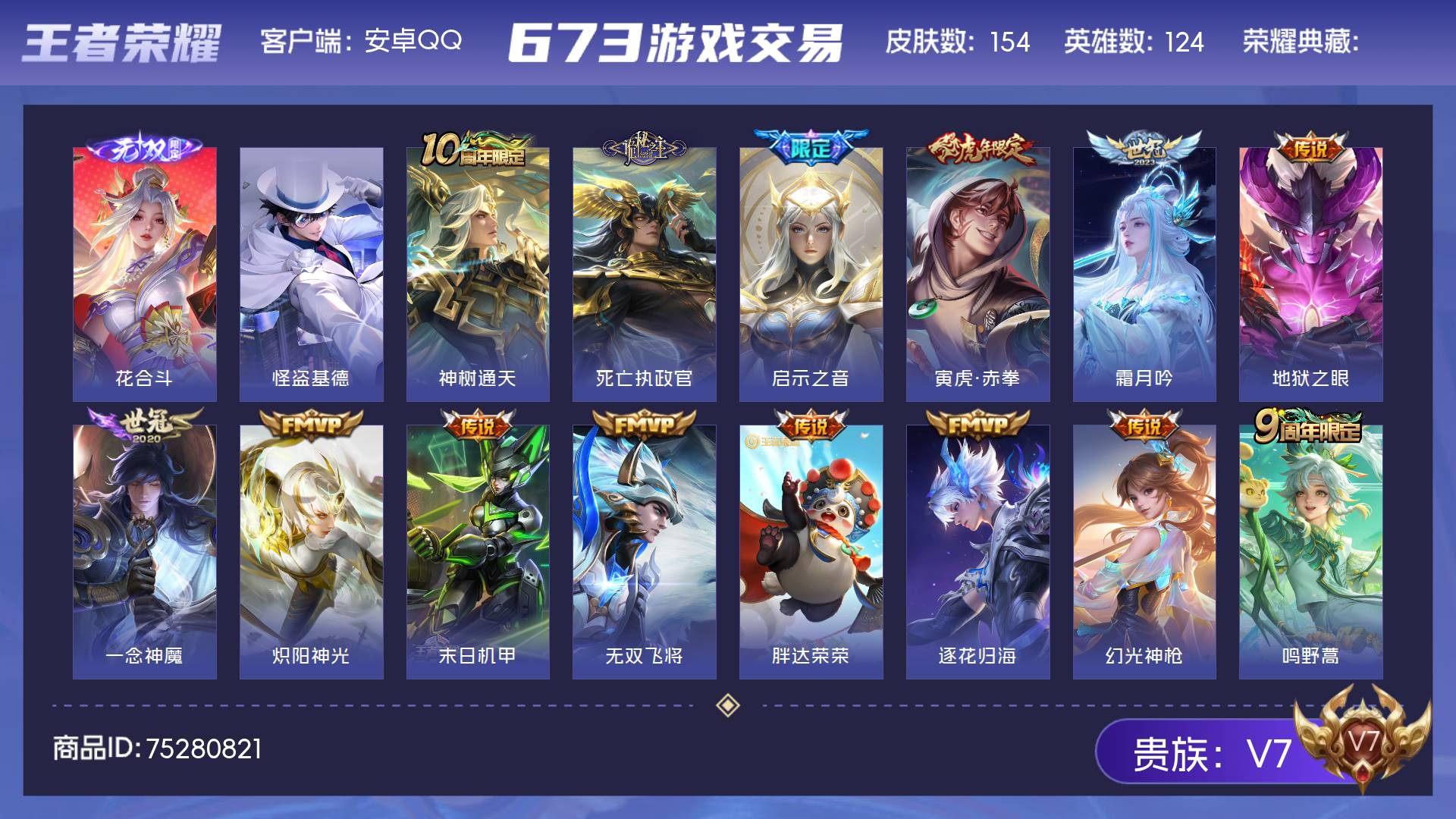 V7 皮肤154 英雄124 无双王者 无双皮肤1 珍品传说1 星传说1 传说14 其他皮肤144