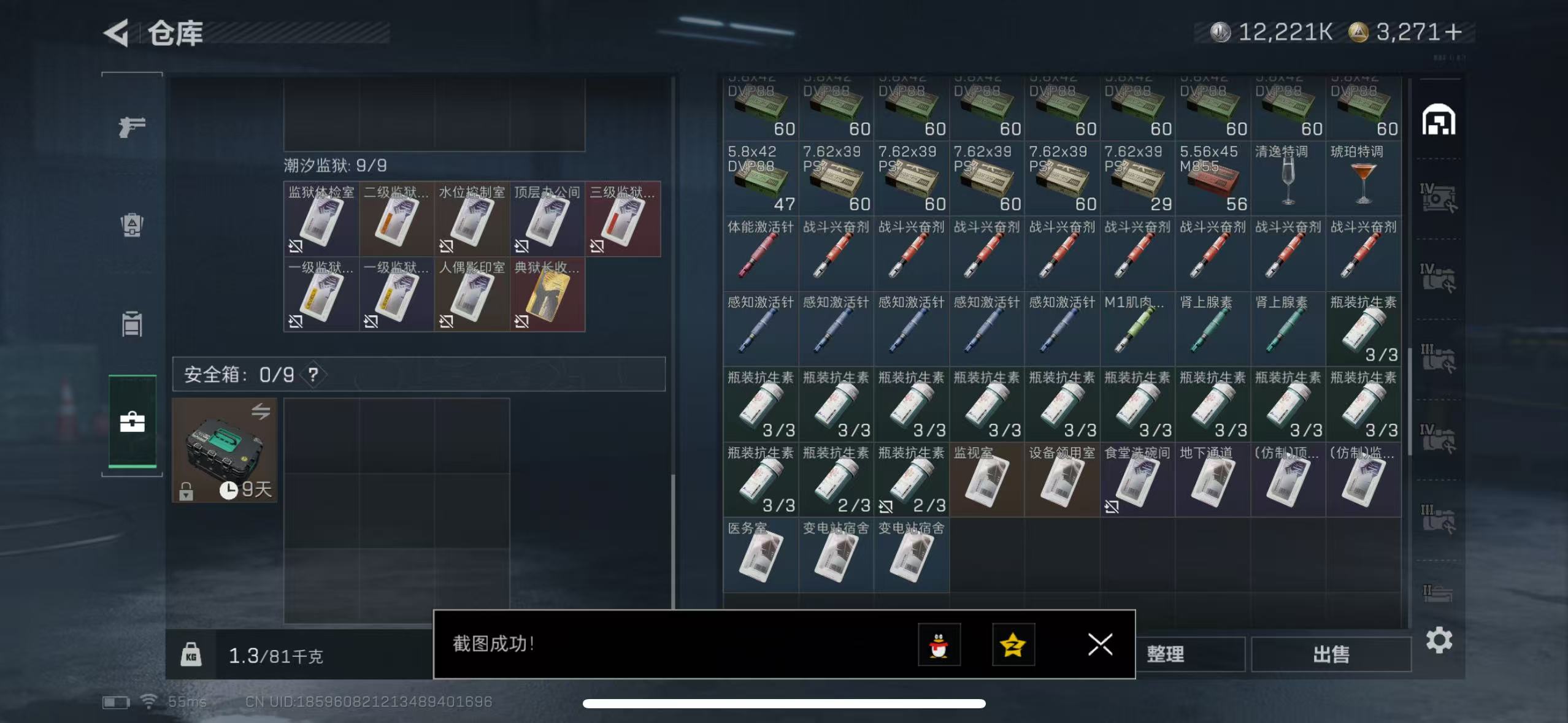 【总资产(M)】89.61【哈夫币】12221k【行动等级】60