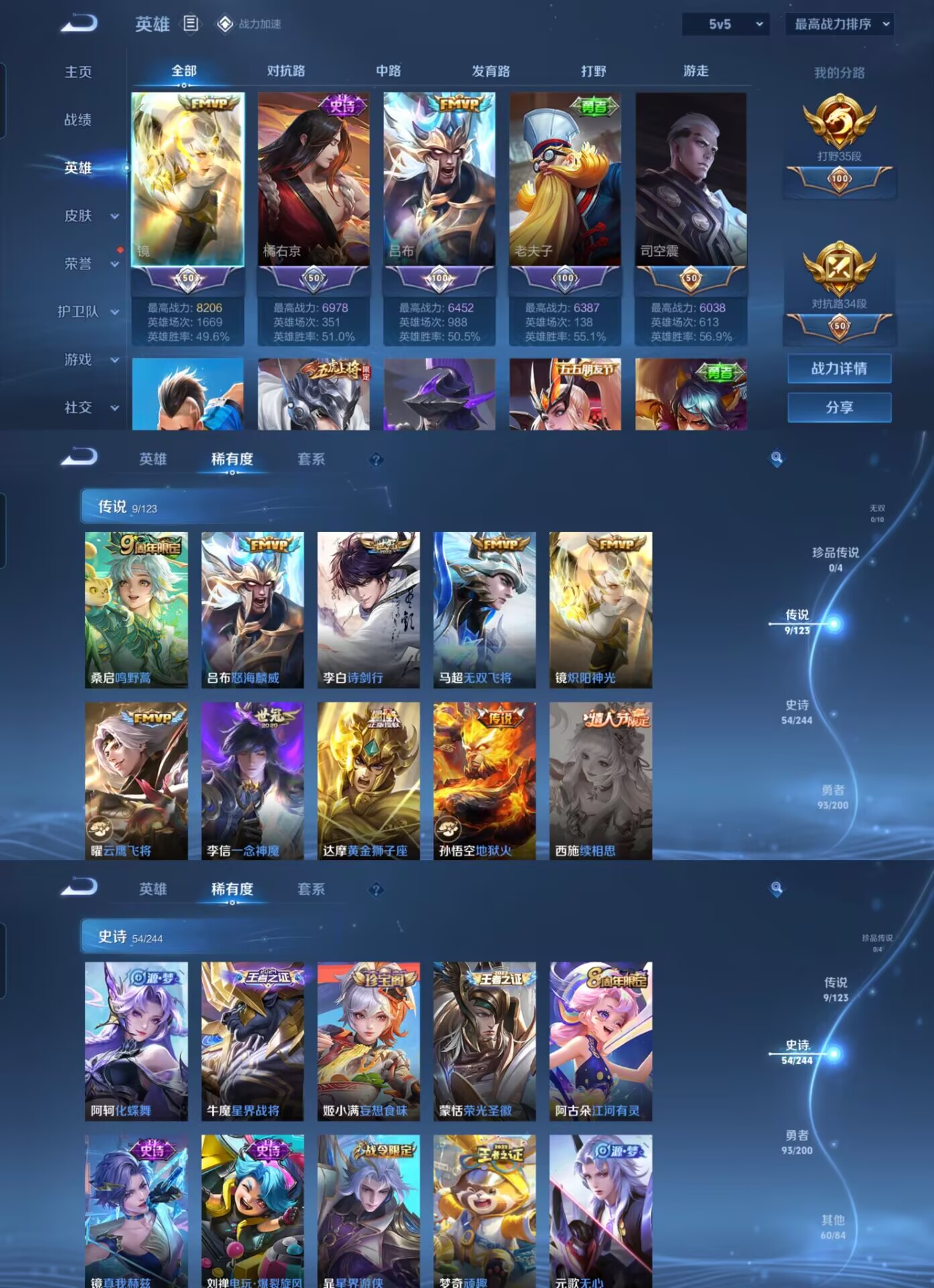 216皮肤 21王者印记 9传说V6 -216皮肤-120英雄
