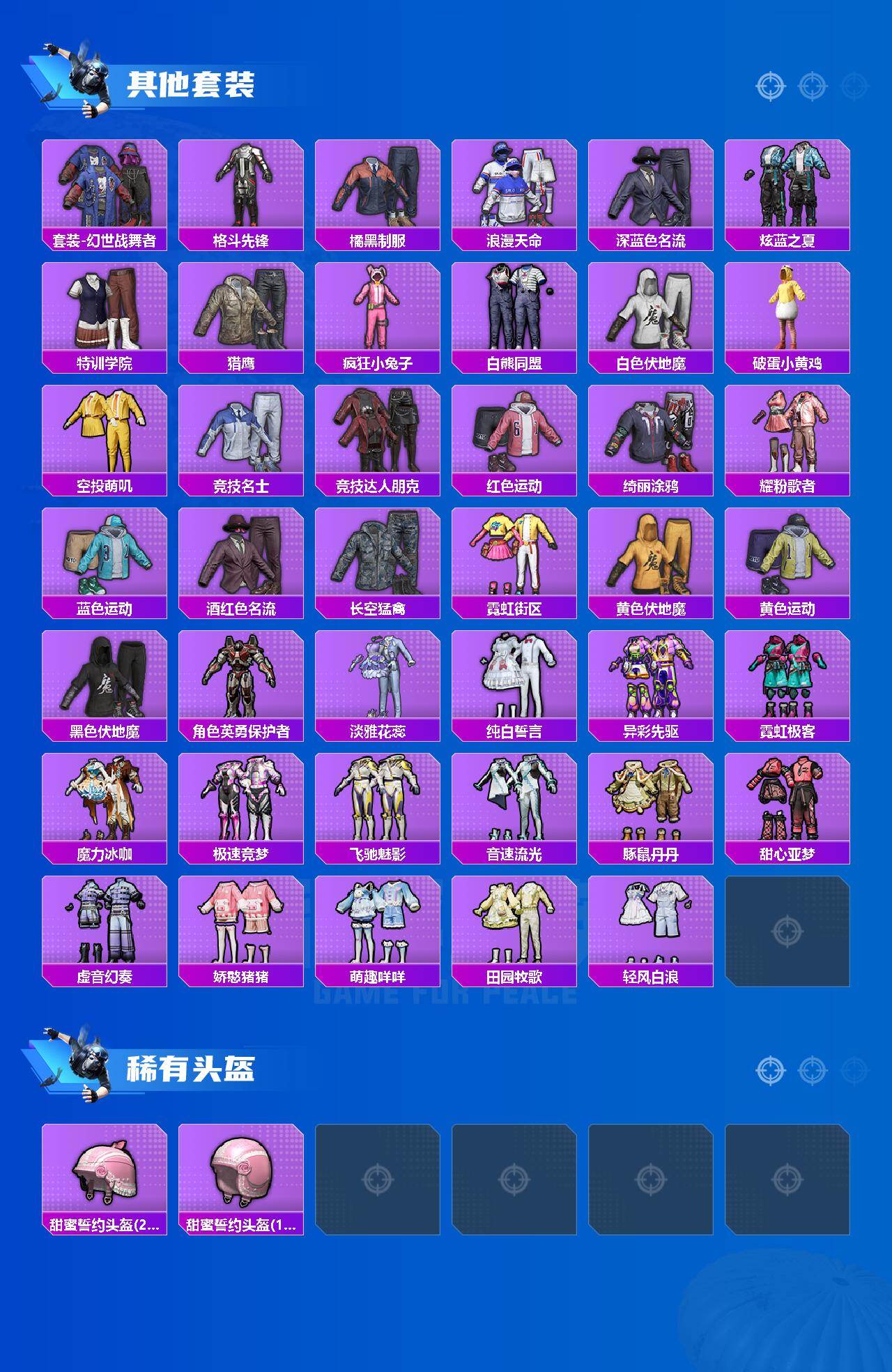 【粉色套装】:粉装-新星烈龙,粉装-甜蜜誓约,粉装-极致幻想,粉装-冰霜白皇,粉装-炙焰红王,粉装-赤焰黑爵,粉装-紫电风暴