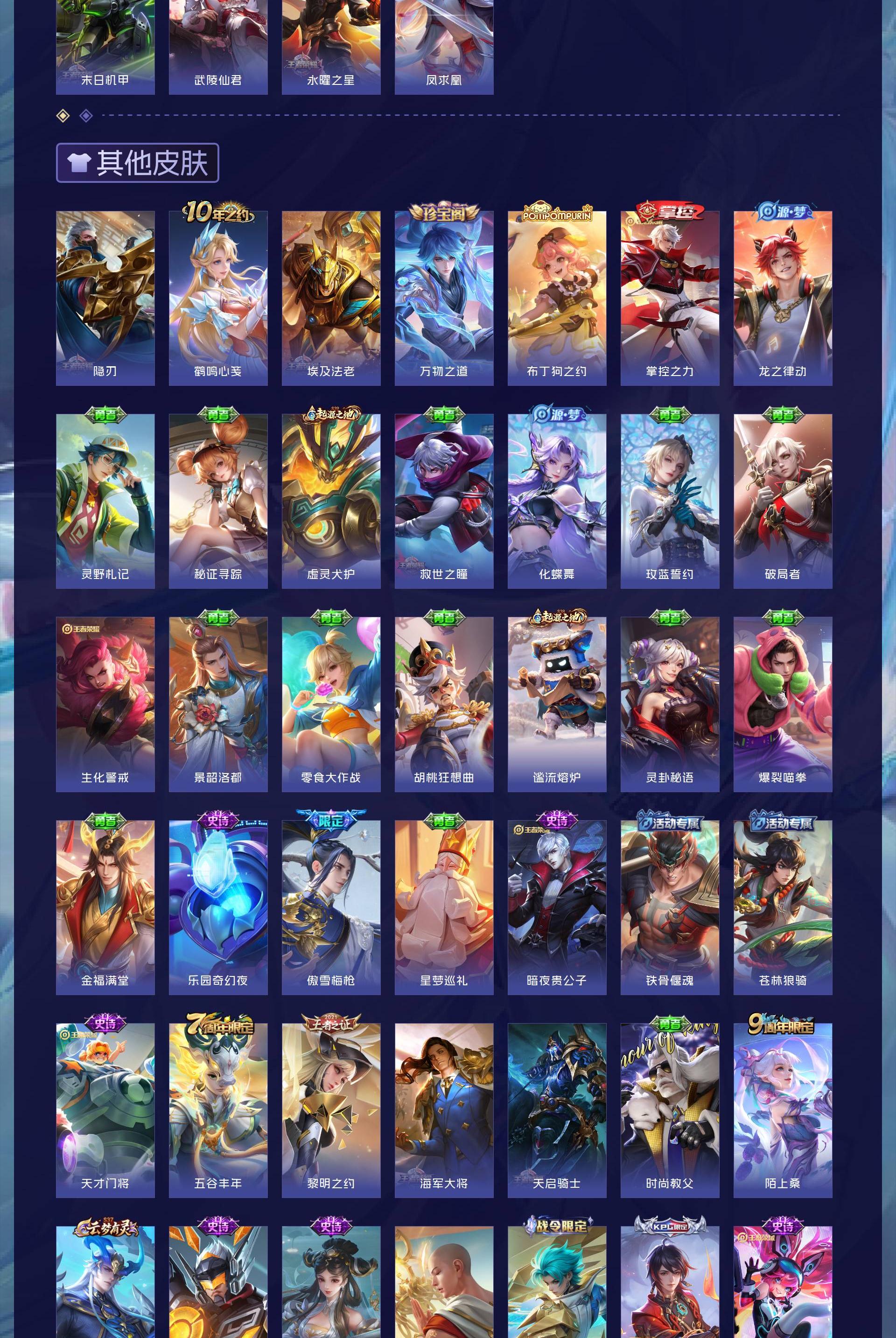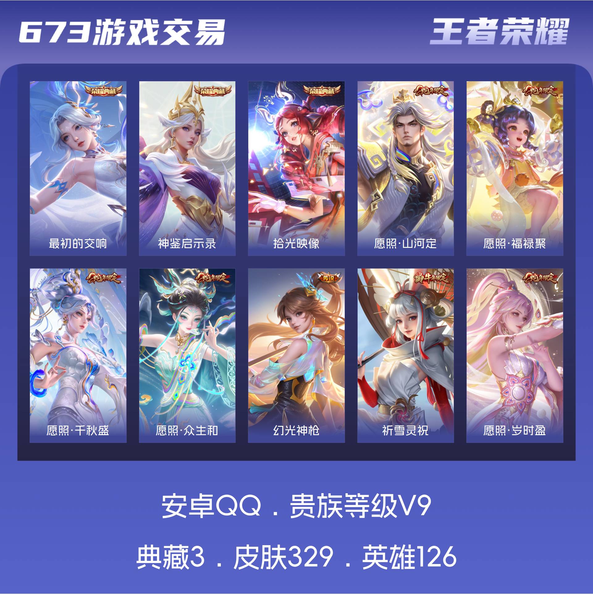 V9 皮肤329 英雄126 至尊星耀 荣耀典藏3 传说25 其他皮肤307