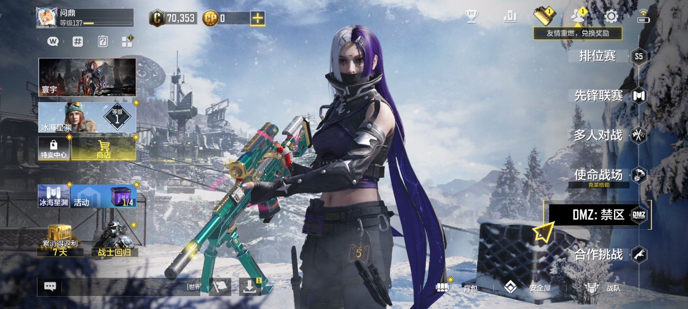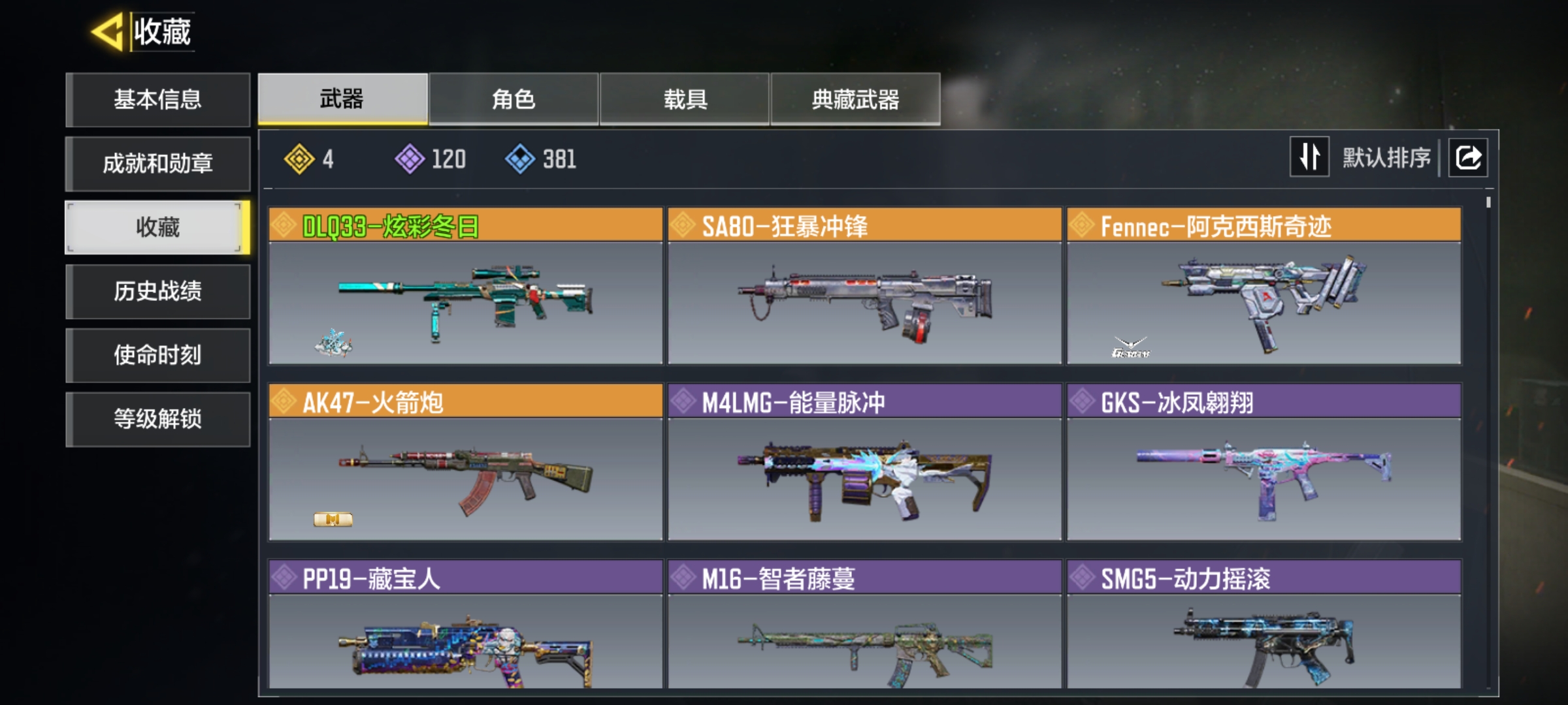 WLSM512【4传说 圣诞狙】安卓Q-等级137-史诗枪械120【传说】DLQ33-炫彩冬日 SA80-狂暴冲锋 Fennec-阿克西斯奇迹 AK47-火箭炮