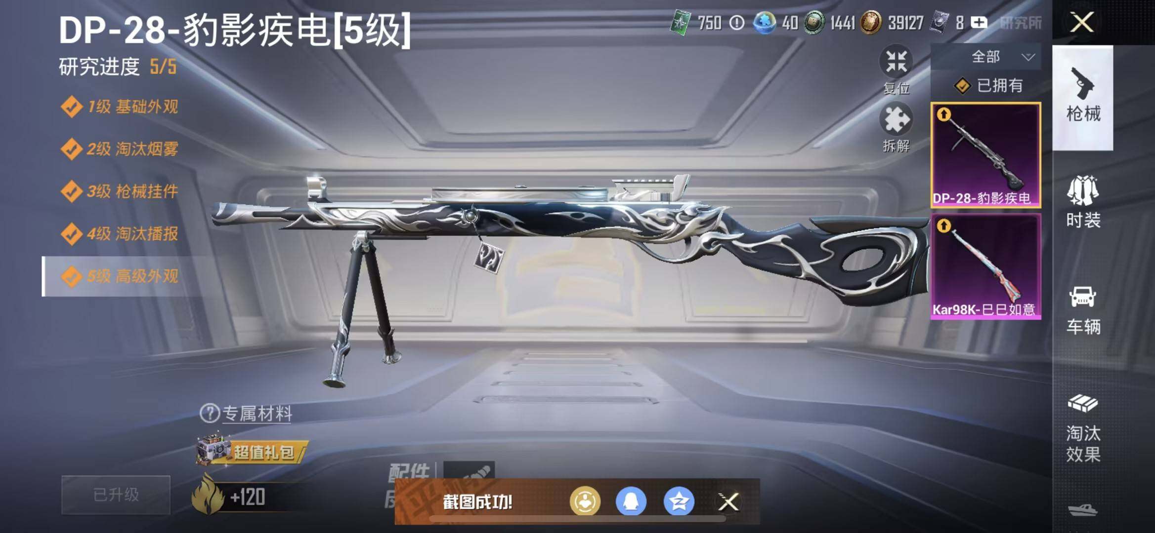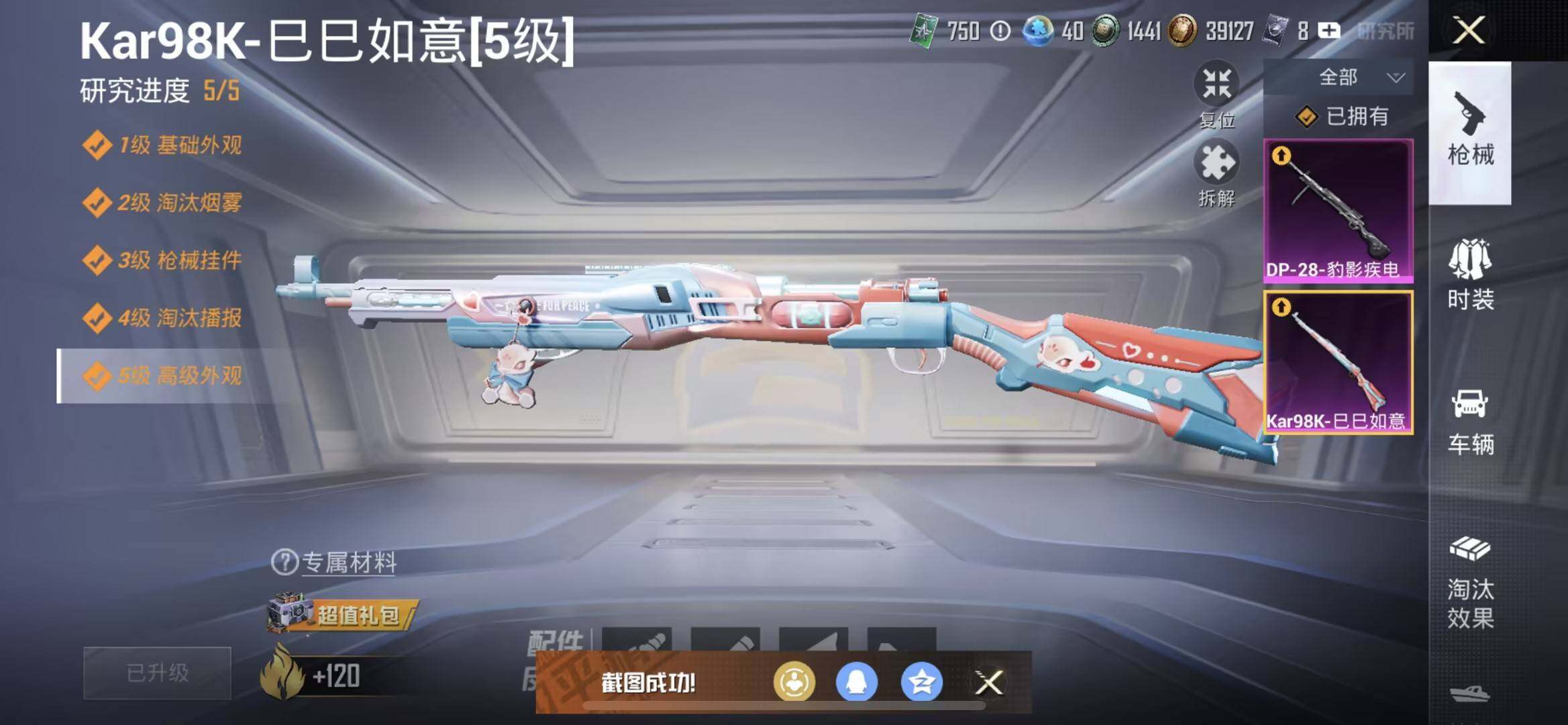【粉色枪皮等级】:Kar98K-巳巳如意(五级),DP-28-豹影疾电(五级)