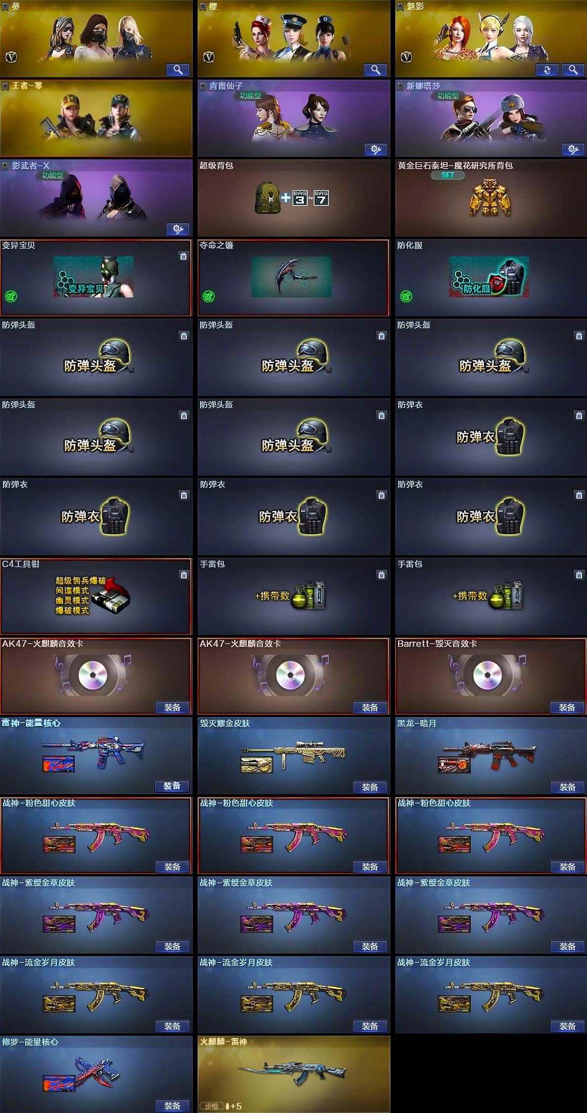 【皮肤】:雷神-能量核心,火麒麟-雷神,毁灭耀金皮肤,黑龙-暗月,战神-粉色甜心皮肤*3,战神-紫绶金章皮肤*3,战神-流金岁月皮肤*3,修罗-能量核心