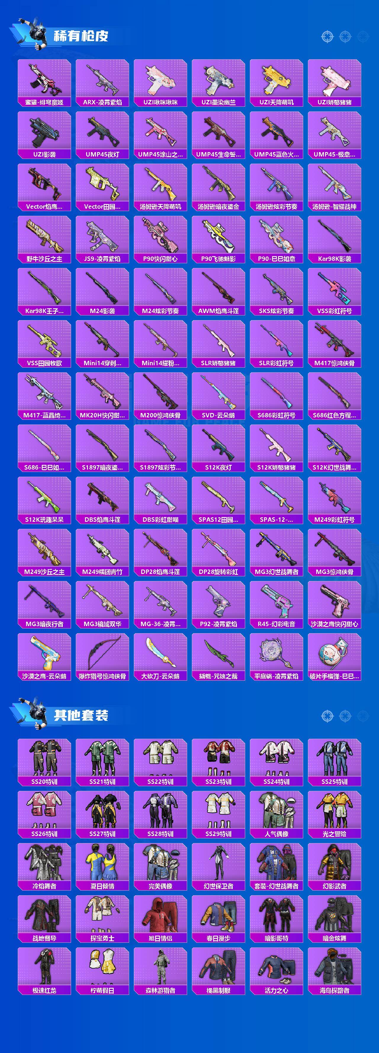【粉色枪皮等级】:AKM-绿萝繁花(五级),SCAR-L-锦绣绵绵(五级),M416-电玩时刻(五级),GRO