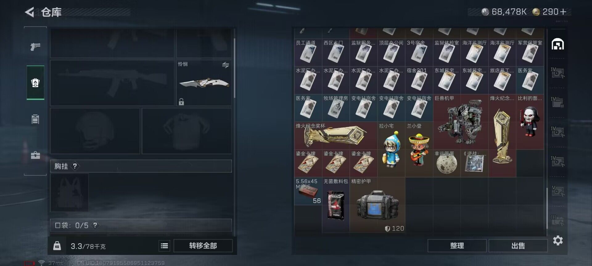 【SJZG3177】总资产(M):254M/哈夫币(K):68478K/哈夫币(K):68478K/传说枪皮数:1/全面战场等级:7_段位:列兵/烽火地带等级:60_段位:黑鹰/红狼-电锯惊魂/露娜-金牌射手/近战-怜悯/近战-黑鹰/SG552突击步枪-运动员/M7战斗步枪-百步穿杨/G3战斗步枪-流沙送葬/AS Val突击步枪-百步穿杨/MP5冲锋枪-竞技风/Vector冲锋枪-百步穿杨/Vector冲锋枪-异域战争/M250通用机枪-囚徒/M14射手步枪-工业狂潮/M700狙击步枪-竞技风/