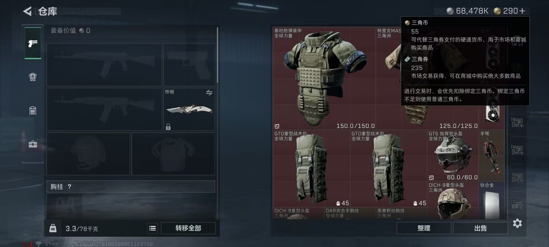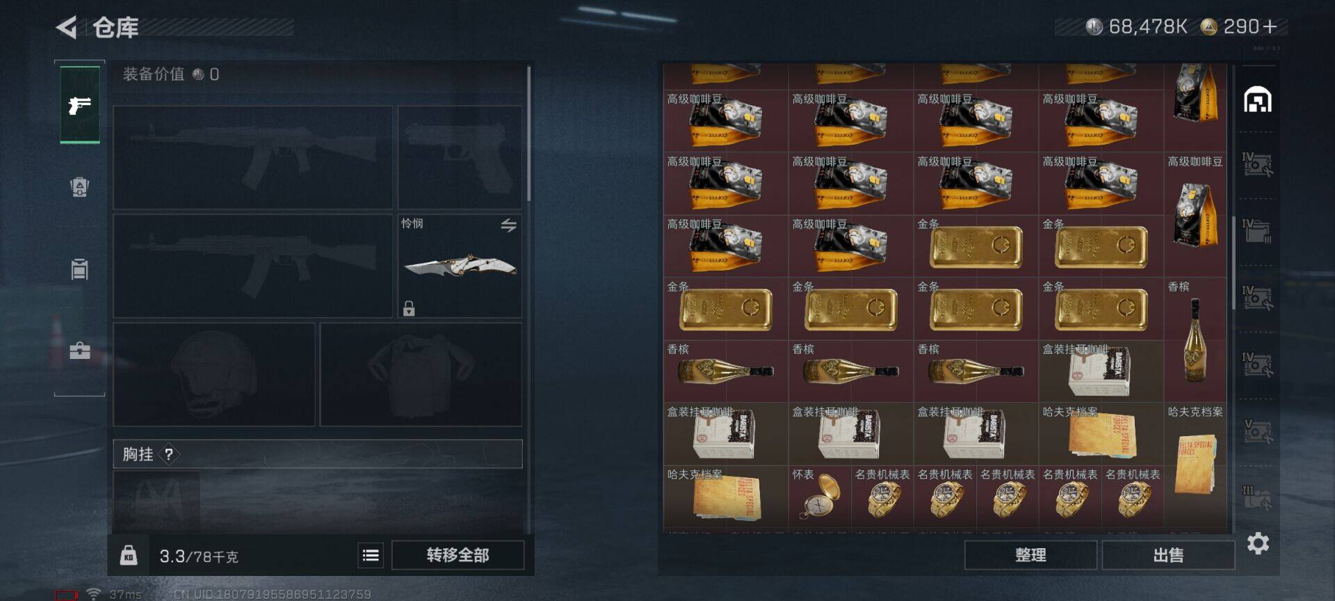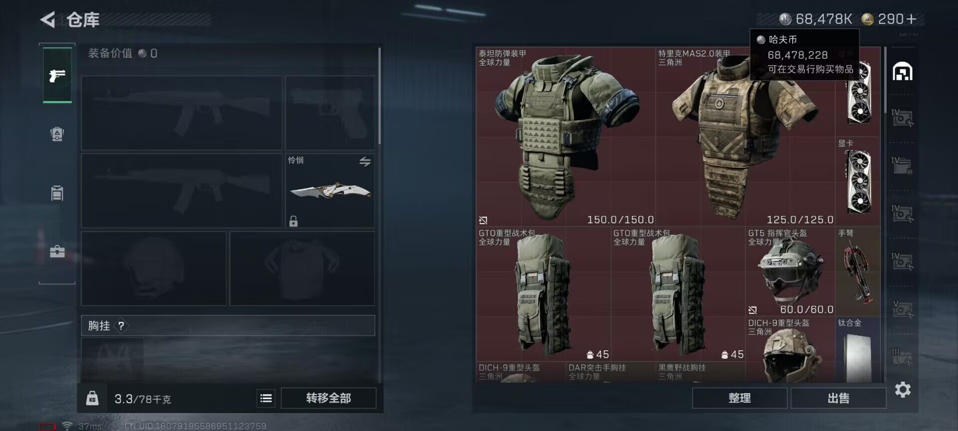 总资产(M):254M/哈夫币(K):68478K/传说枪皮数:1/全面战场等级:7_段位:列兵/烽火地带等级:60_段位:黑鹰/