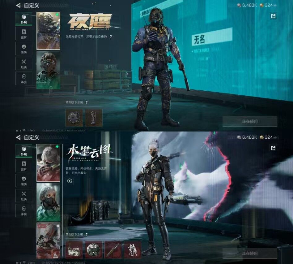 yy17三角洲水墨云图套 夜鹰 总资产33M 哈夫币6483K 3金枪 行动等级60 黑鹰匕首 图灵砖-鸭鹅影踪*10 多资源成品号便宜出