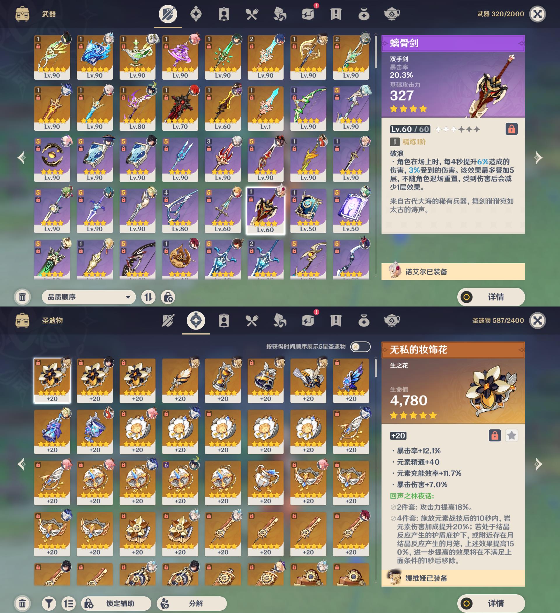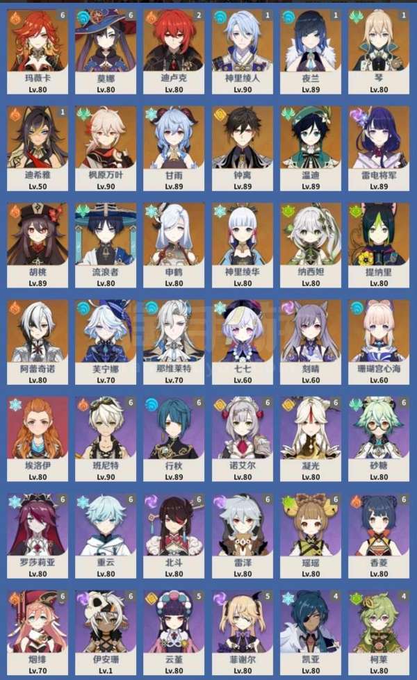 60级/81黄/女主/22个五星角色/14个五星武器/