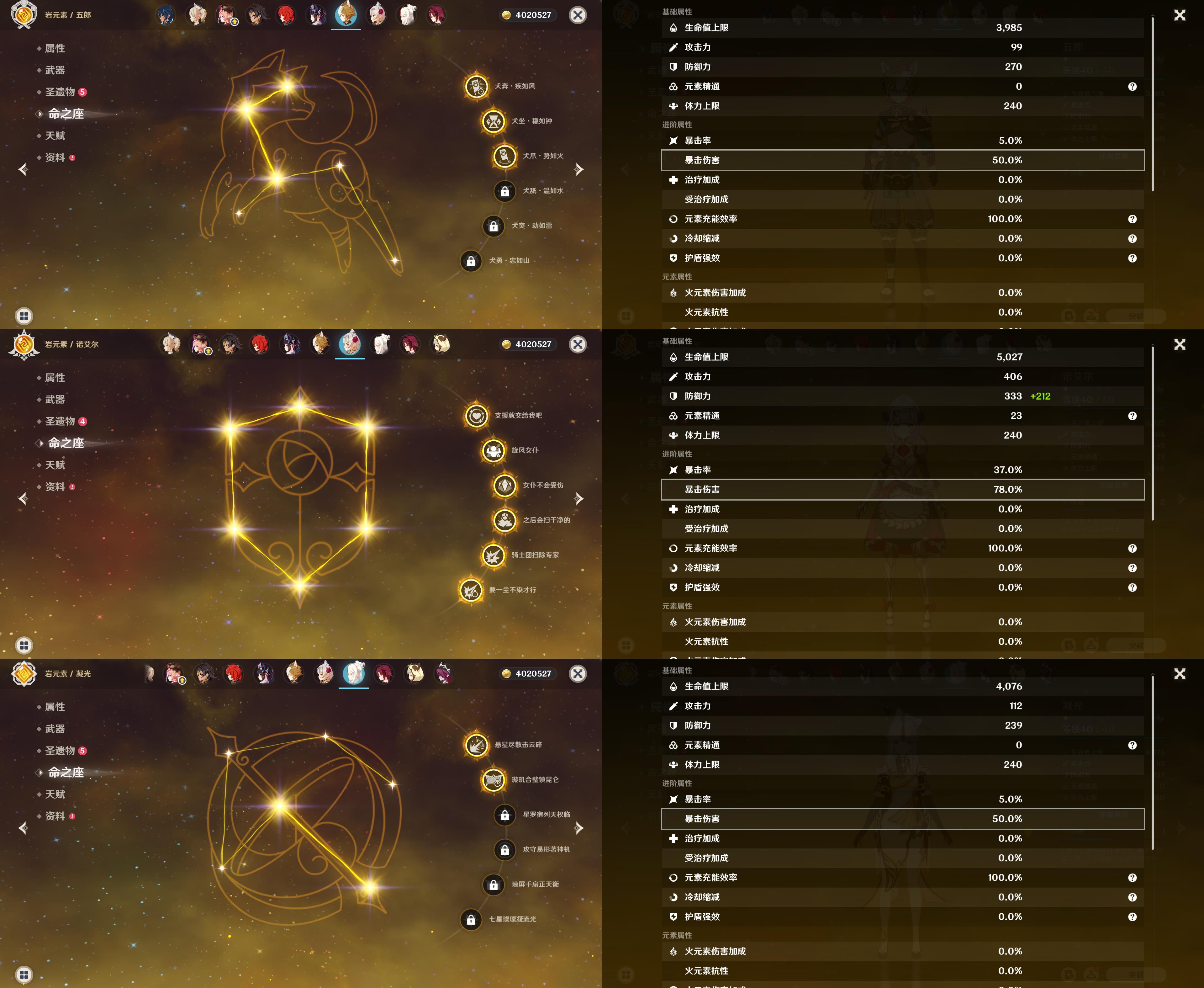 五星角色: