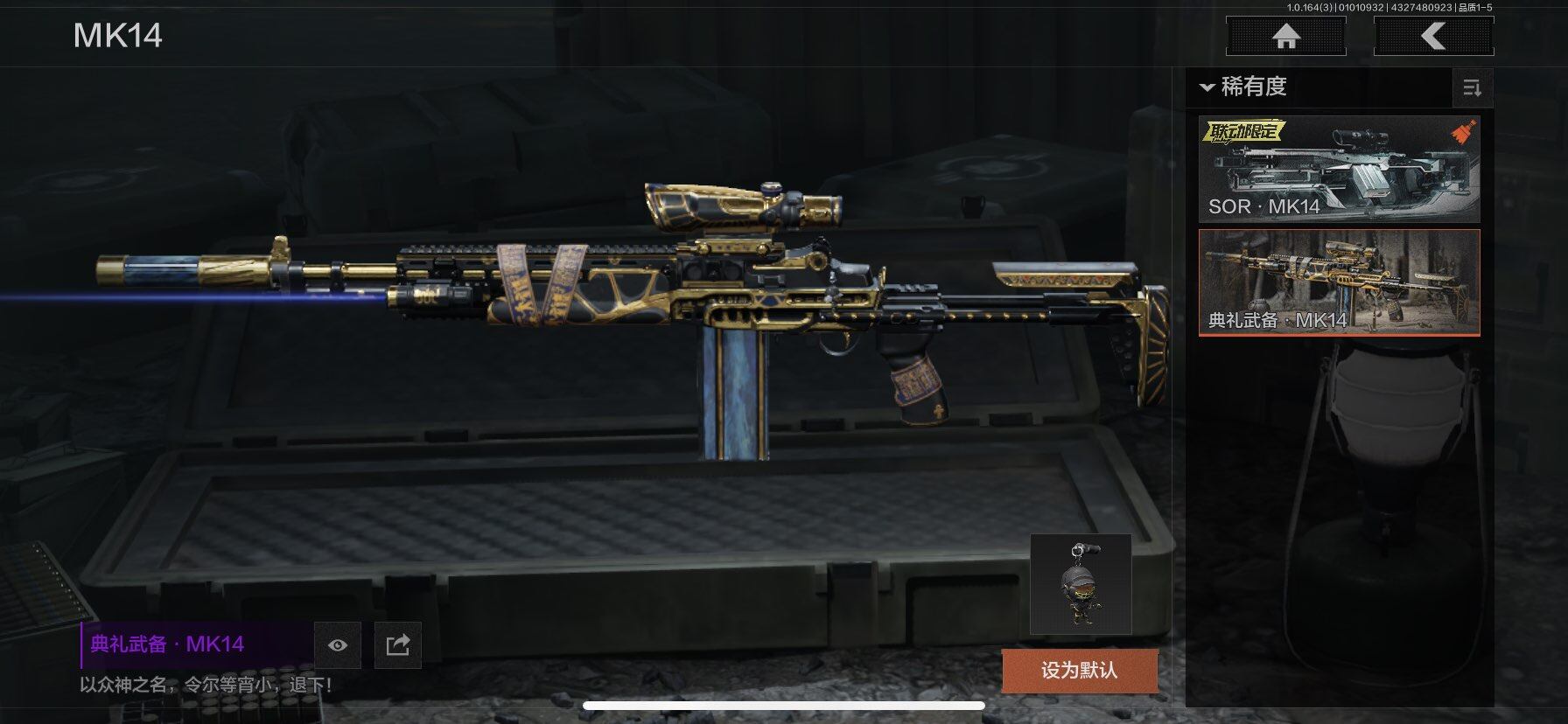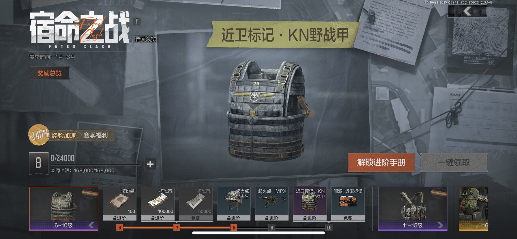 段位:大师/NOCs-7折刀/苍穹利爪/急袭弯刀/工兵铲/使徒欧瑞恩/机车朋克战衣