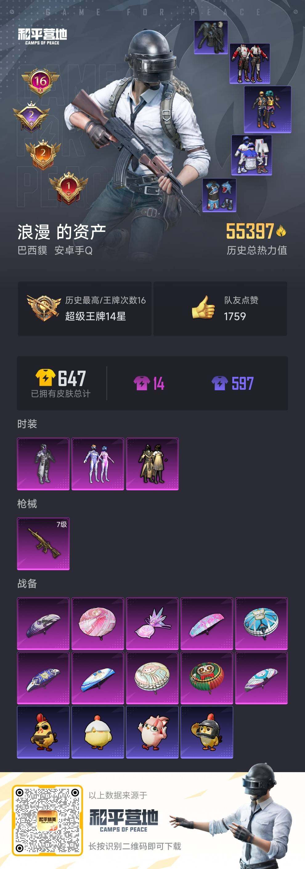 149套装/枪械1/装备202/战备127/王牌印记16/热力值55397/