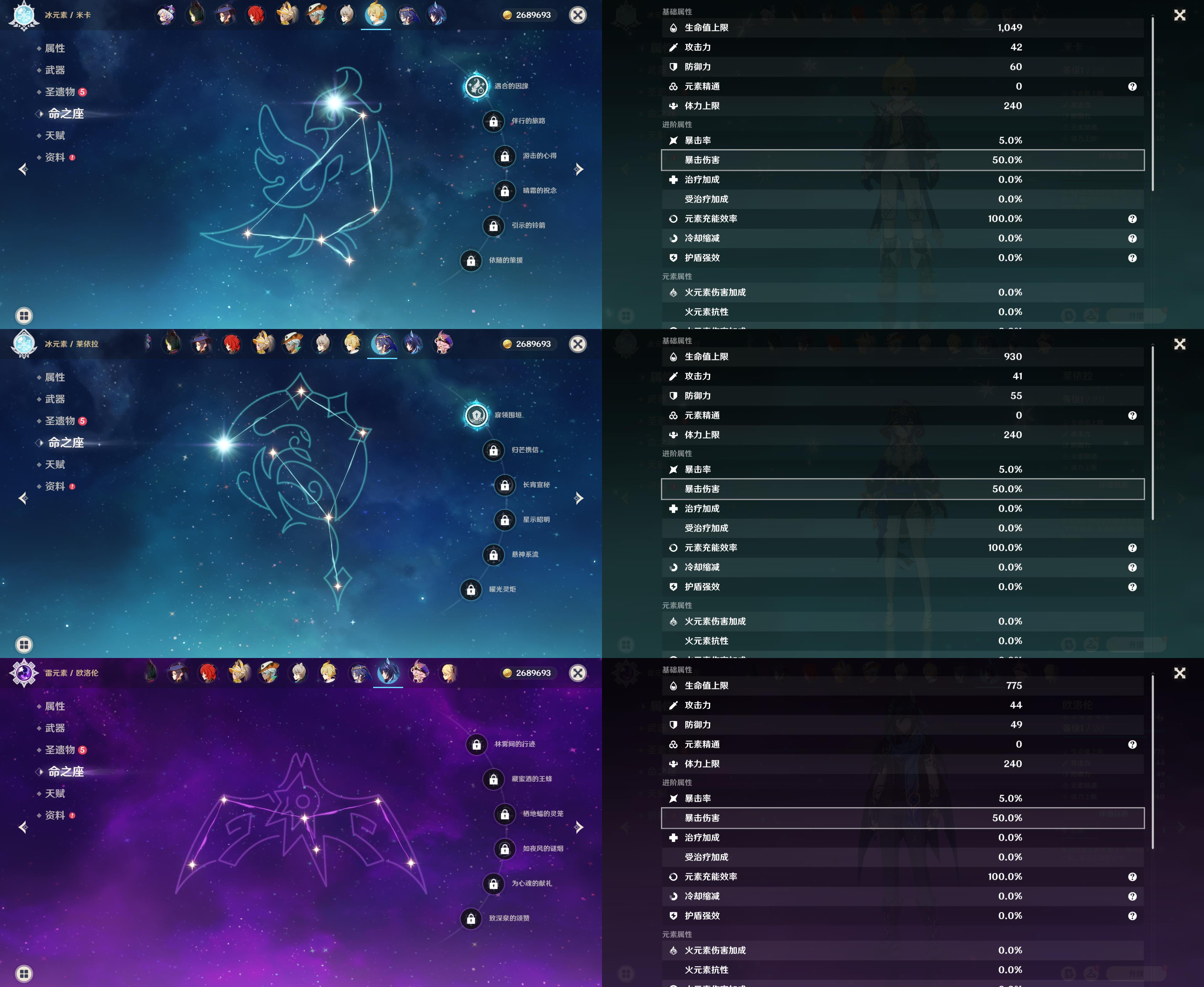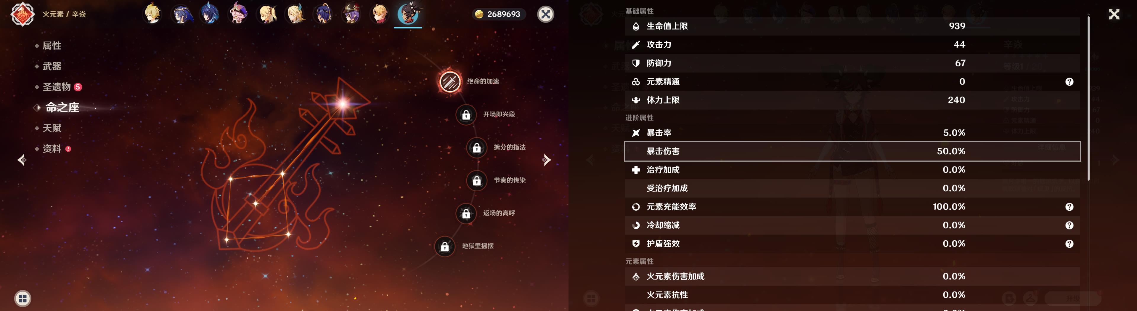 55级/12黄/女主/9个五星角色/2个五星武器/