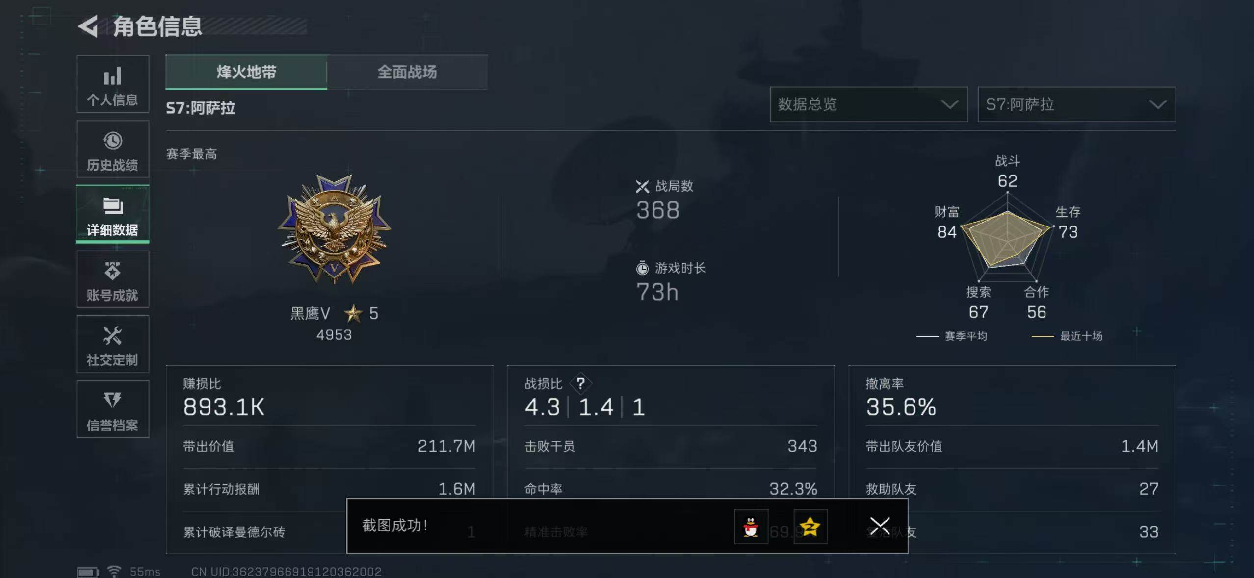 【SJ910】79发AW弹满体满负行动等级:60 总资产:400.2M 哈夫币:18214.4W 近战武器:近战武器-北极星 干员皮肤:电锯惊魂,送葬人·无题密令,维什戴尔,不破誓约,黑·天际线 安全箱:顶级安全箱9(3x3)