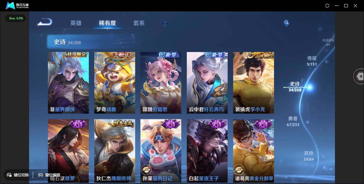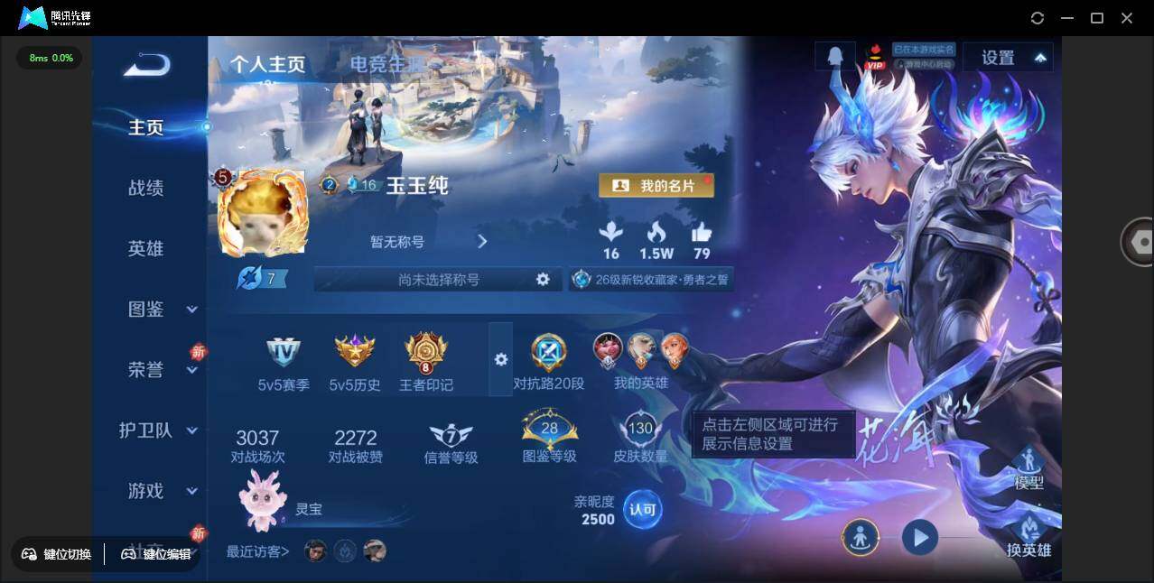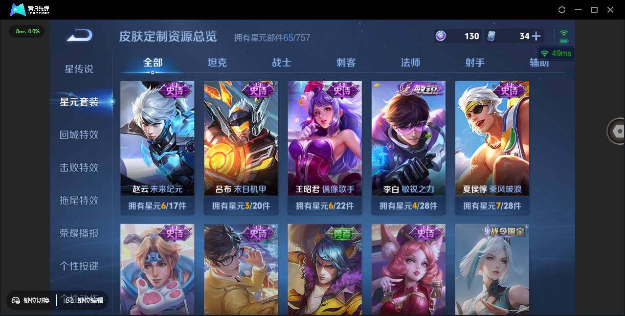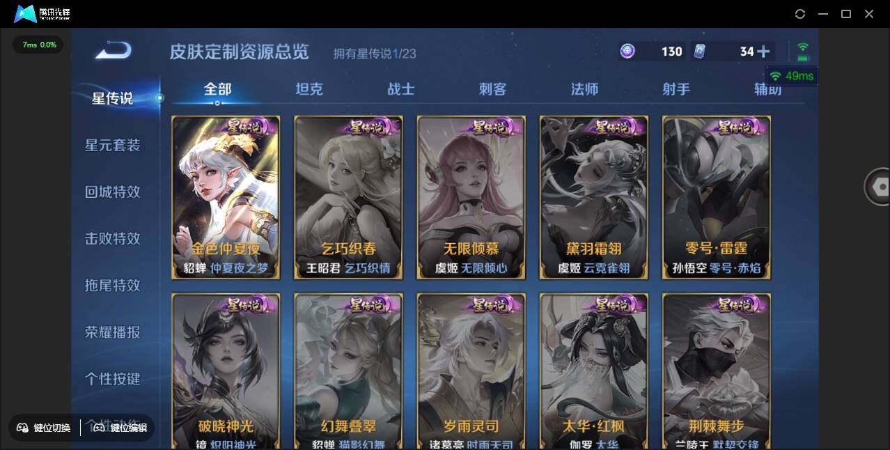 无二次-贵5-126英雄-130皮肤-5传说-34限定.史诗-1星元-2按键-百朵花花-132夺宝幸运值-品质小号-8印记-贵族积分6622
