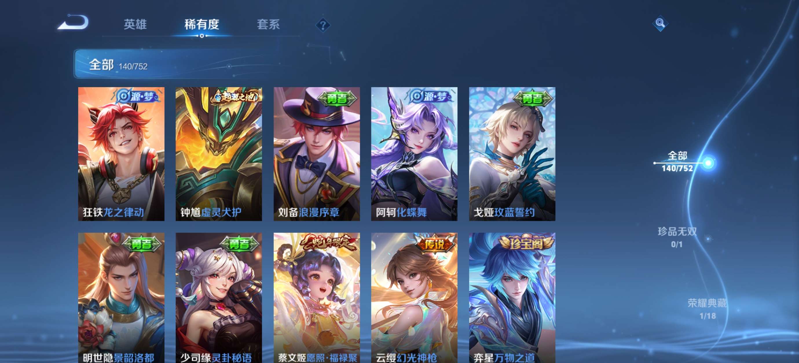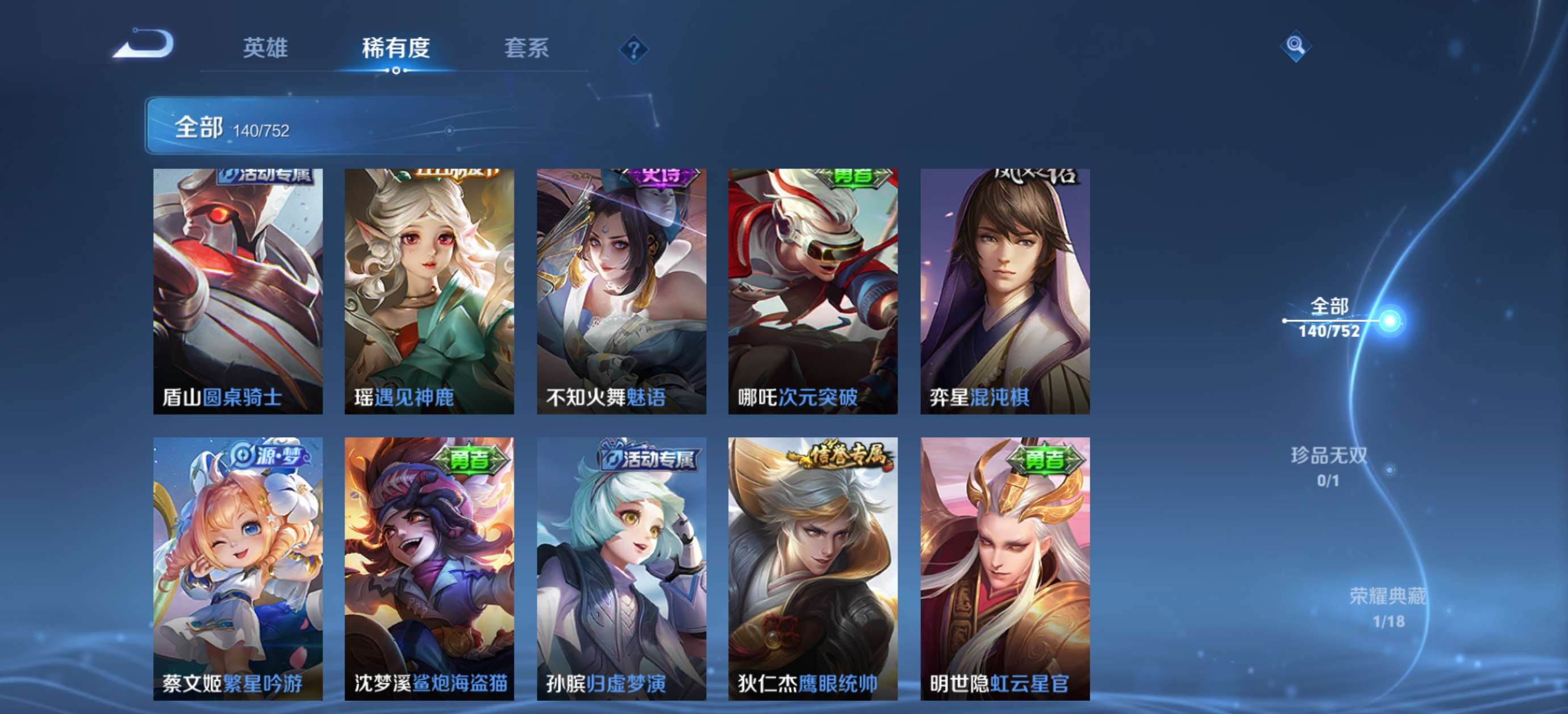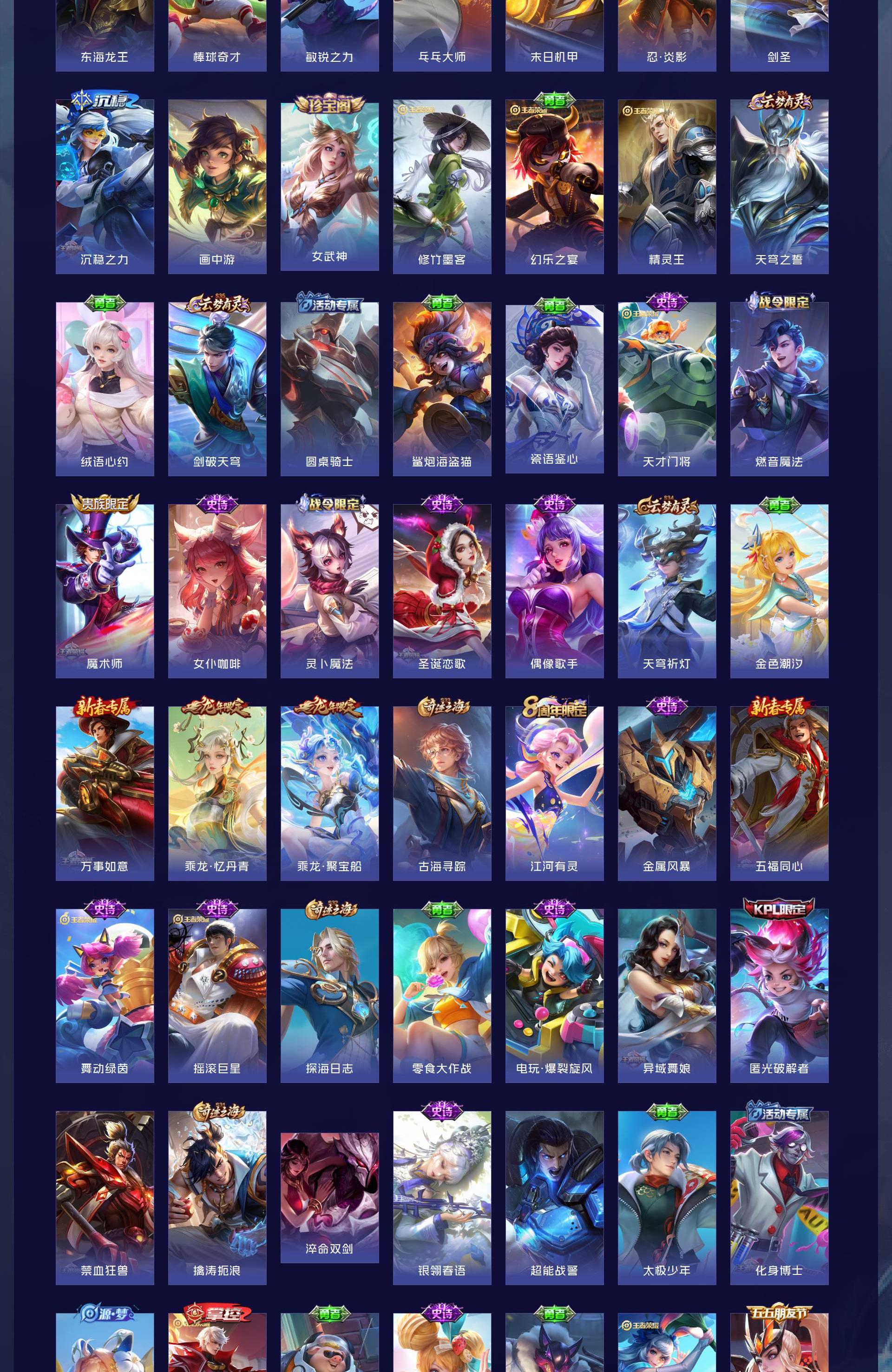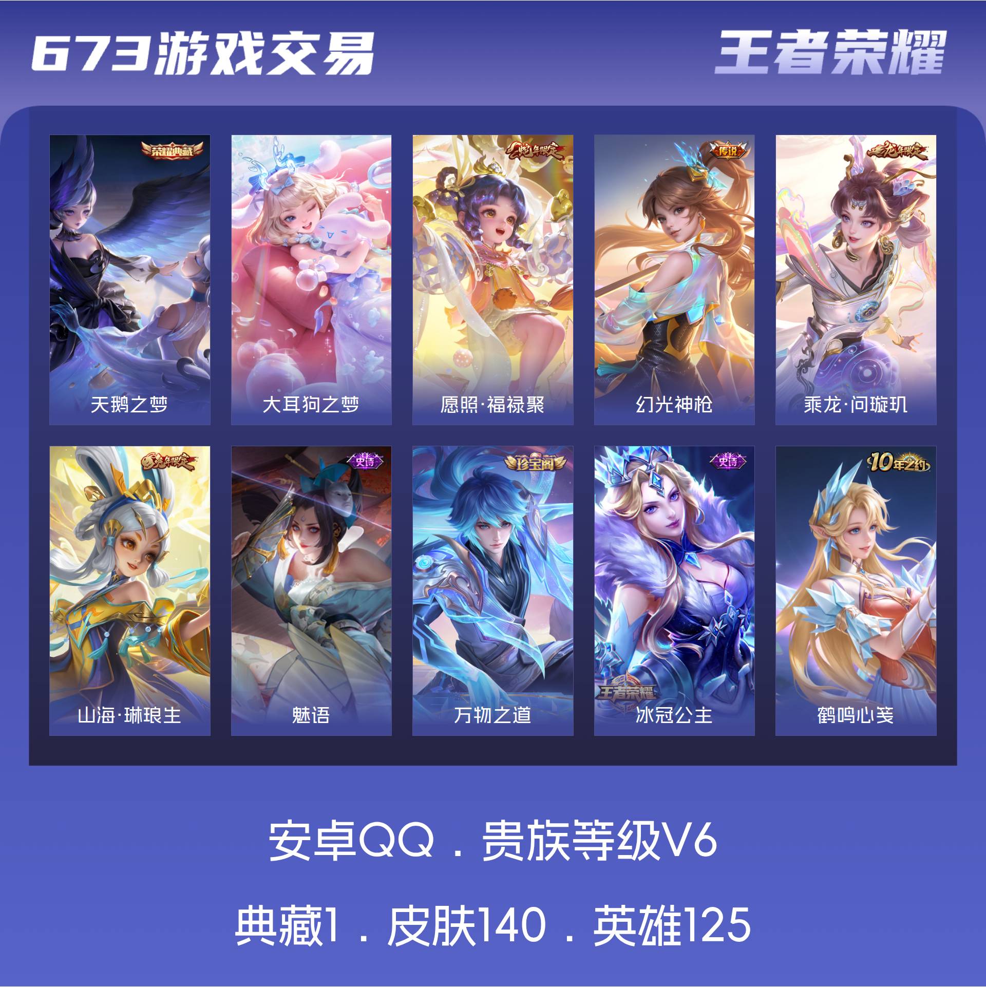 V6 皮肤140 英雄125 永恒钻石 荣耀典藏1 珍品传说1 传说4 其他皮肤140