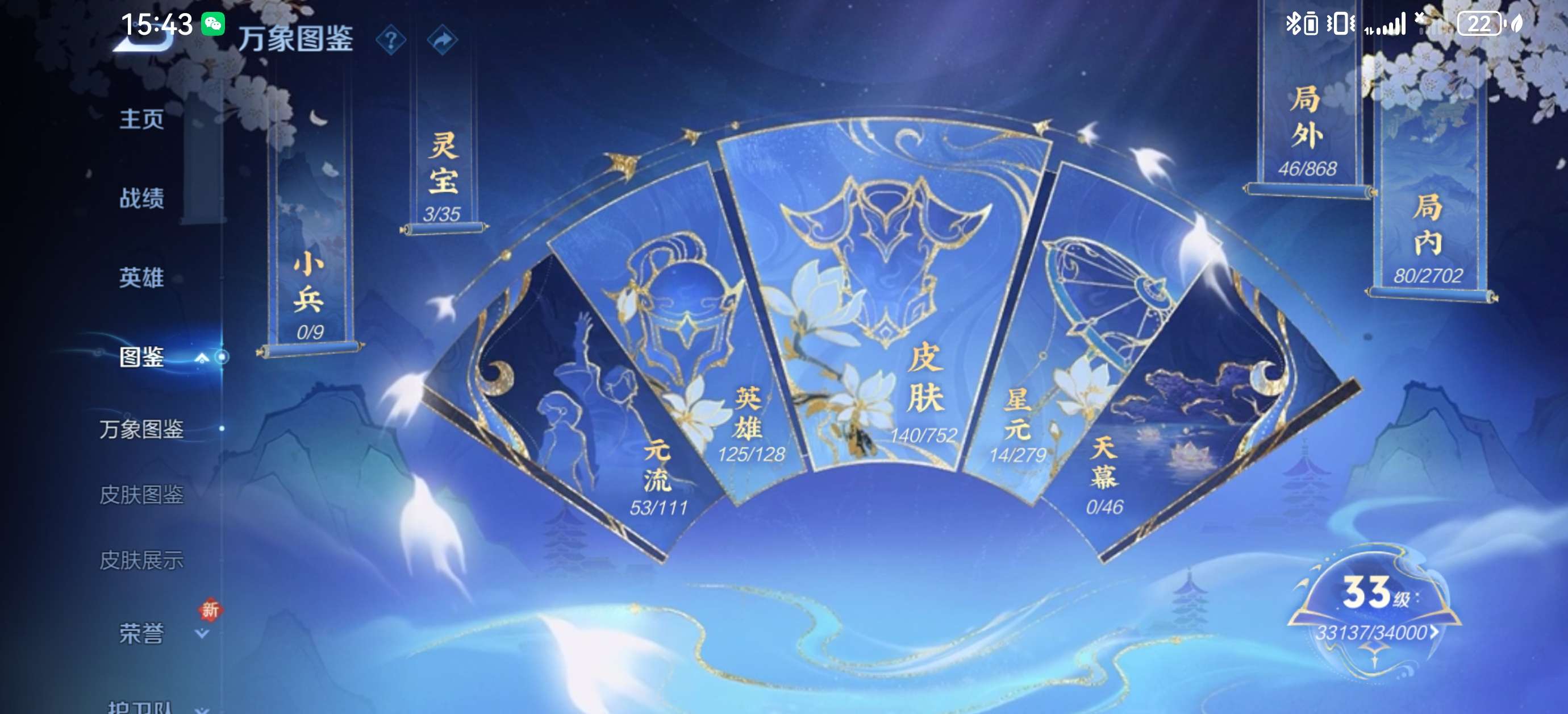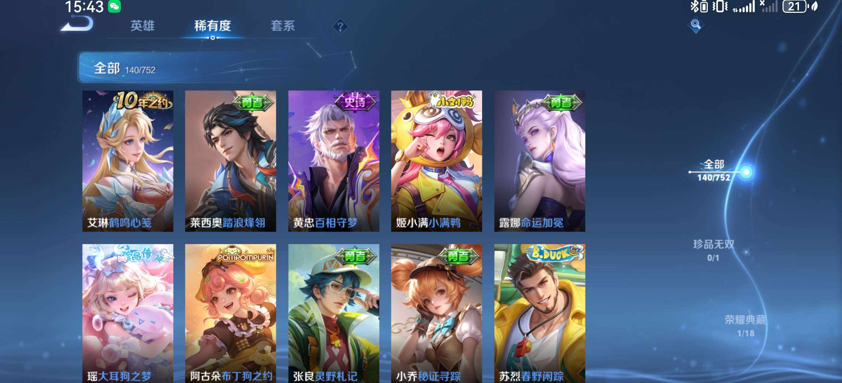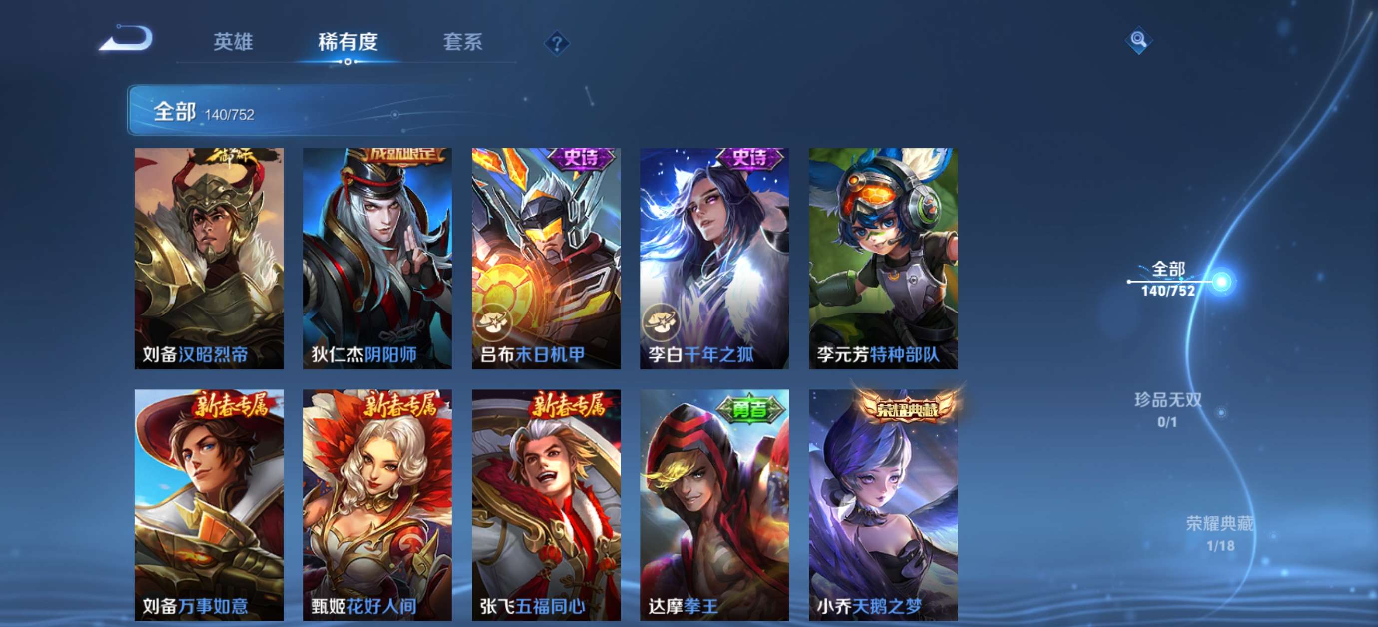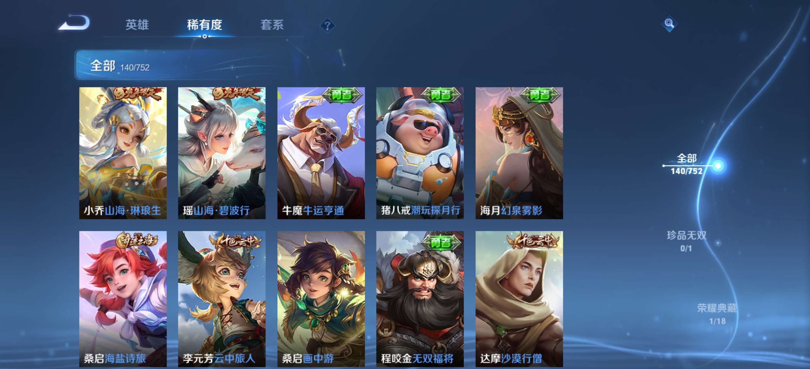 V6 皮肤140 英雄125 永恒钻石 荣耀典藏1 珍品传说1 传说4 其他皮肤140