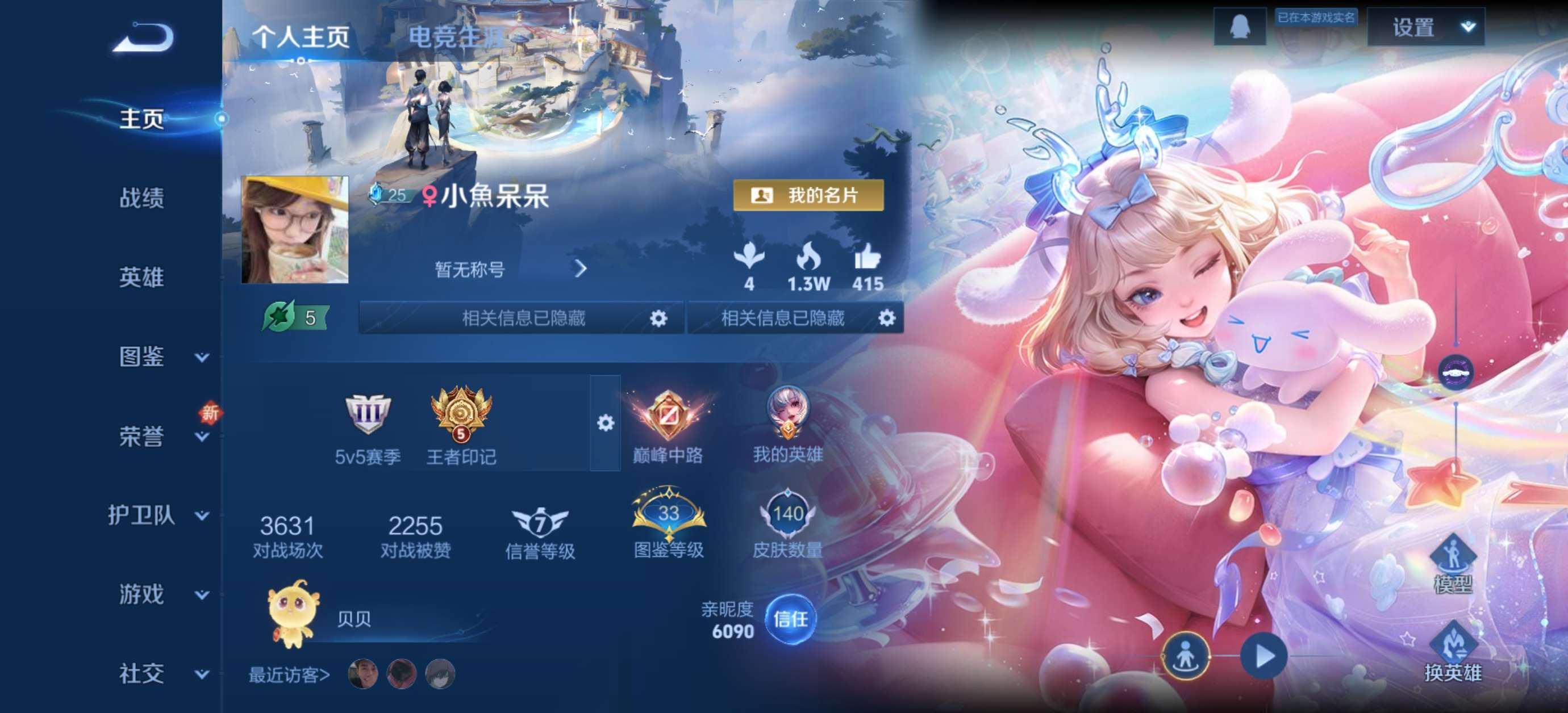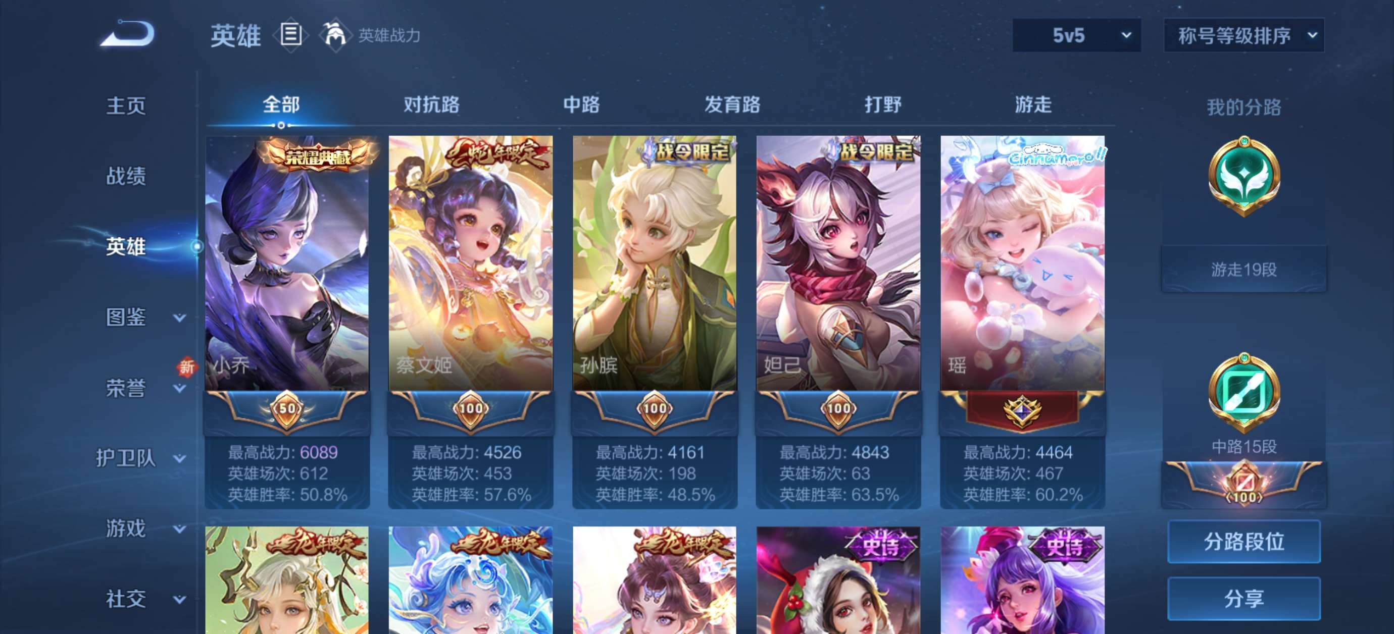 贵族等级:V6 典藏皮肤数:1 珍品无双皮肤数:0 无双皮肤数:0 珍品传说皮肤数:1 传说皮肤数: