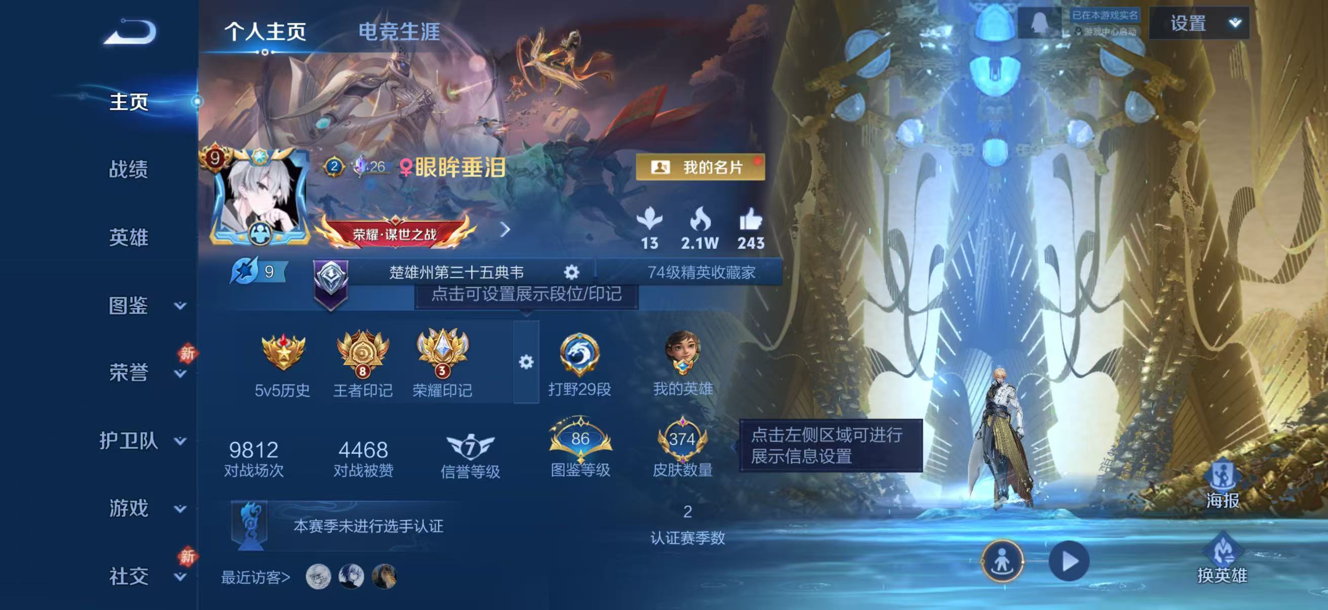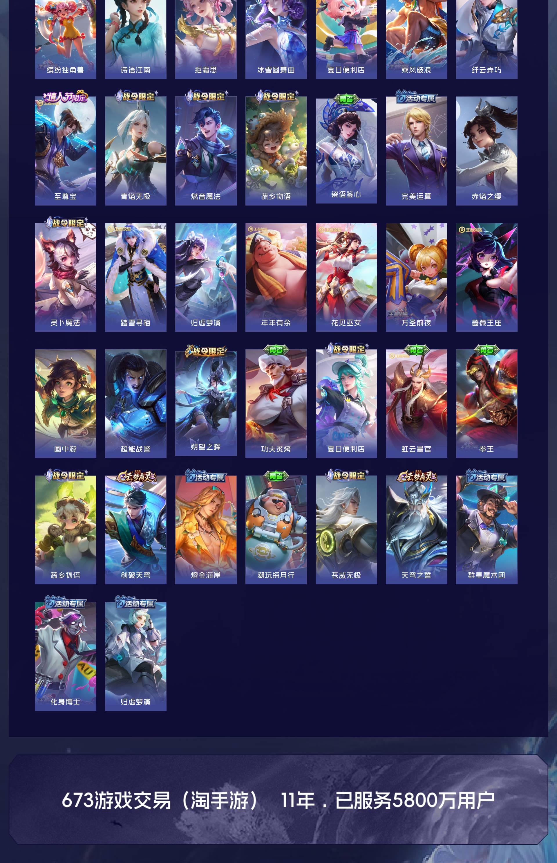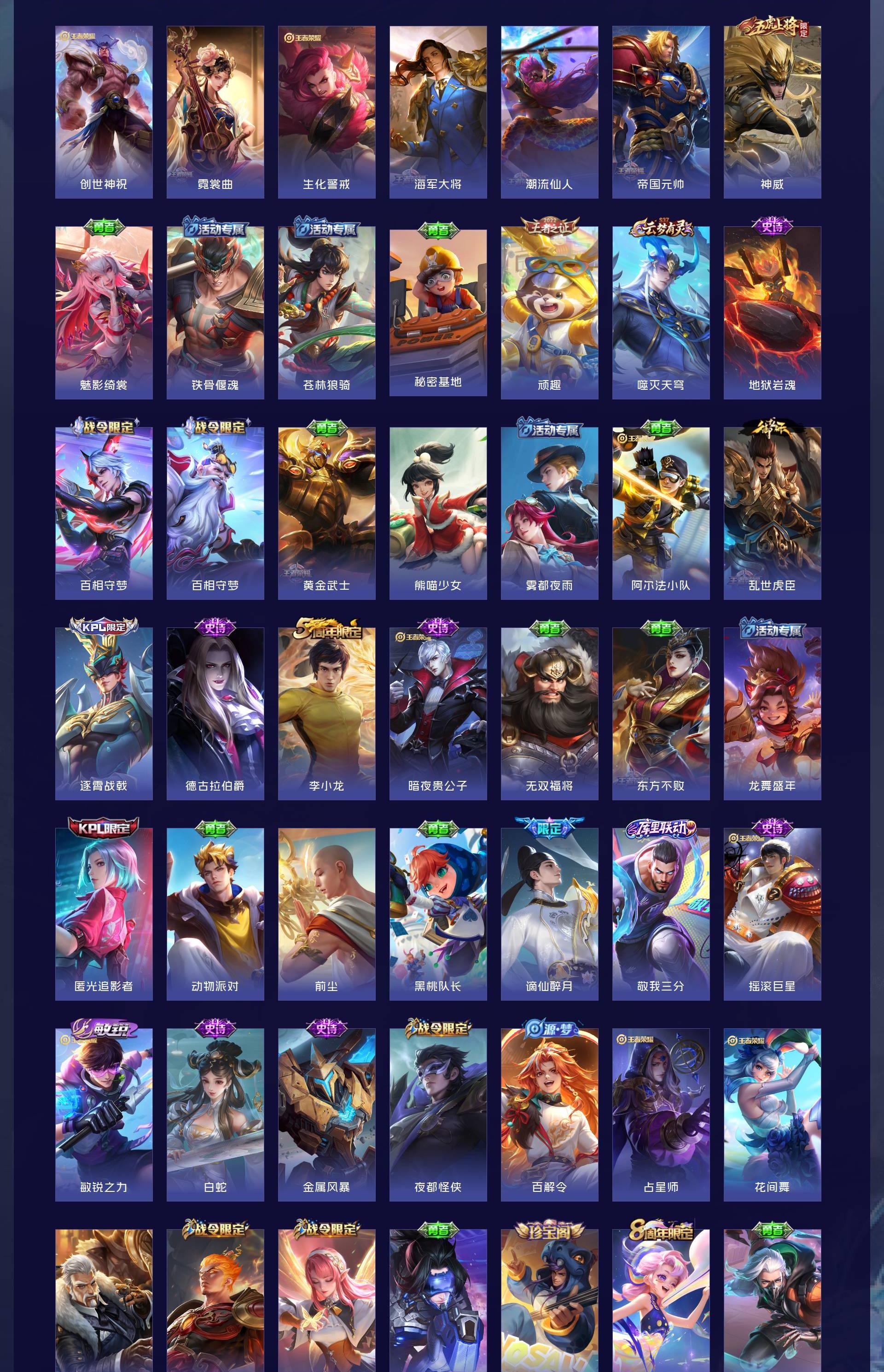 V9 皮肤374 英雄128 至尊星耀 荣耀典藏2 无双皮肤3 珍品传说3 传说39 其他皮肤331